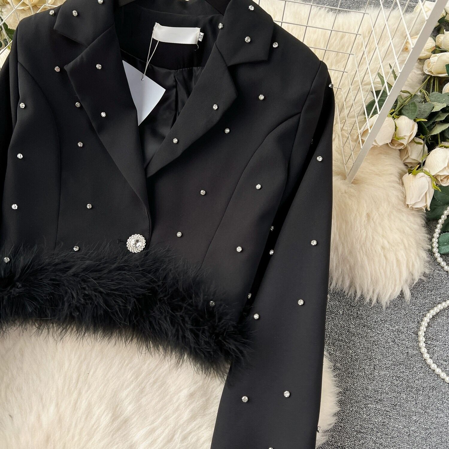 【set】フェザービジュー付きジャケット×スカートセット N2266
