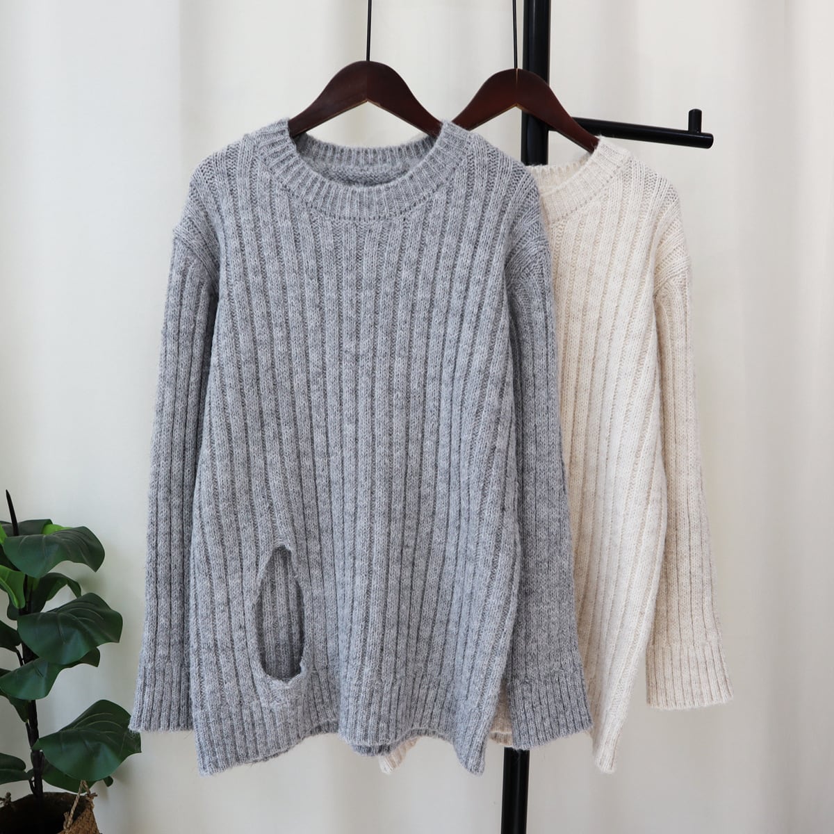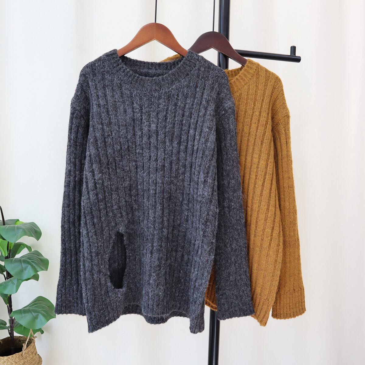 【tops】無地ニットセーター M19378