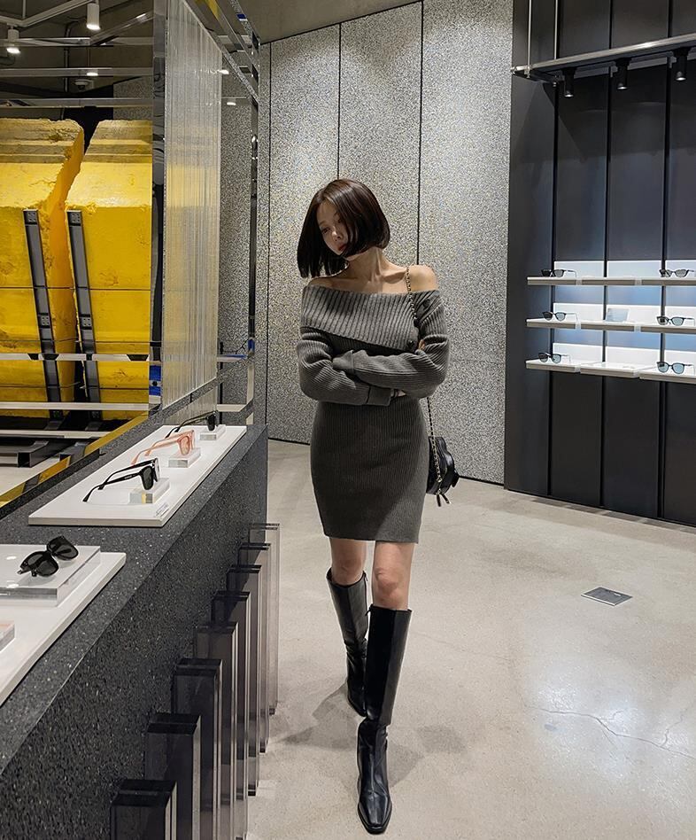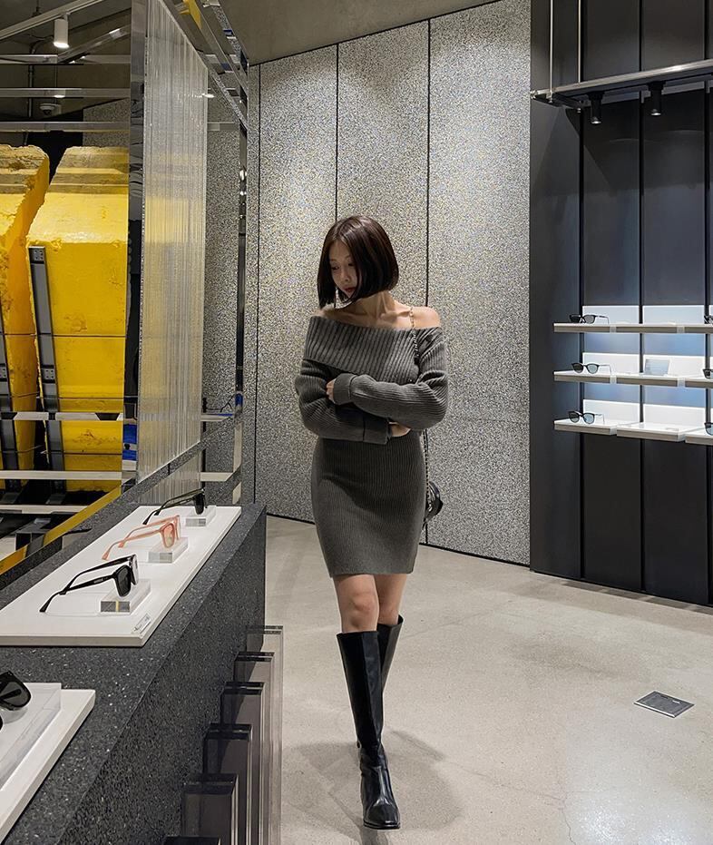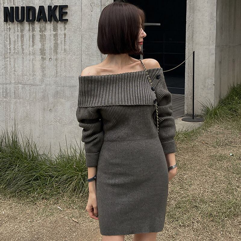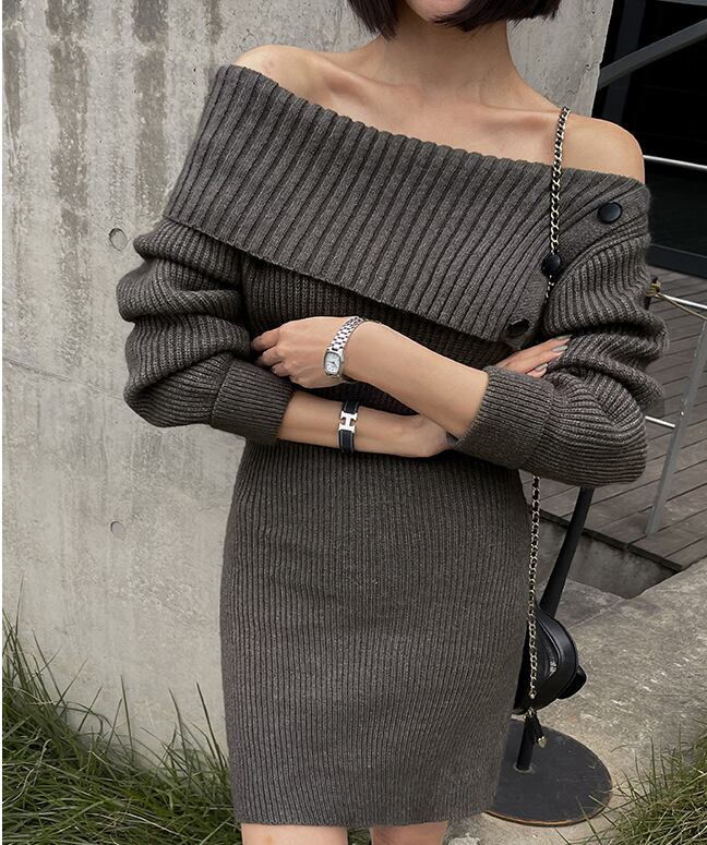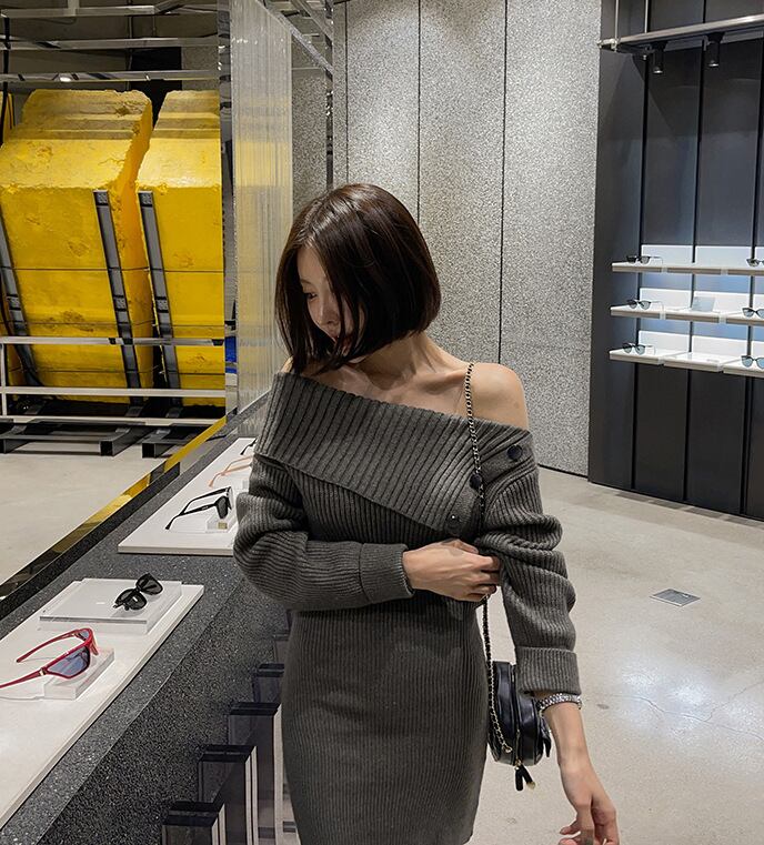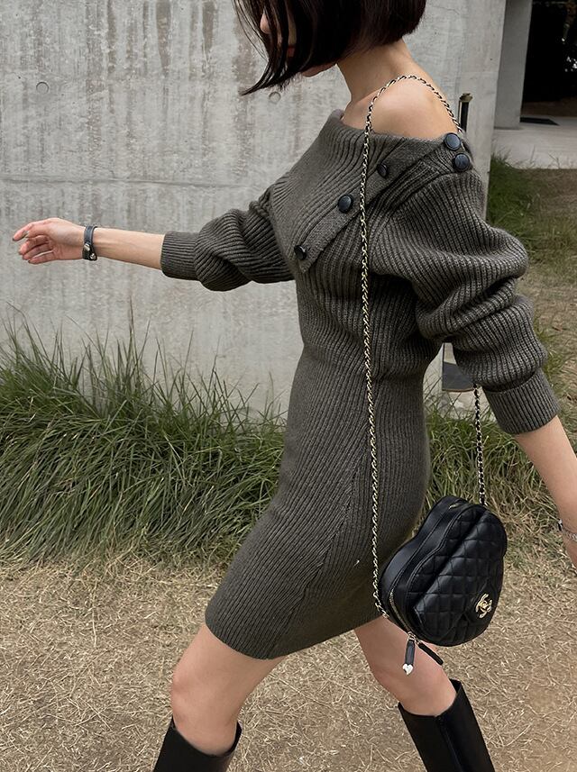 【dress】ボタンデザインニットワンピース M19384