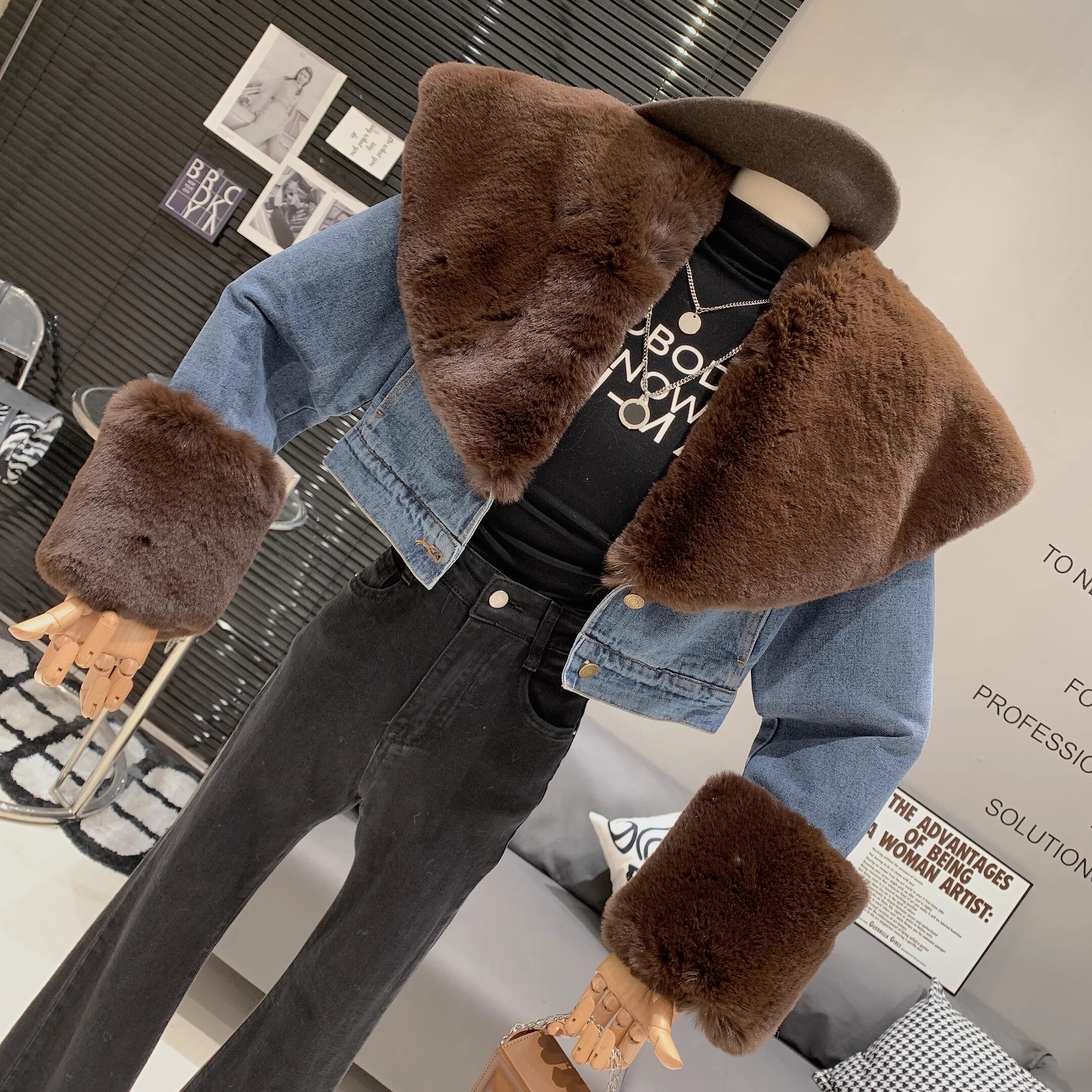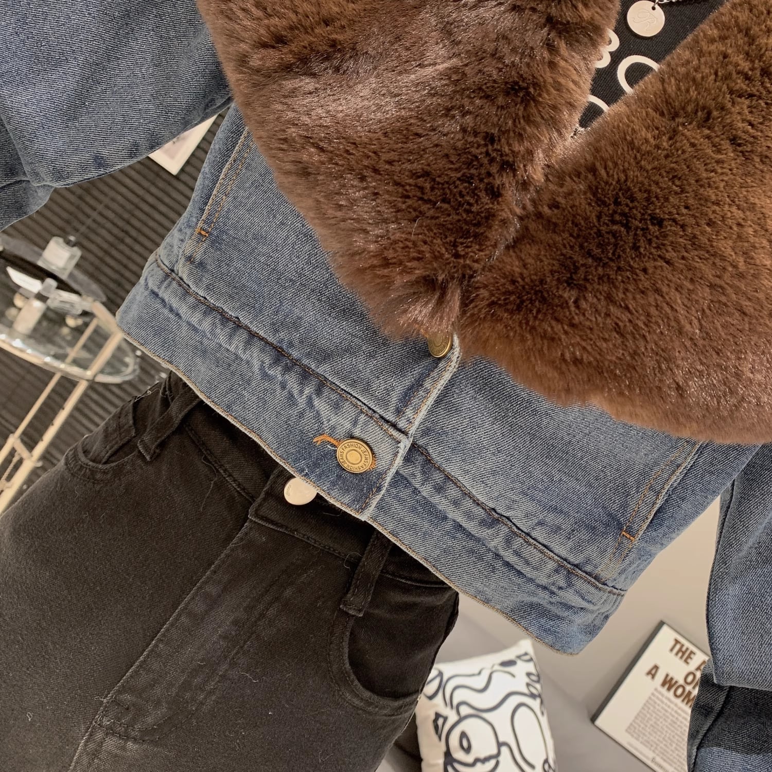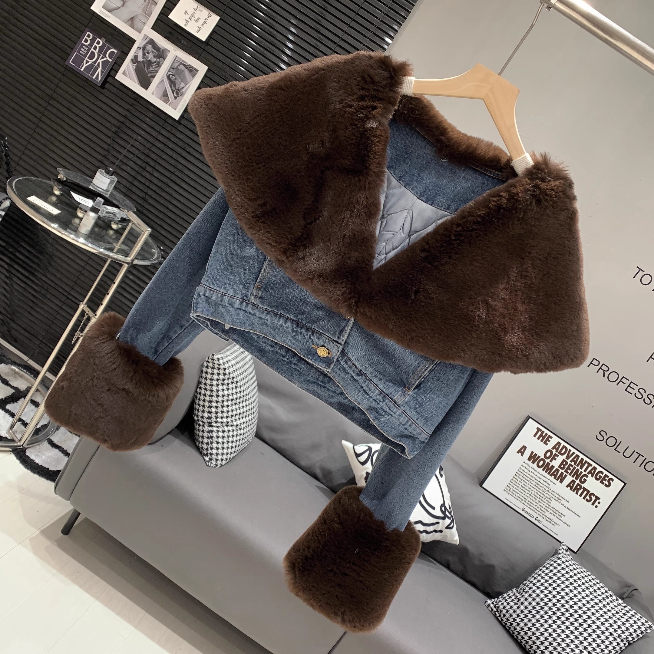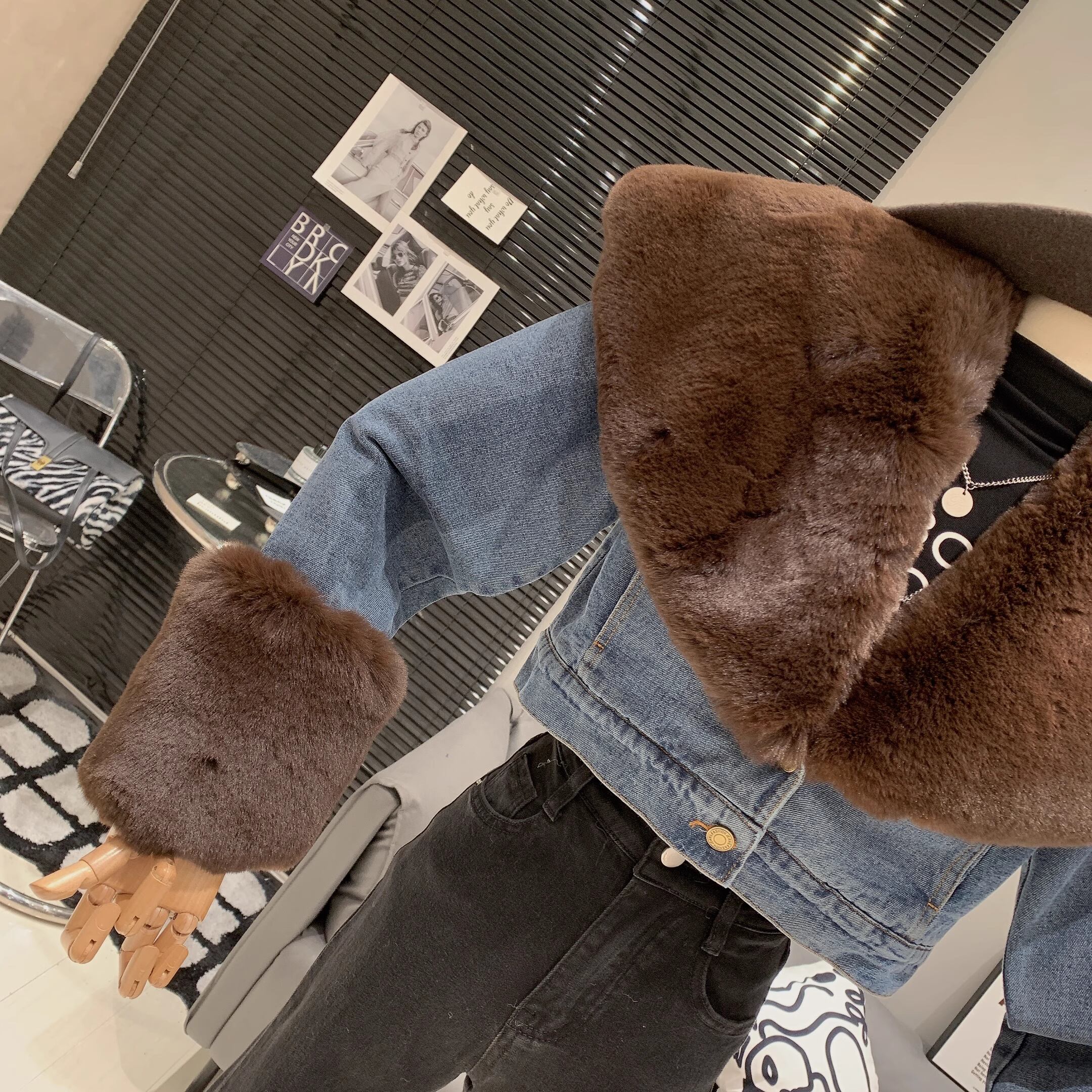 【outer】ファー裹起毛デニムジャケット M19460