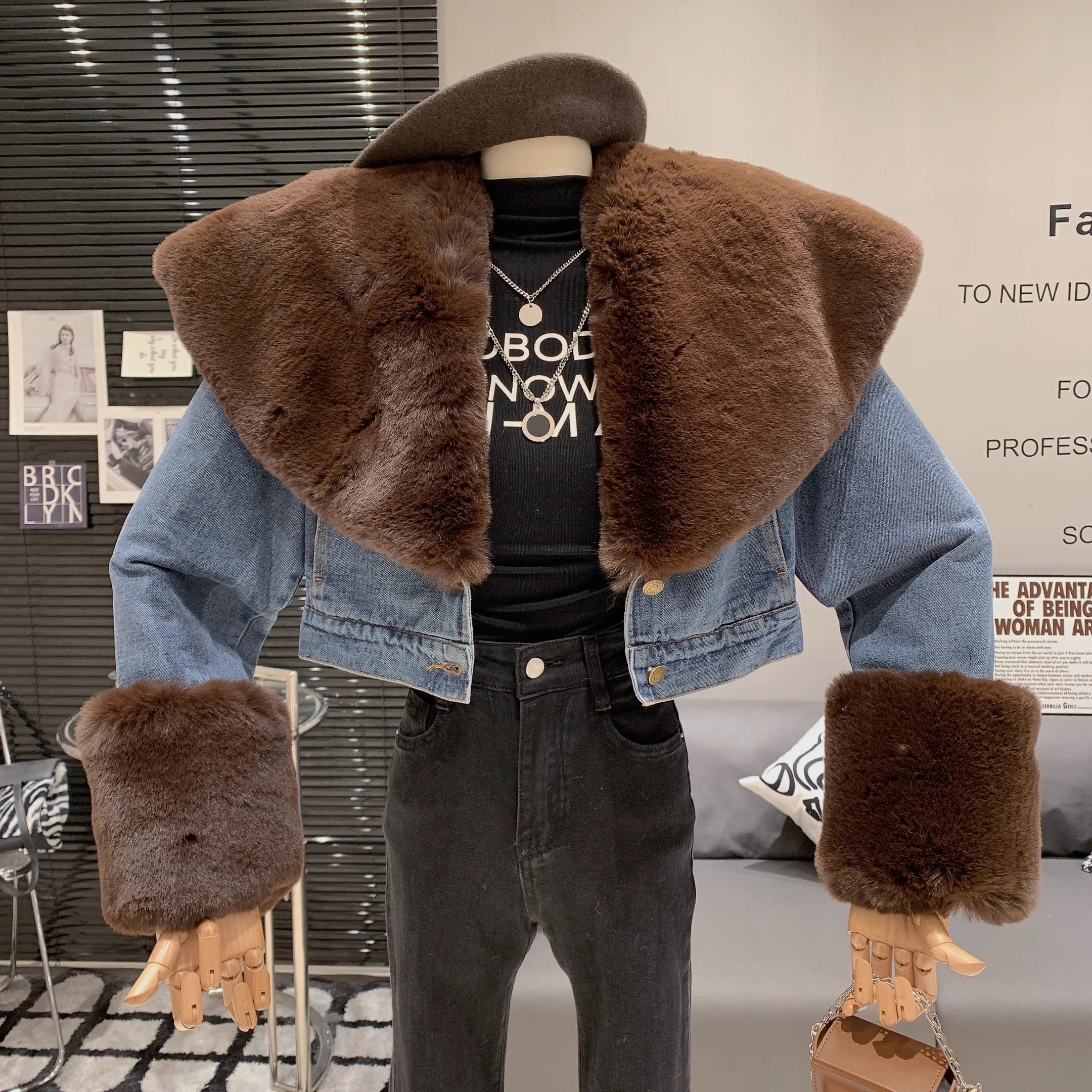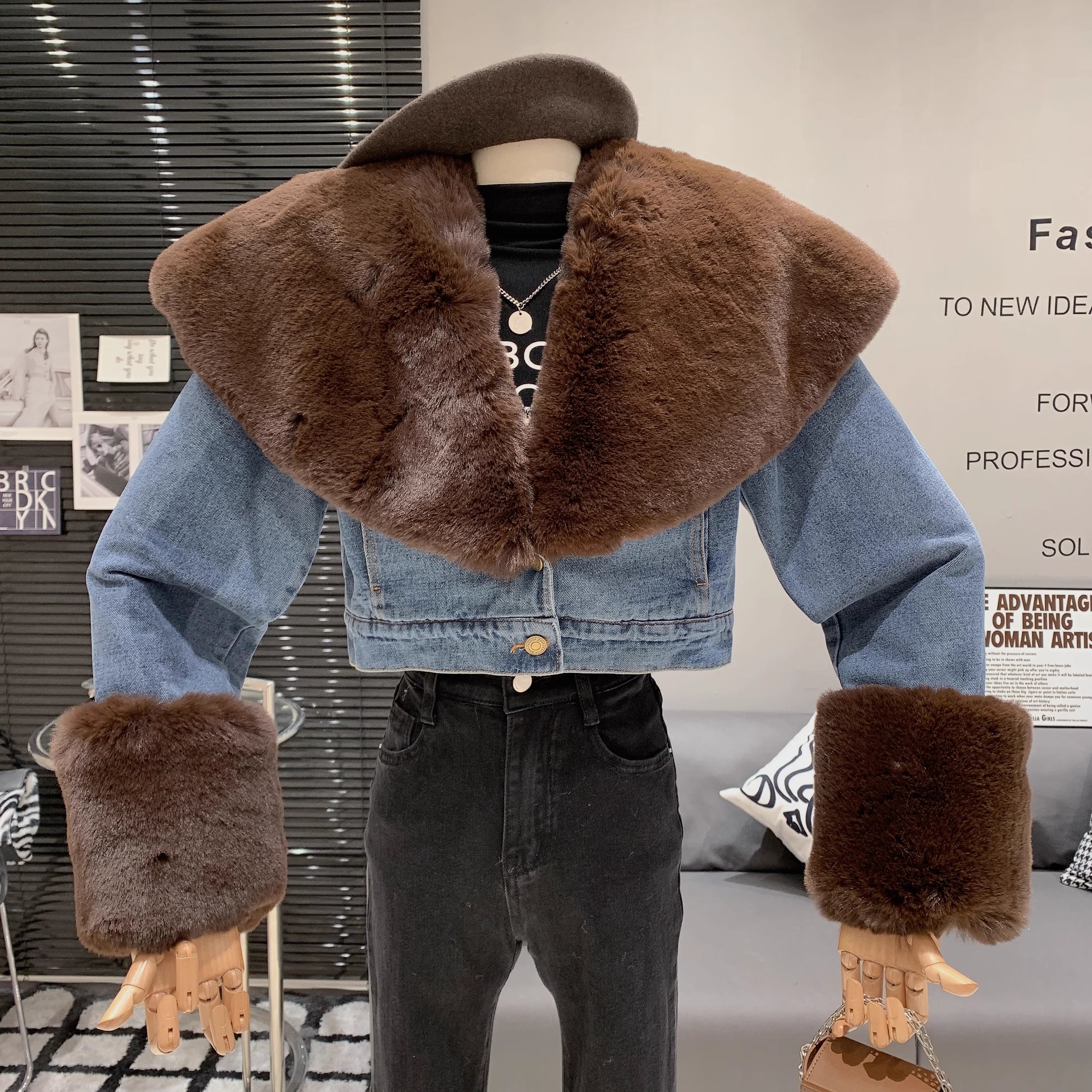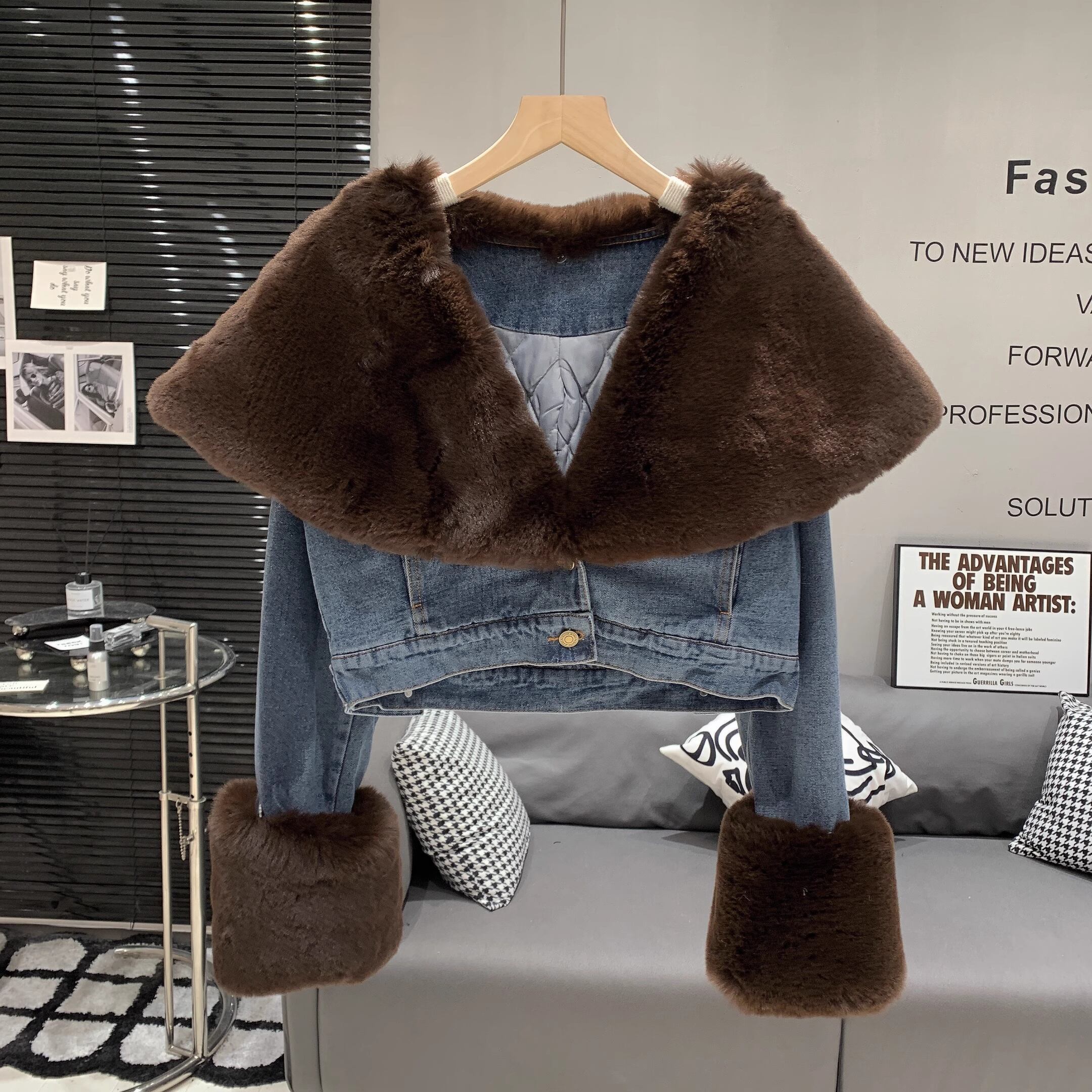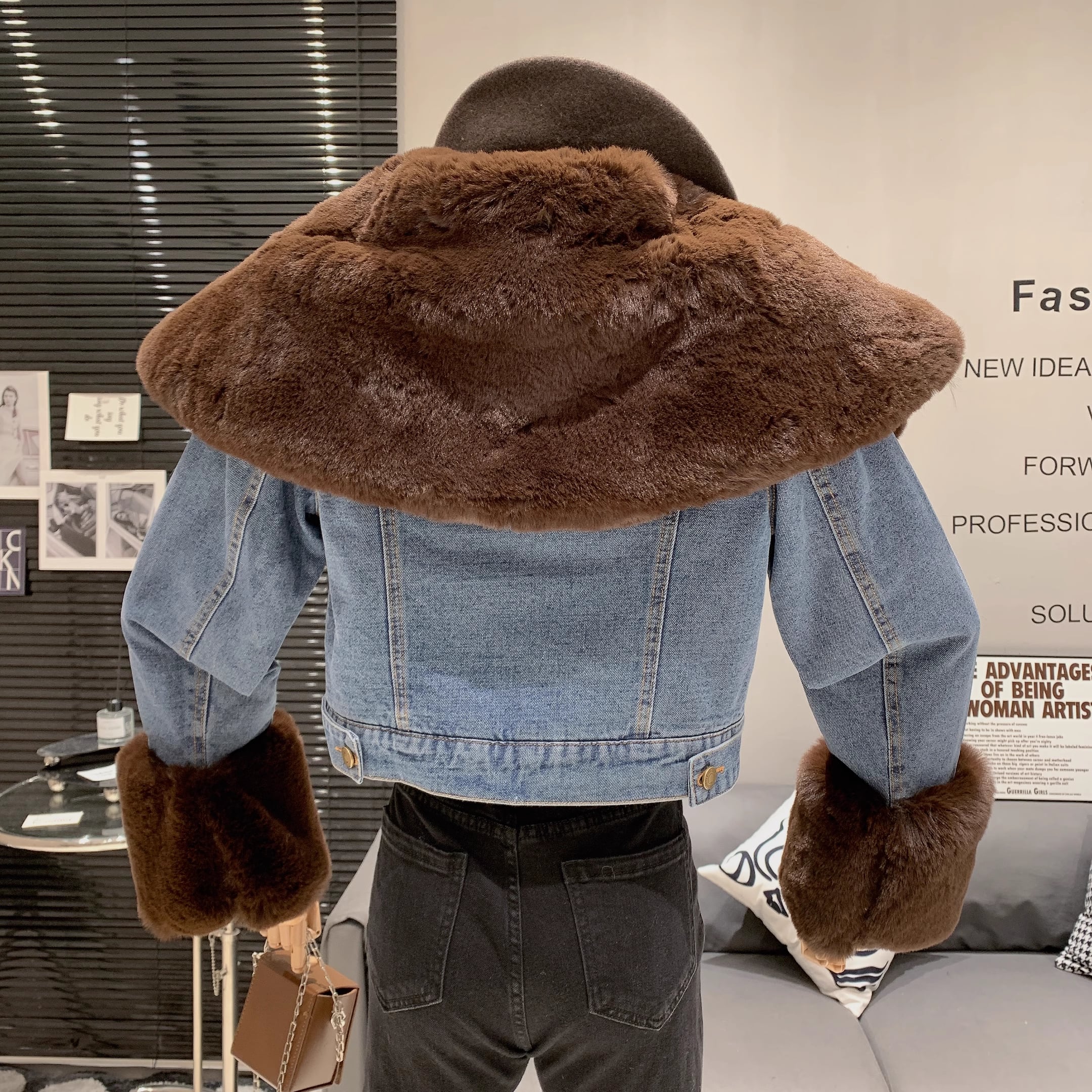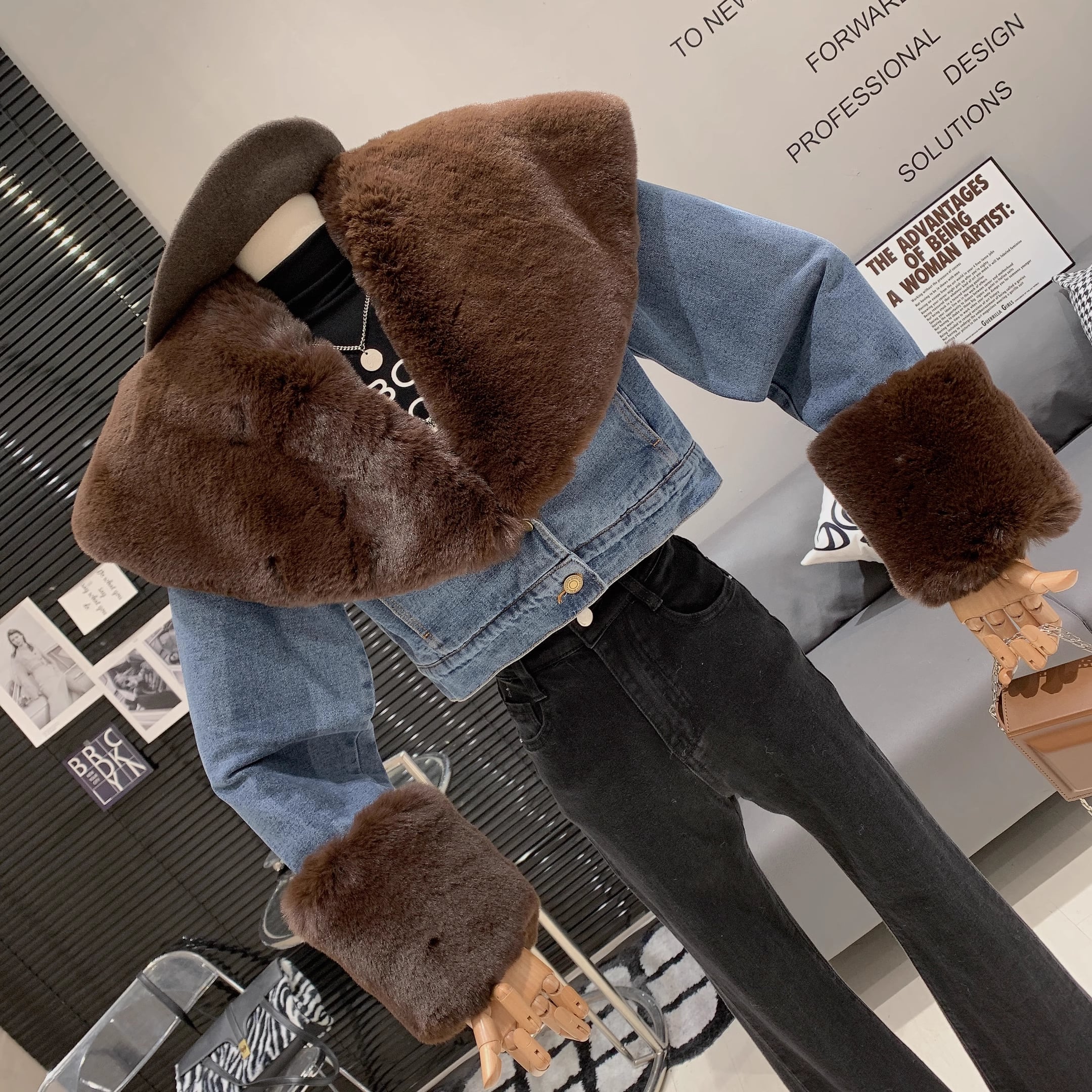 【outer】ファー裹起毛デニムジャケット M19460