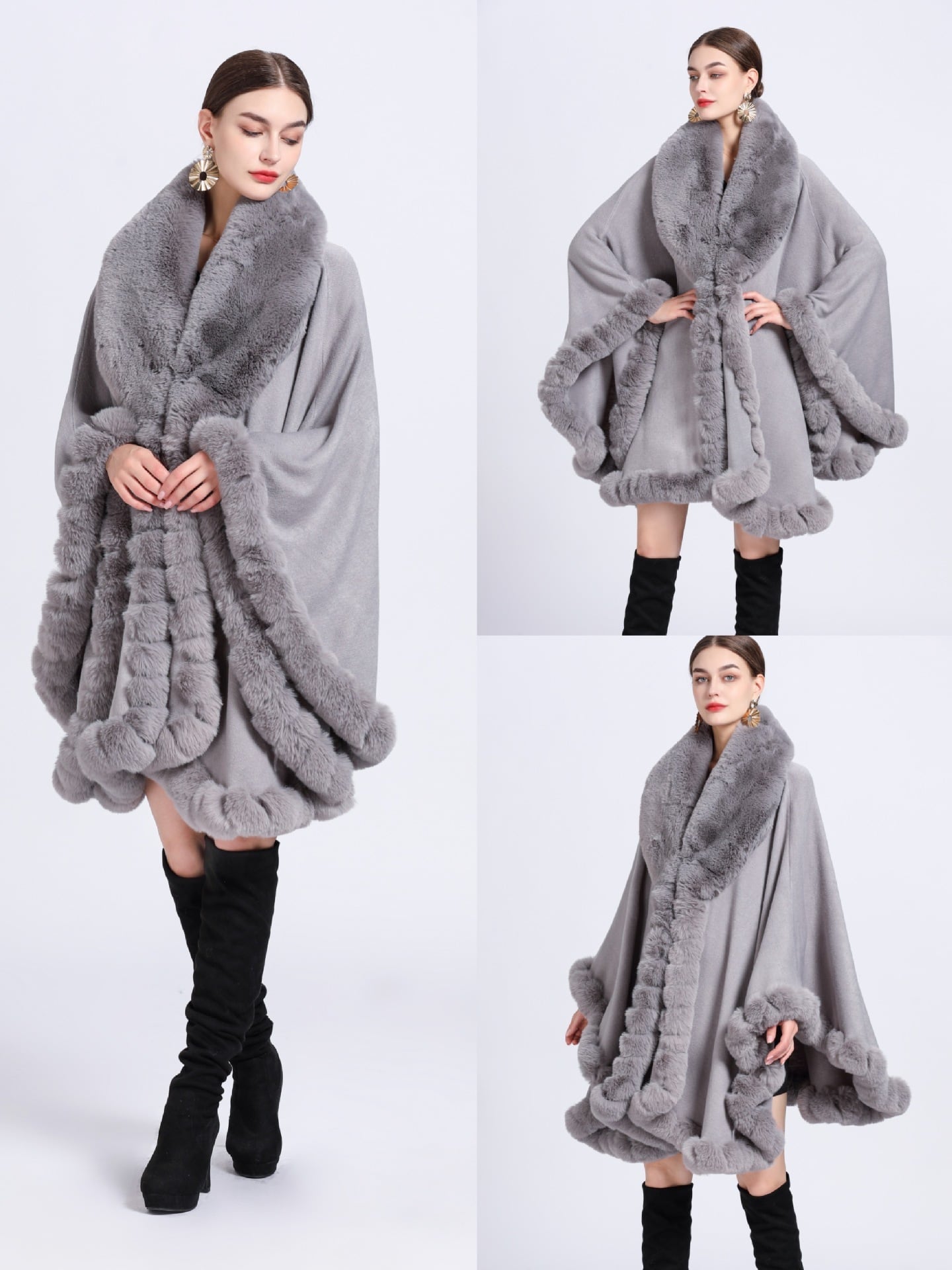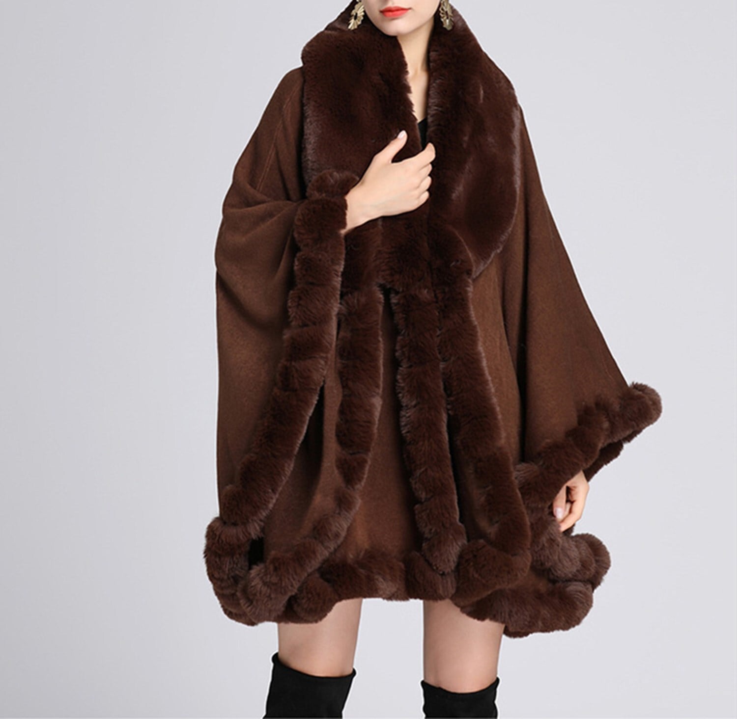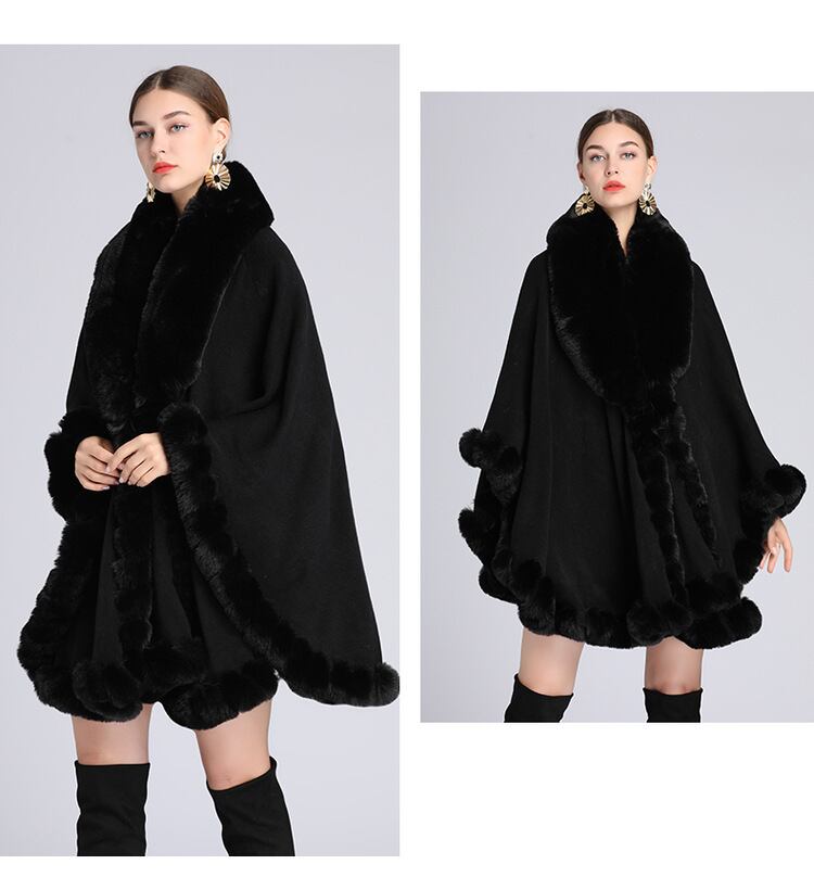 【outer】ファー付きケープコート N2342