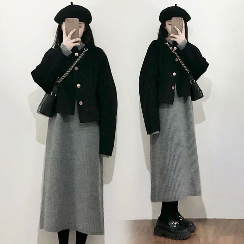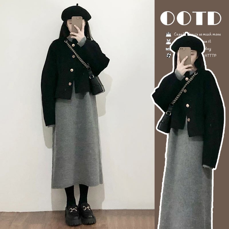 【set】ショートコート×ワンピースセット M19909
