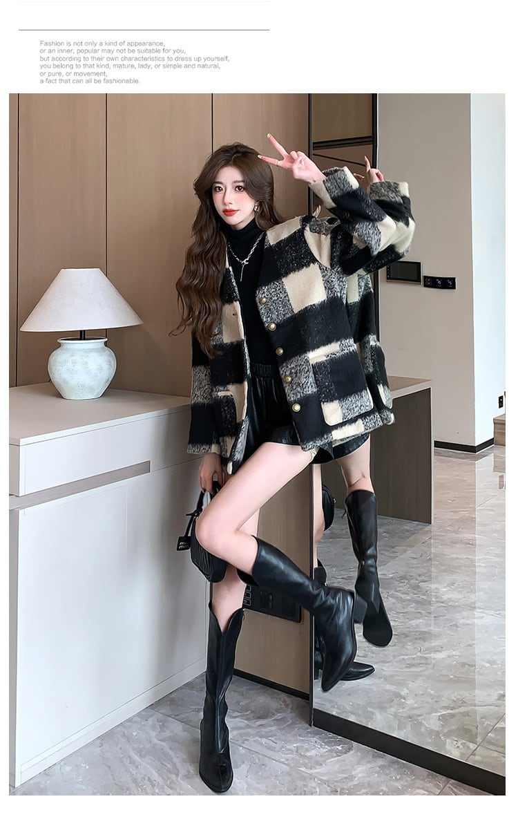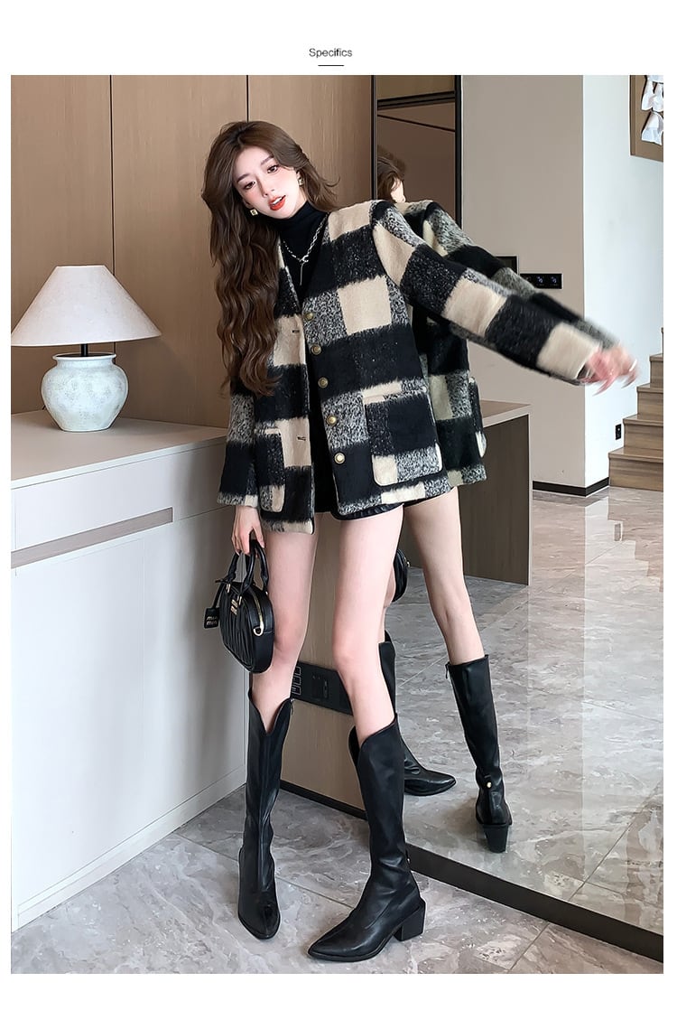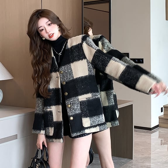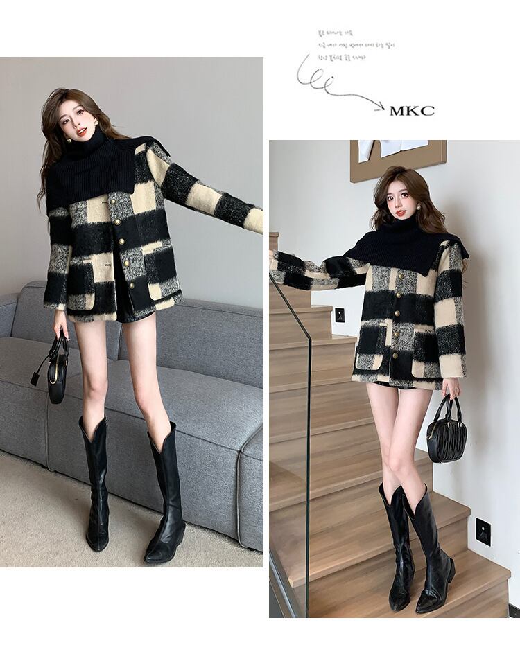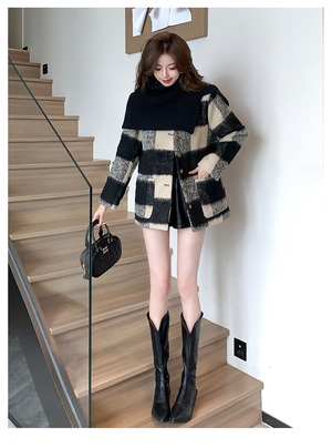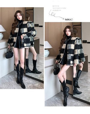 【outer】チェック柄コート M20128