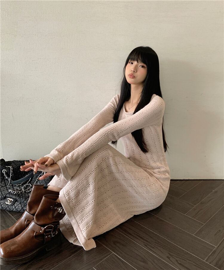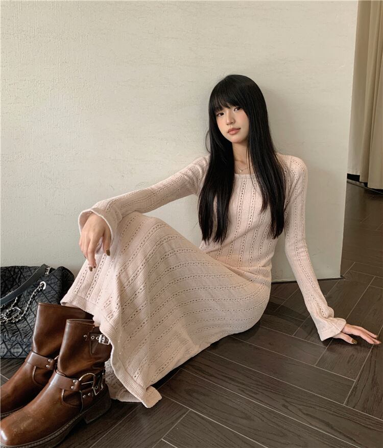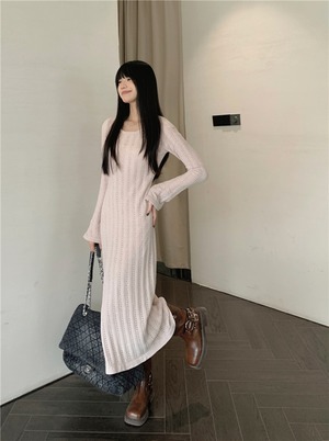【dress】フレアスリーブニットワンピース M20214