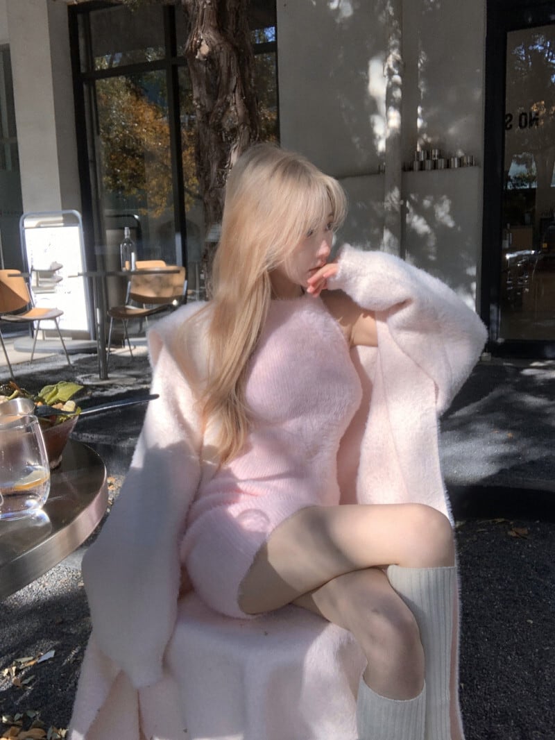【set】ロング丈ニットカーデ×ワンピースセット M20449