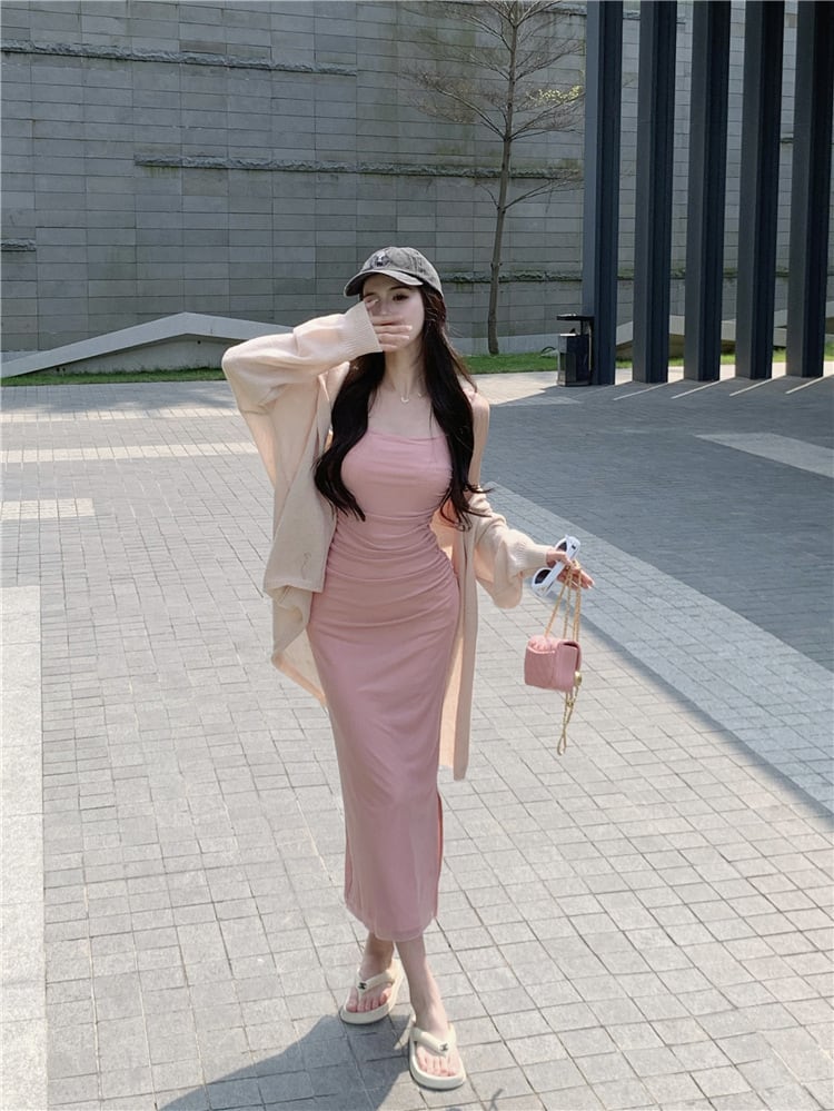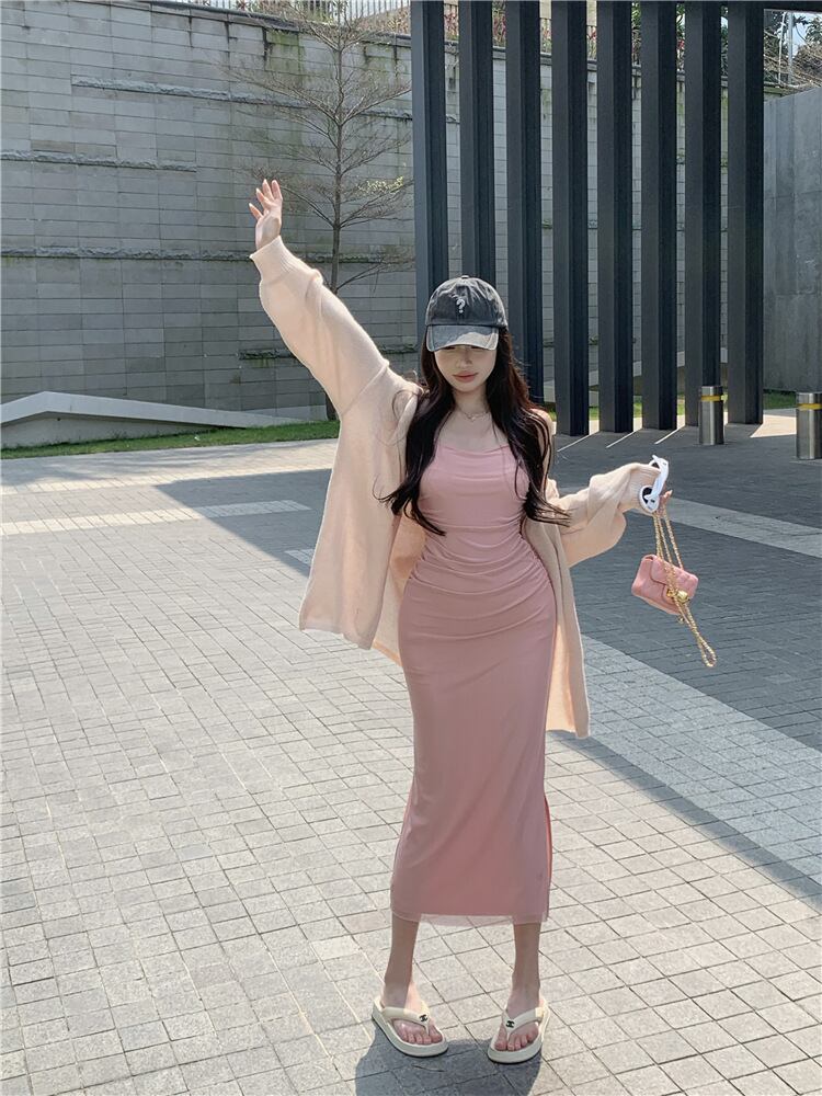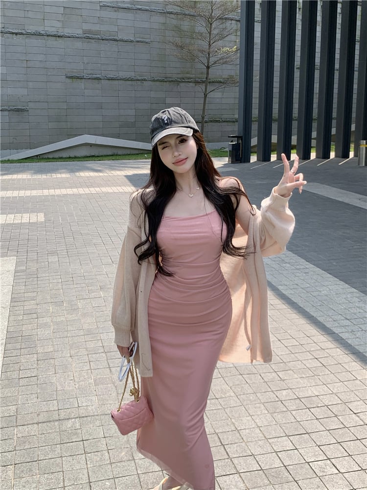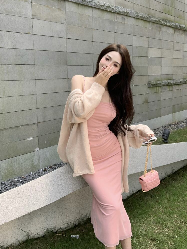 【set】ニットカーデ×キャミワンピースセット M22045