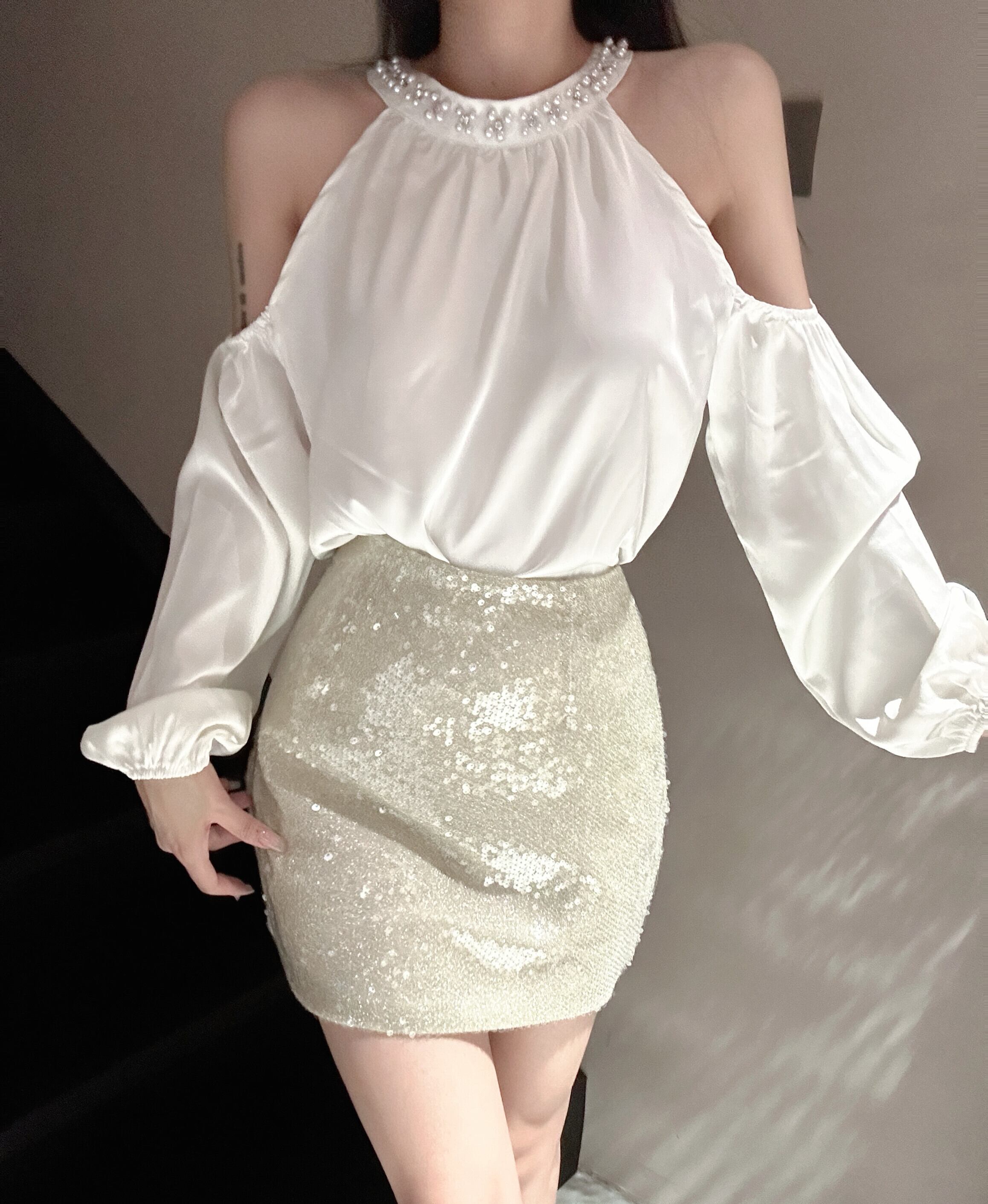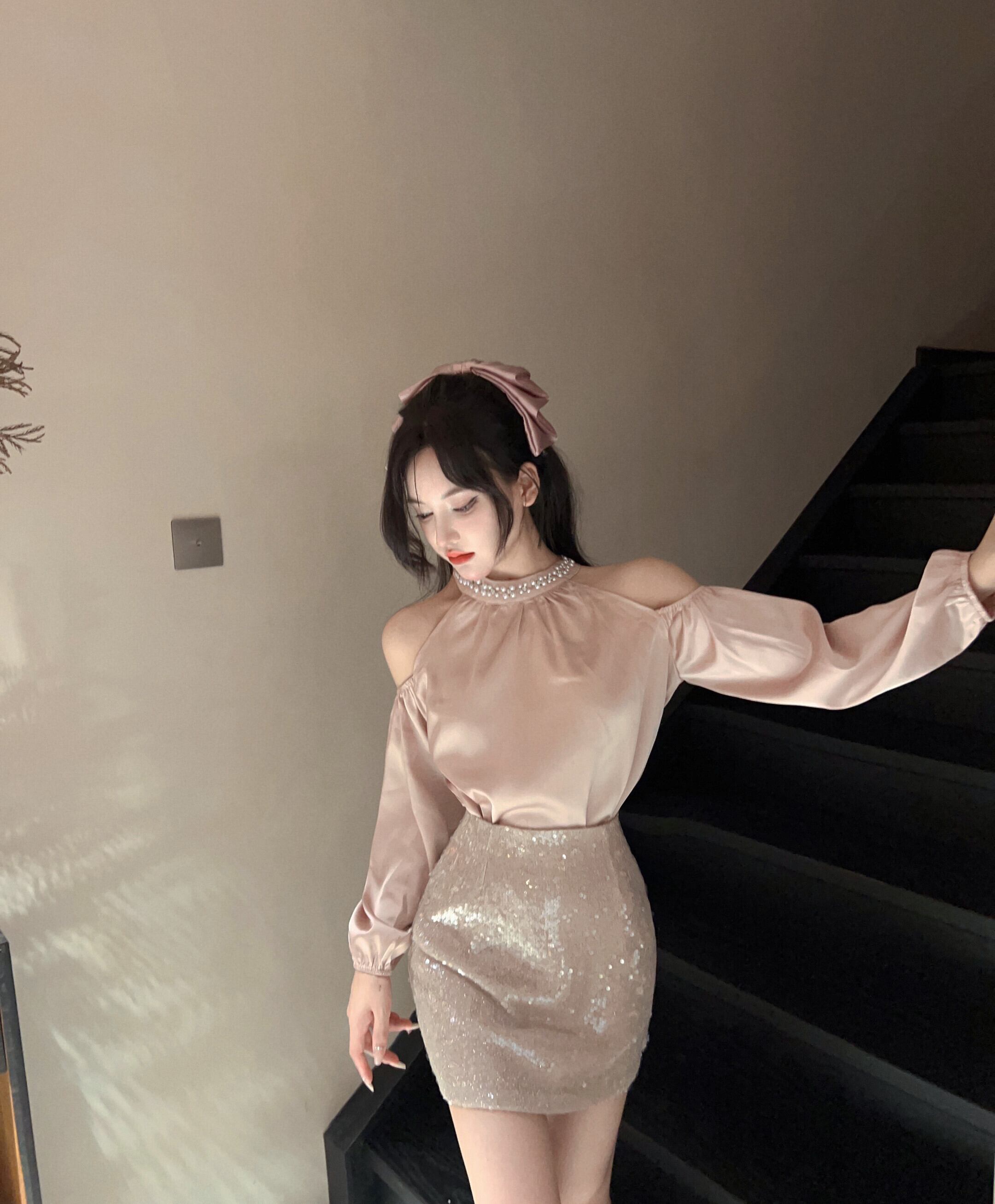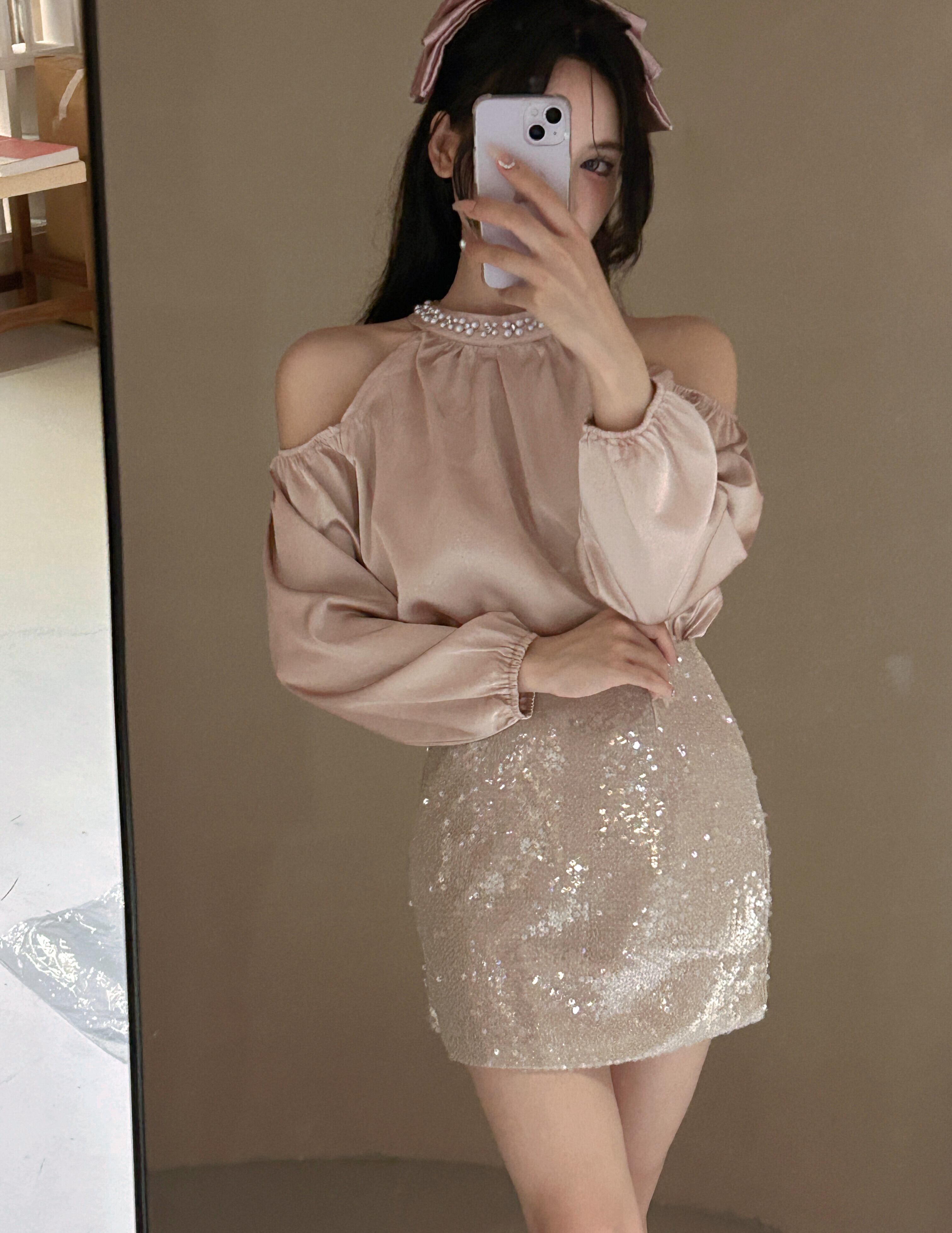 【set】オフショルダートップス×スカートセット M22382