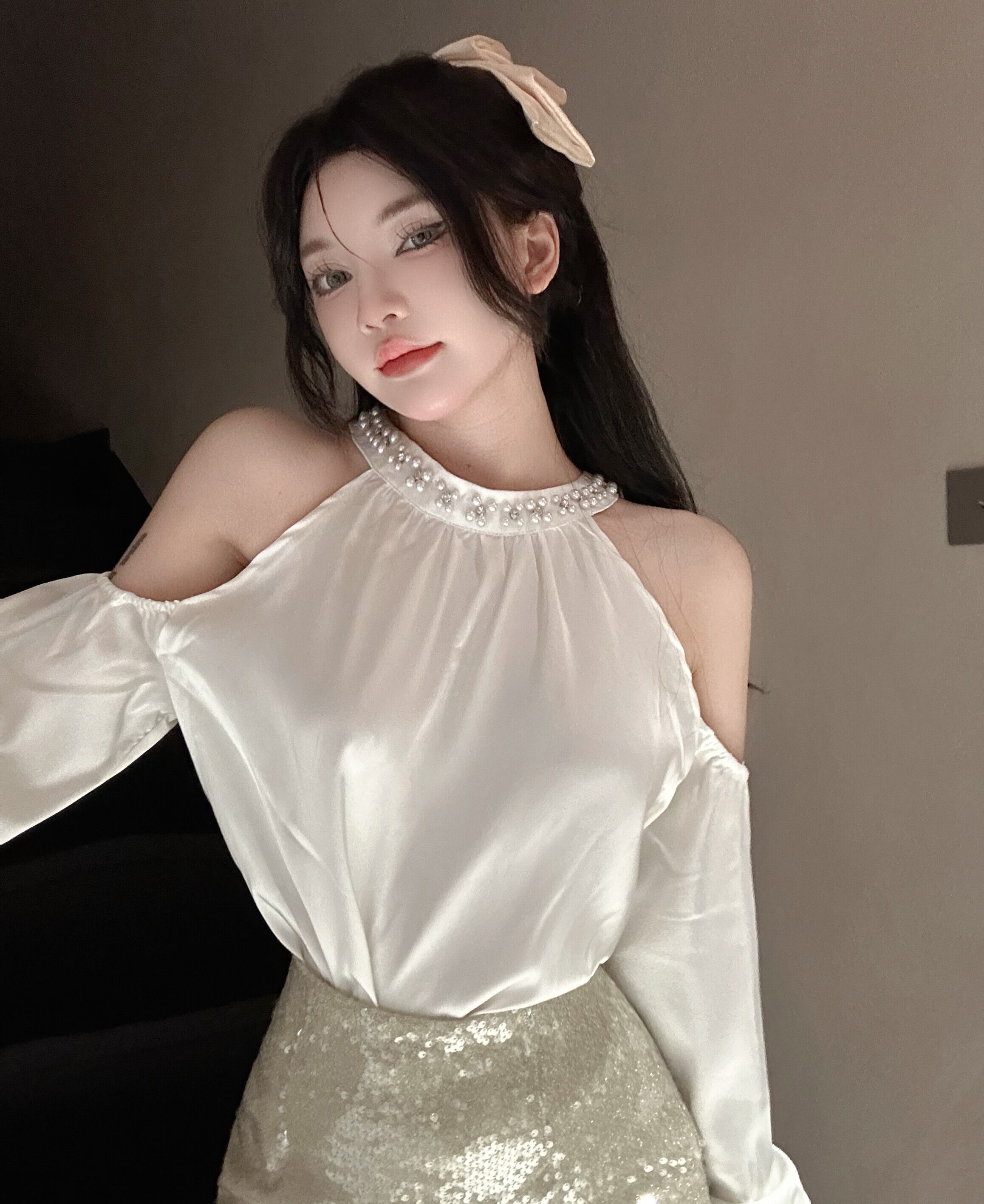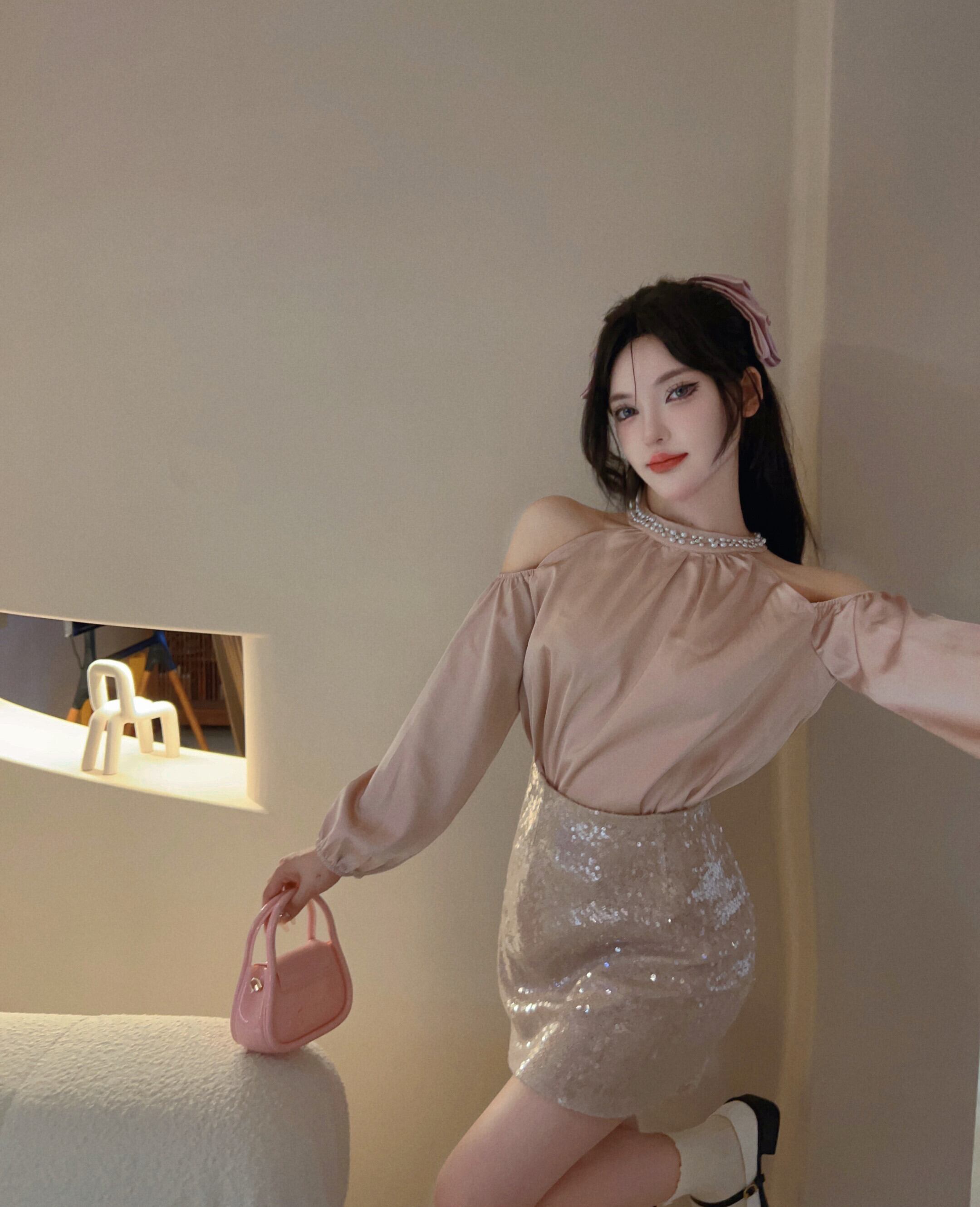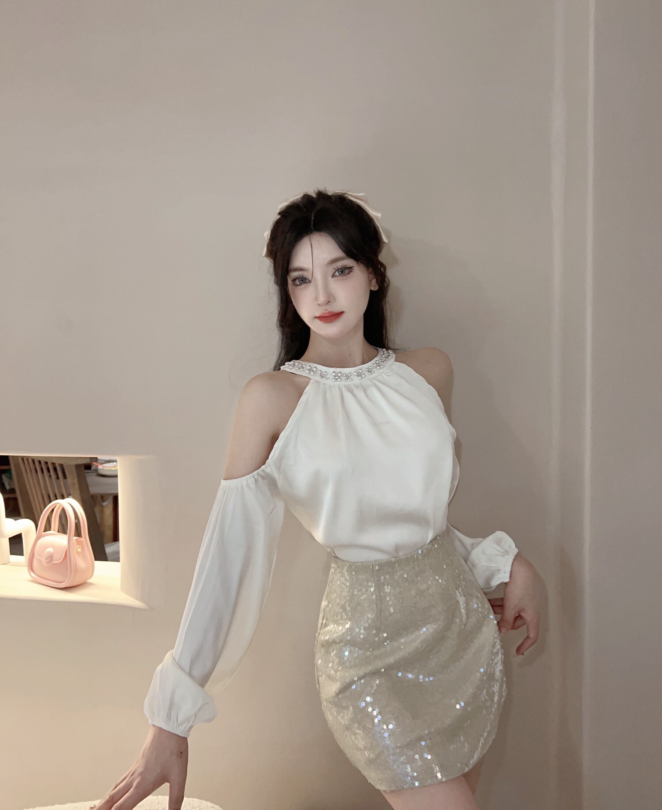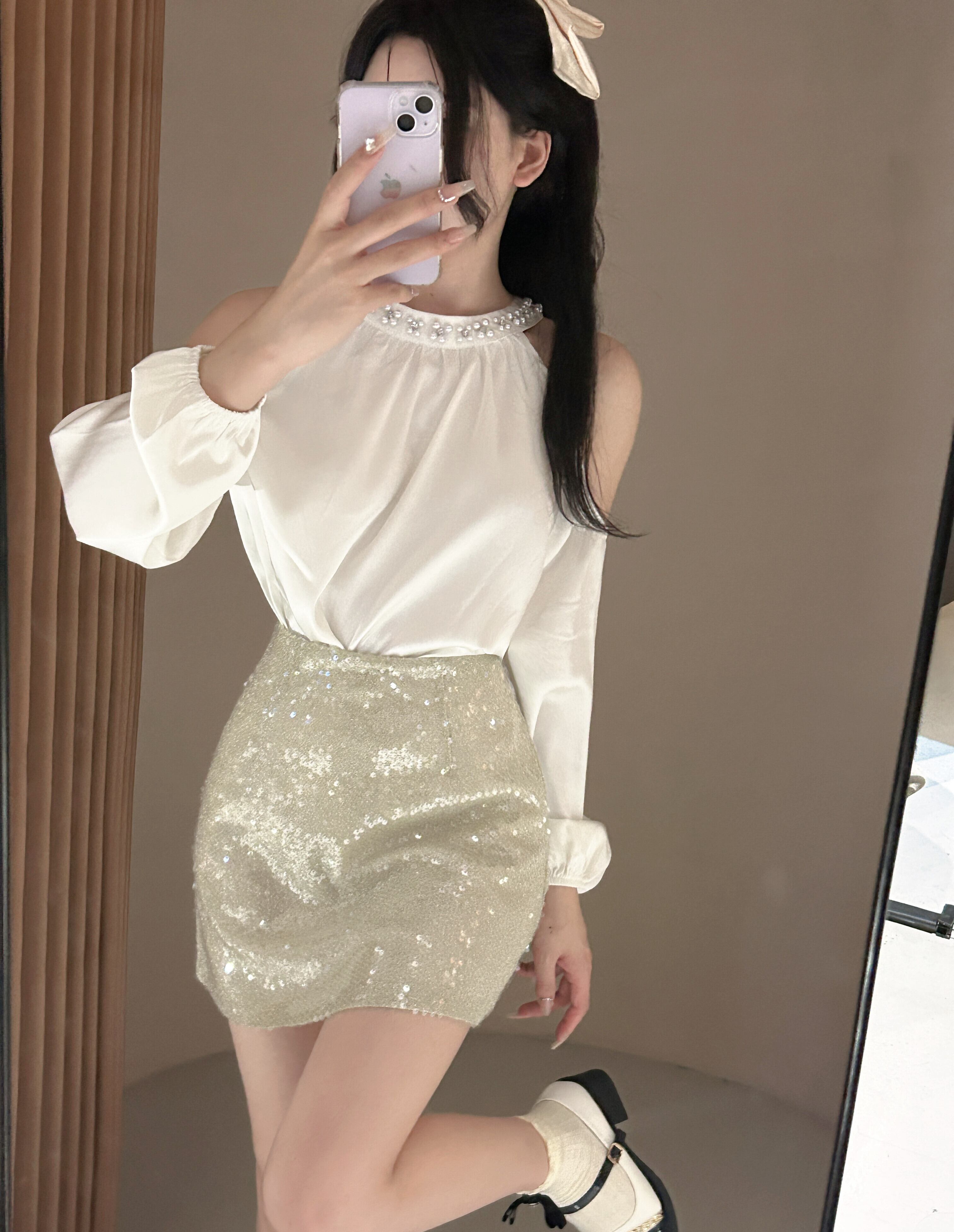 【set】オフショルダートップス×スカートセット M22382