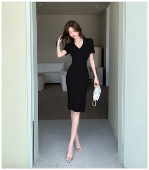 【dress】Vネックニットワンピース M22531