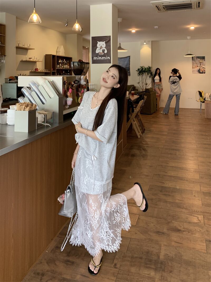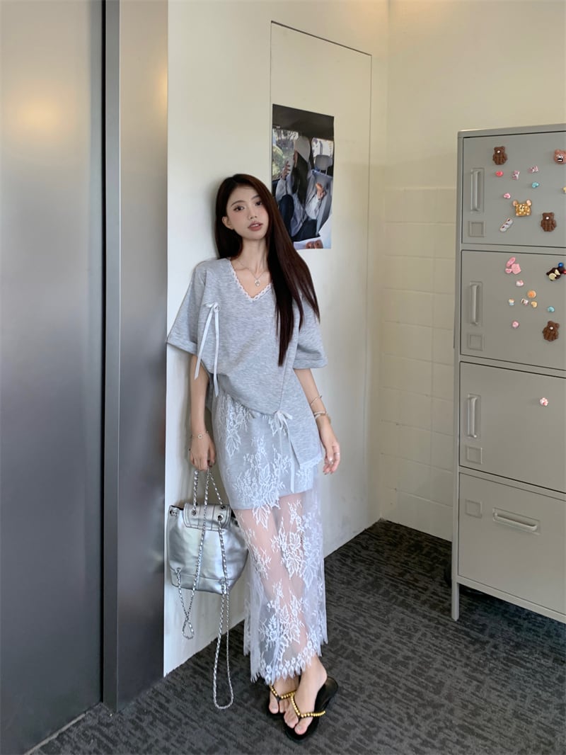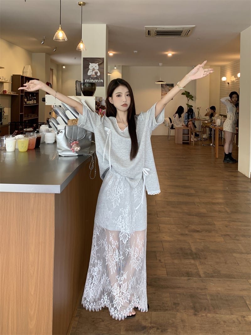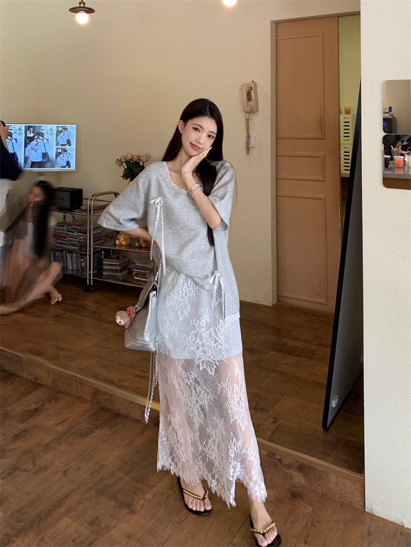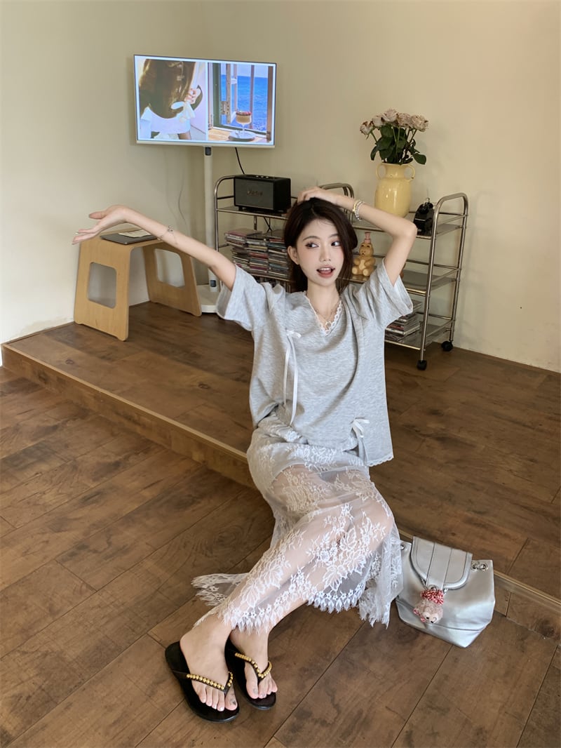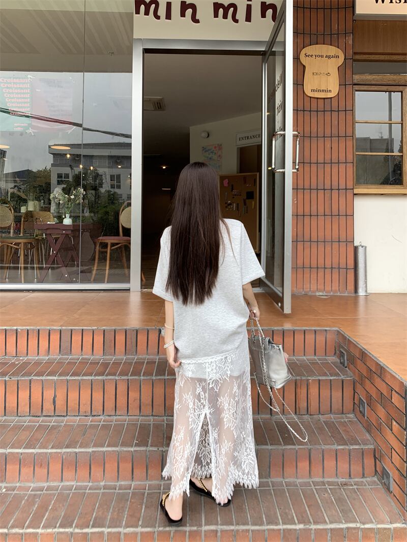 【set】Tシャツ×レーススカートセット M22978