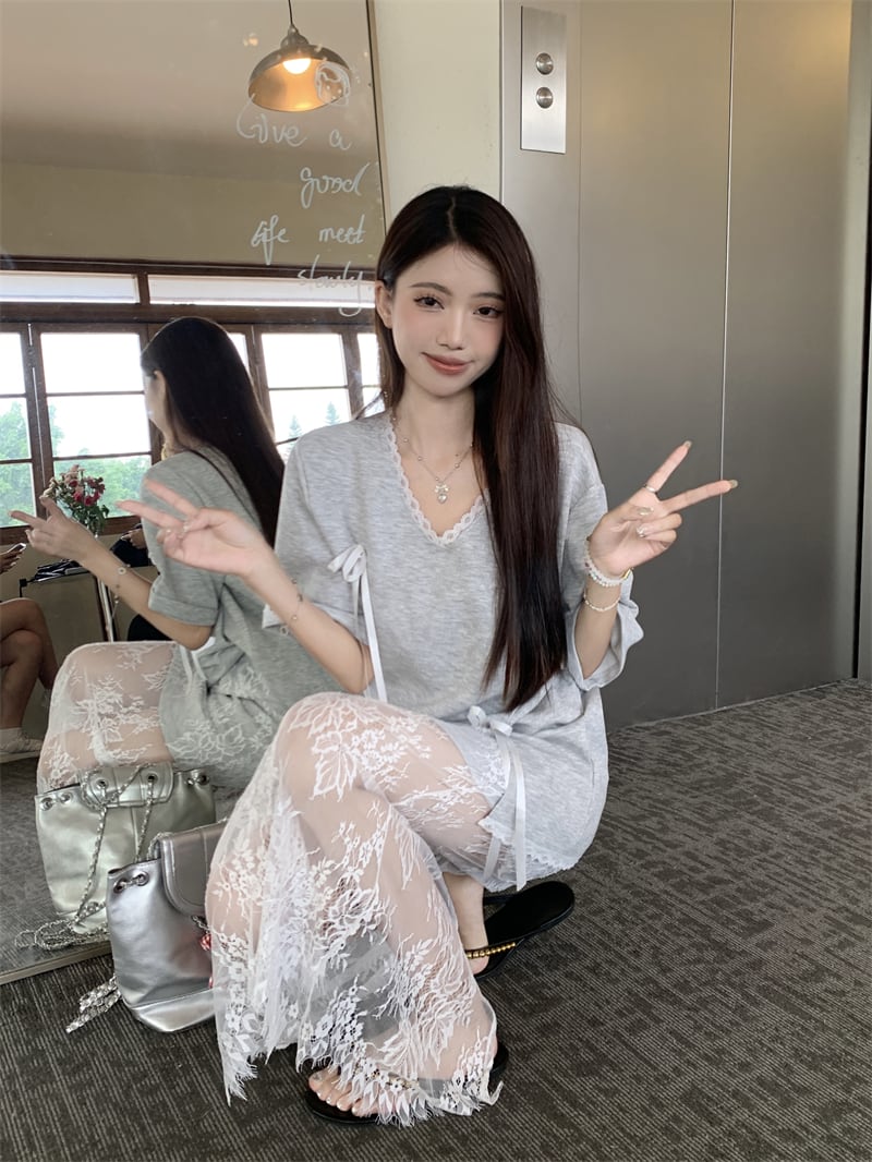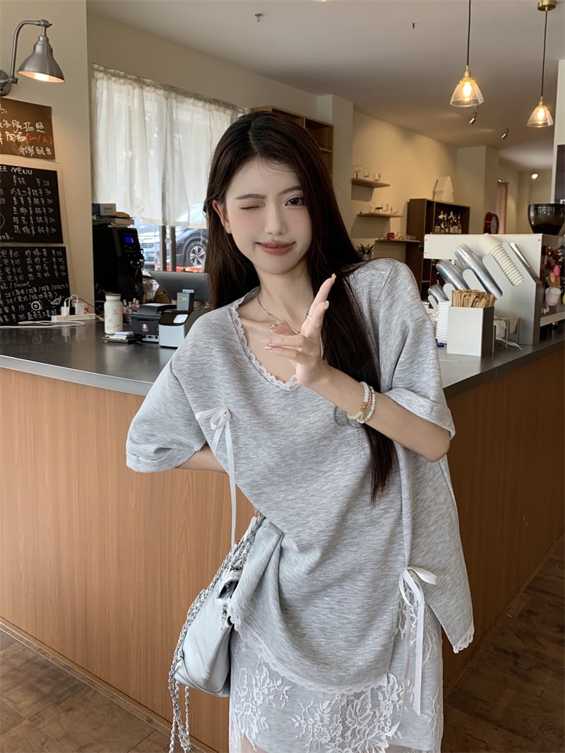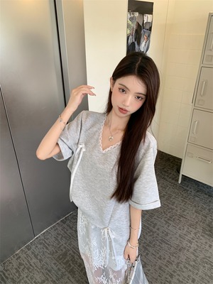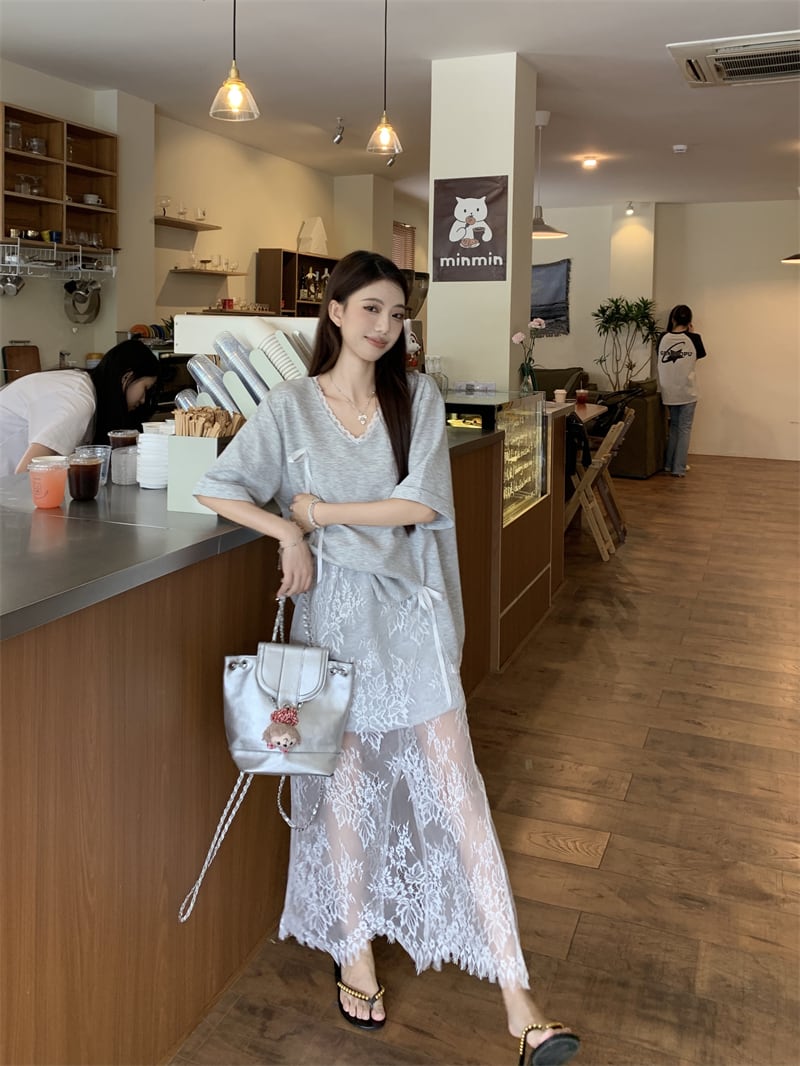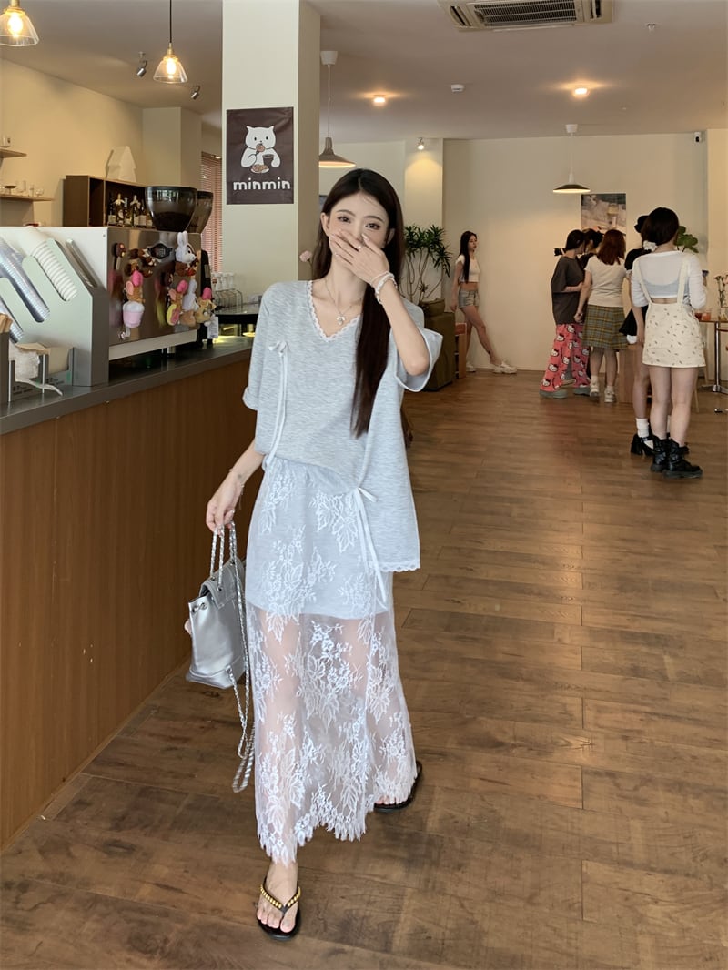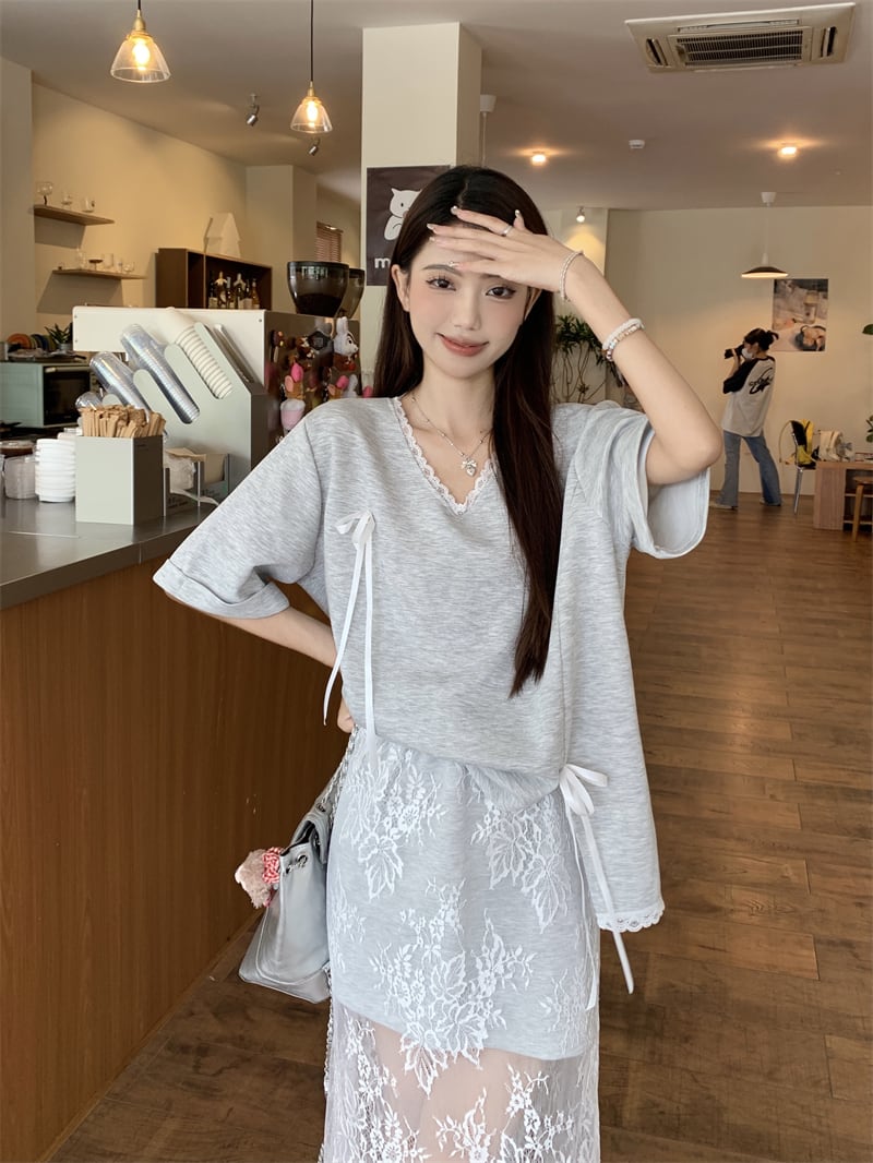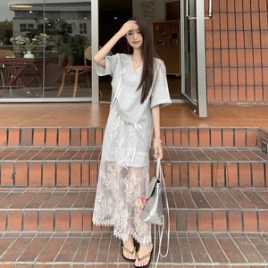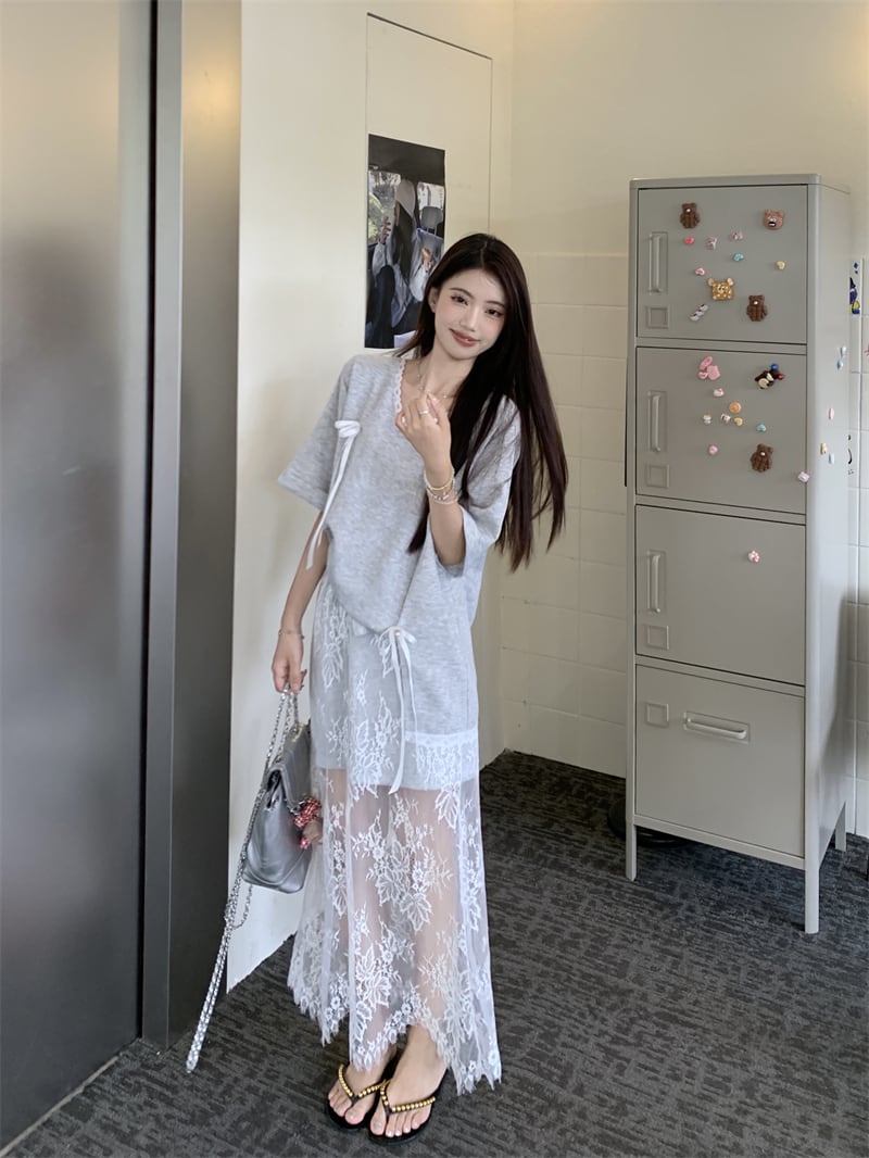 【set】Tシャツ×レーススカートセット M22978