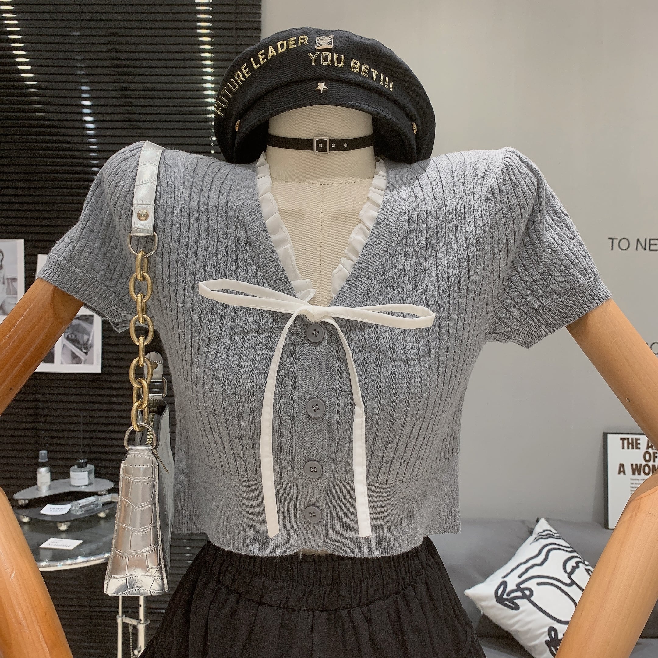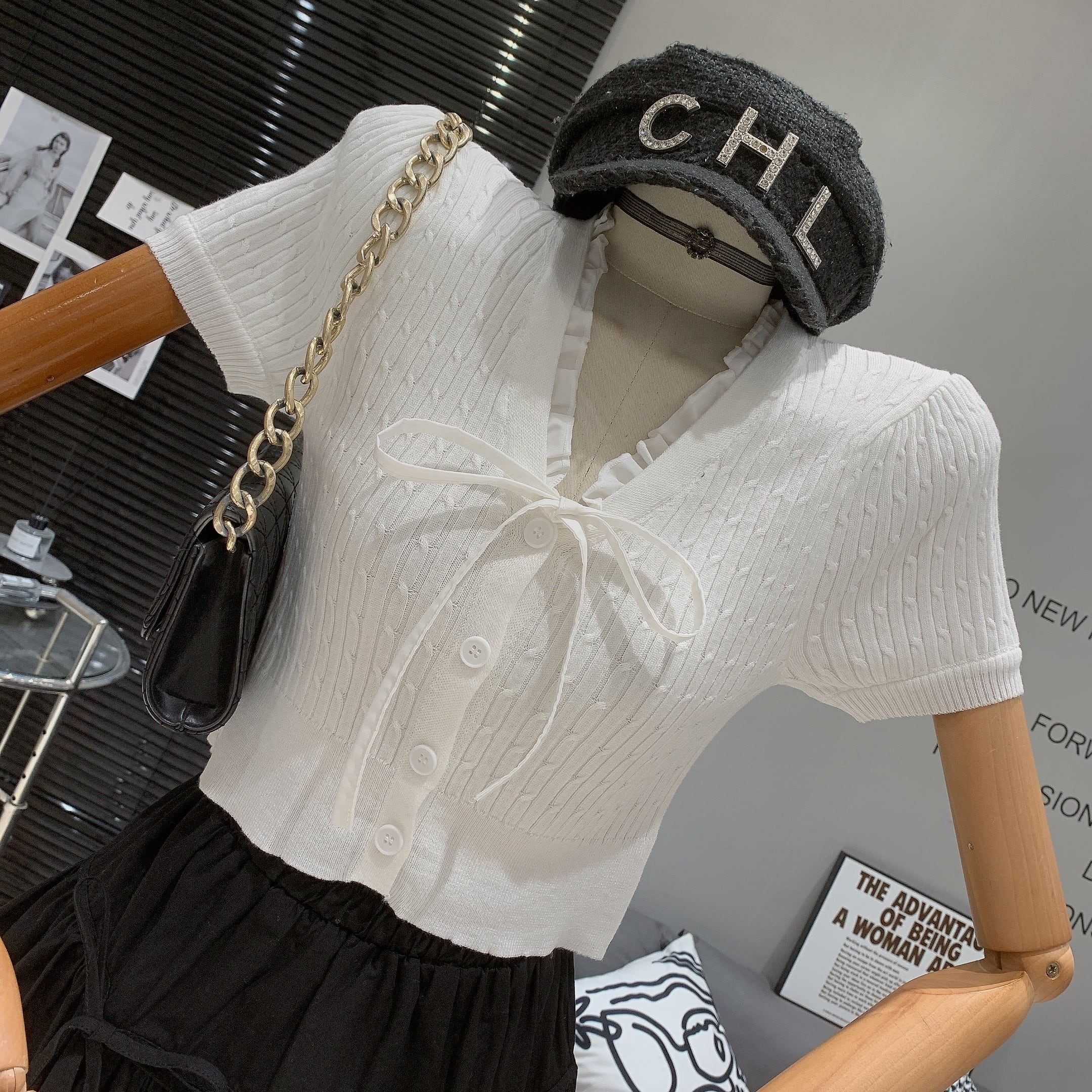 【tops】Vネックニットトップス M22989