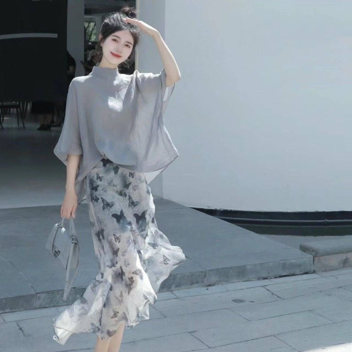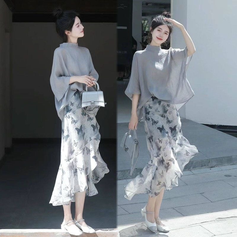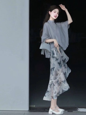 【set】シンプルブラウス×マーメイドスカートセット N2563