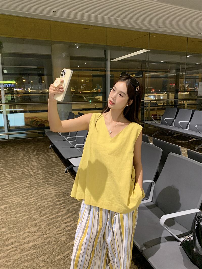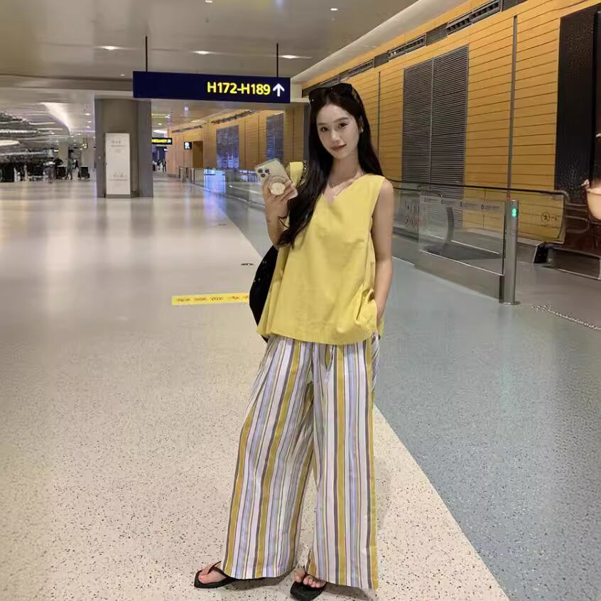 【set】ノースリーブトップス×ワイドパンツセット M23682