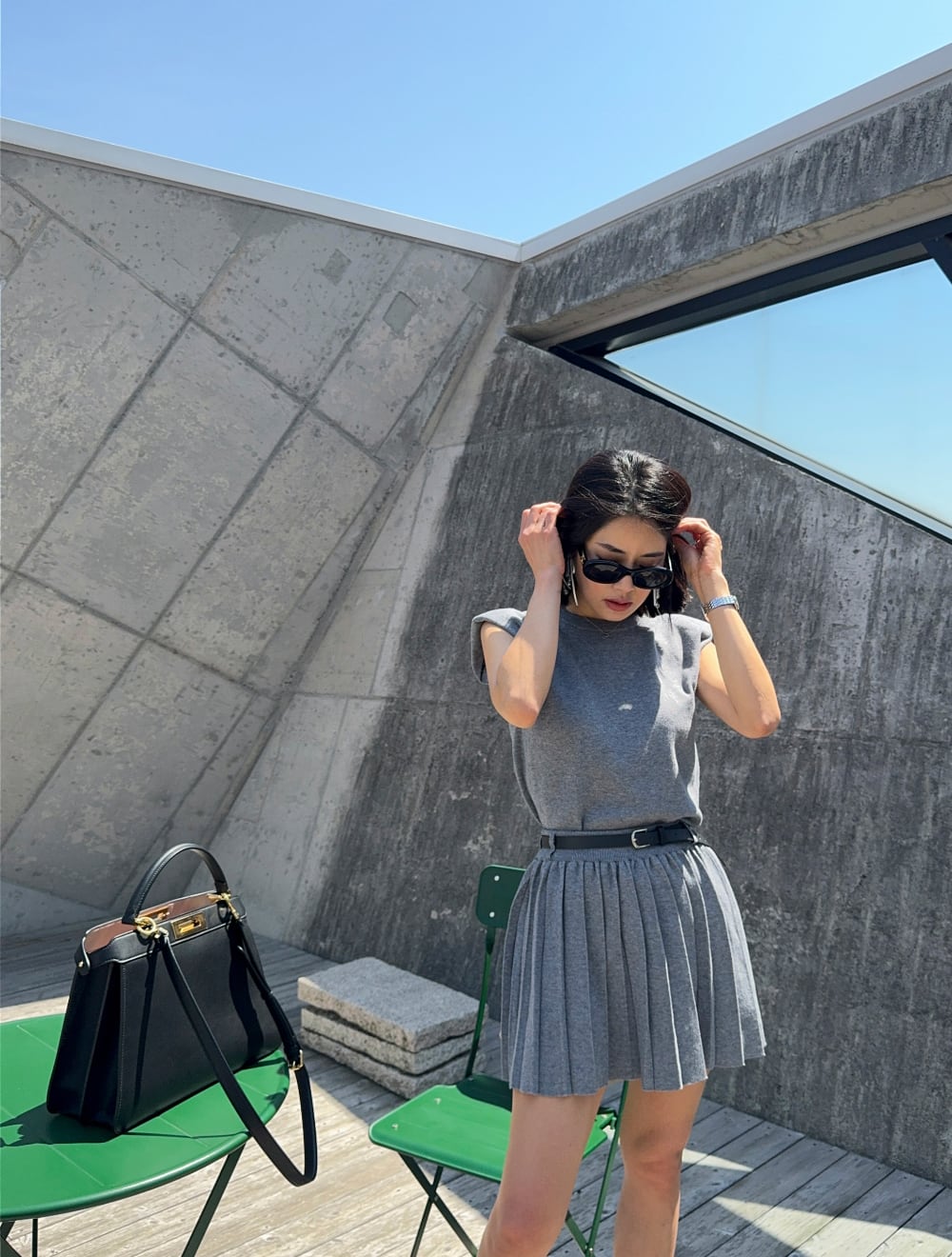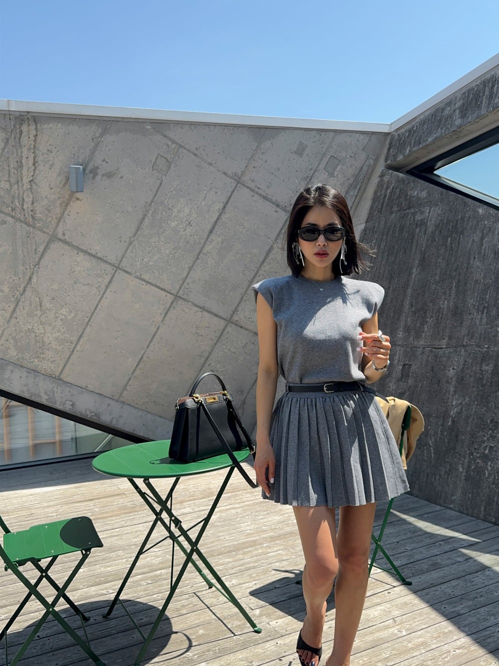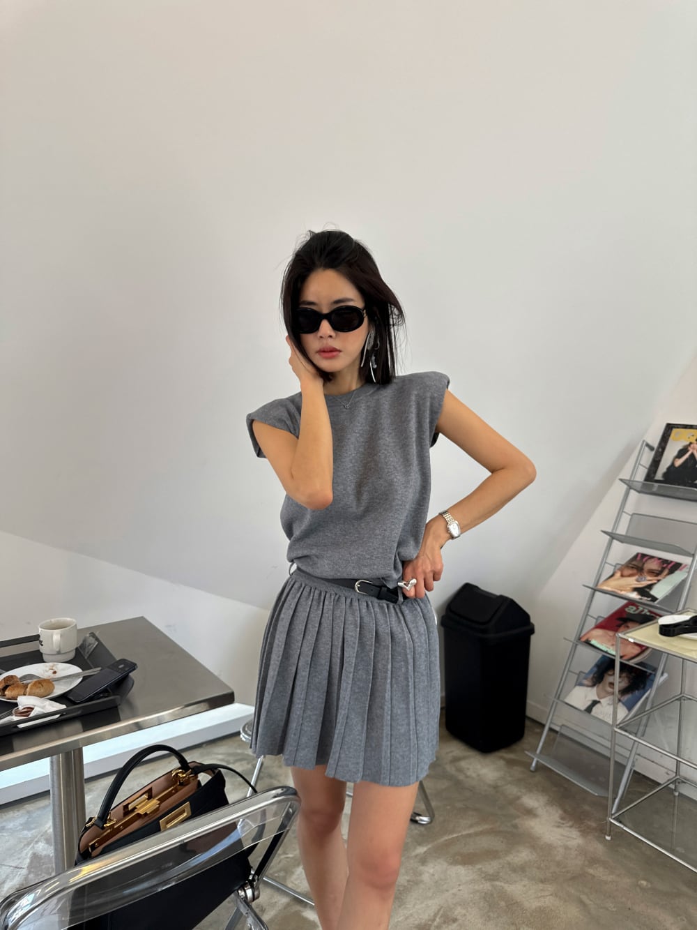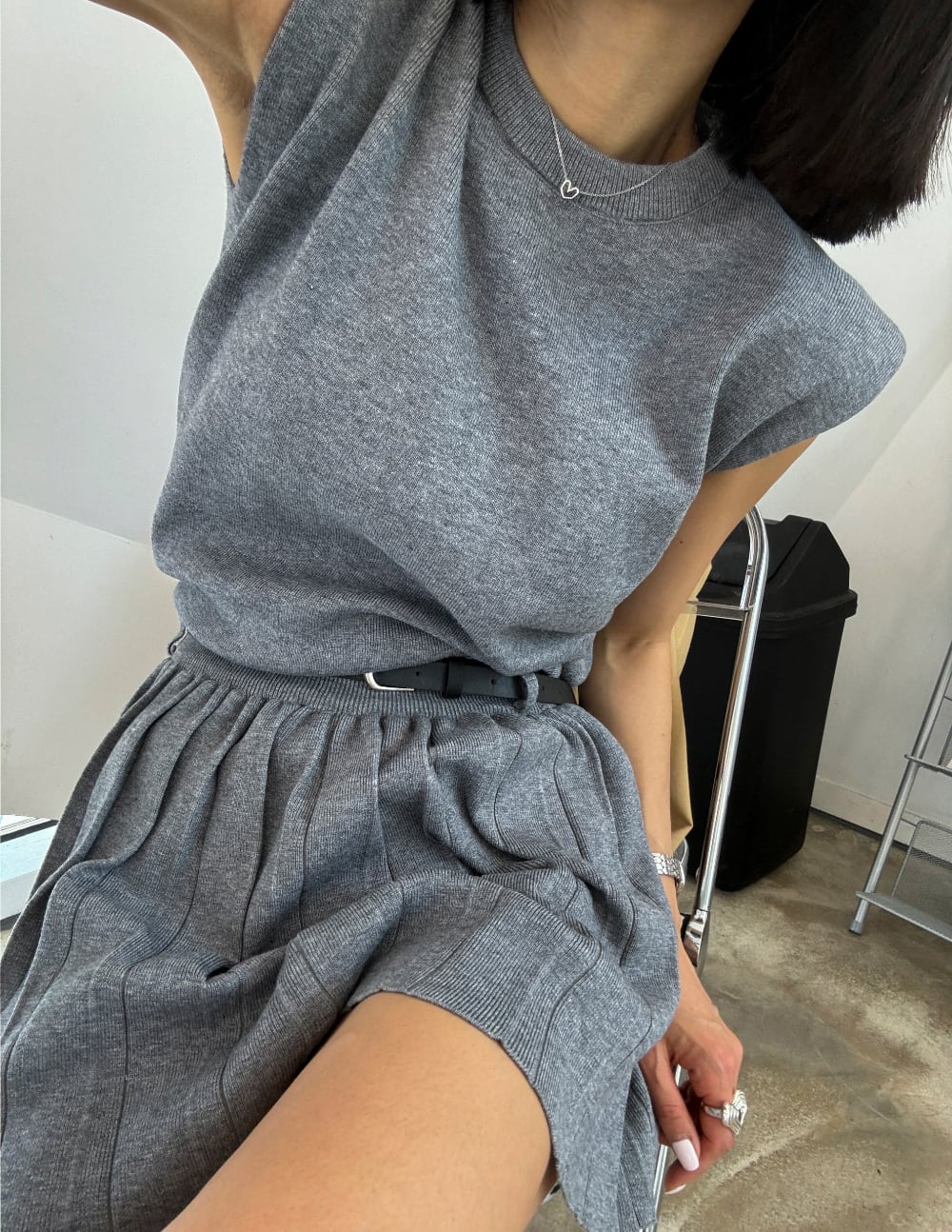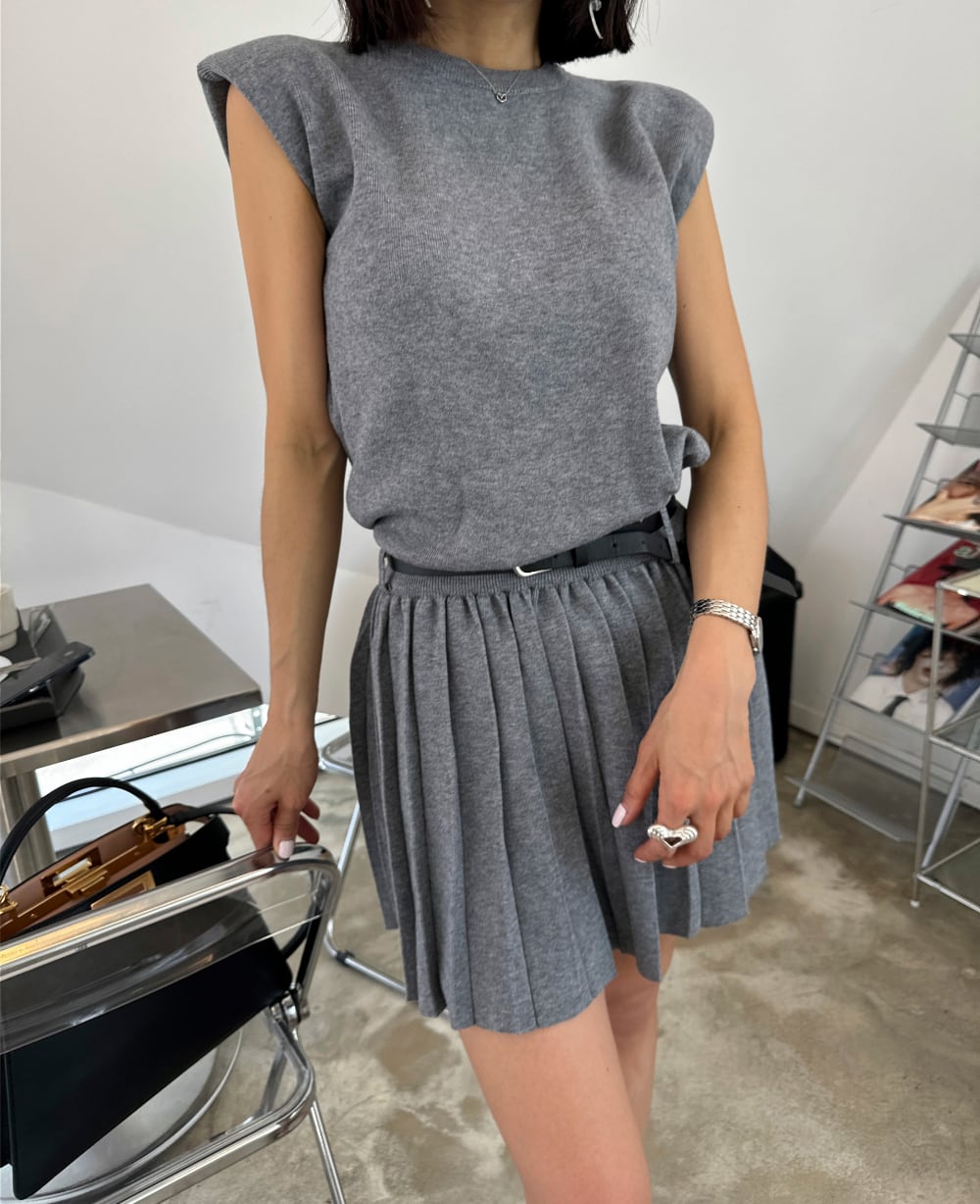 【set】ノースリーブトップス×プリーツスカートセット M23812