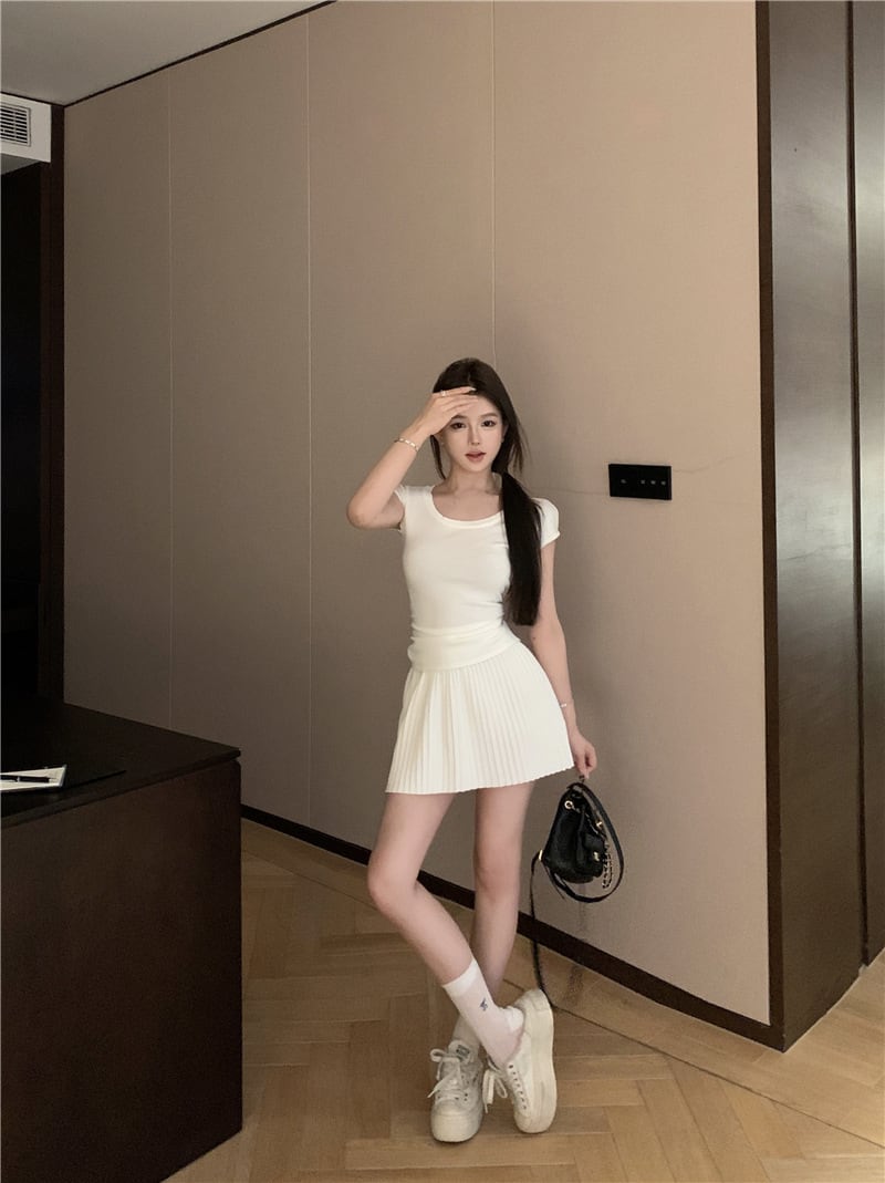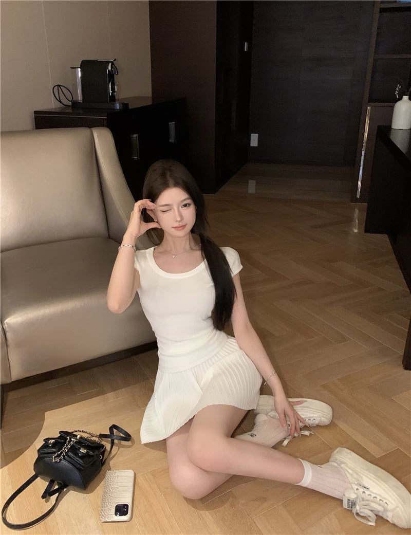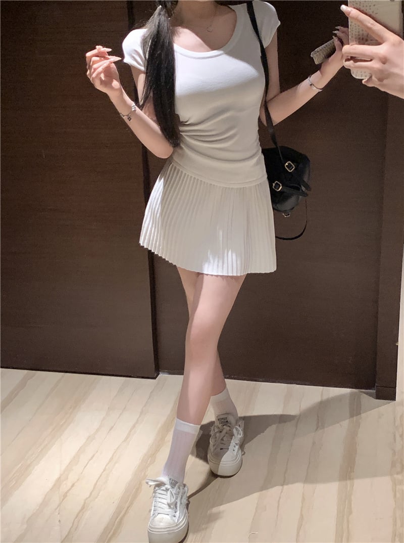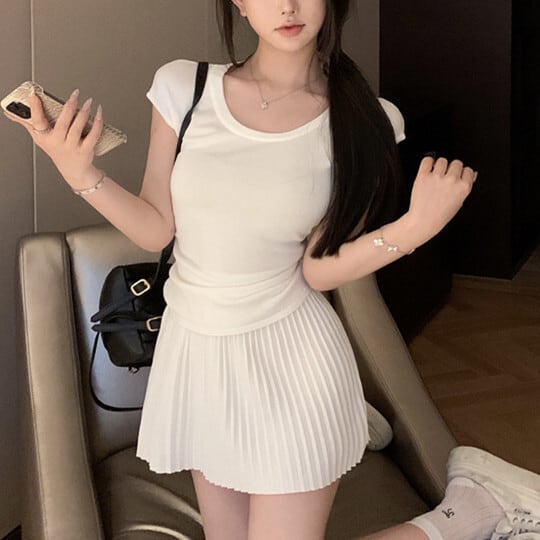 【set】Tシャツ×プリーツスカートセット M24484