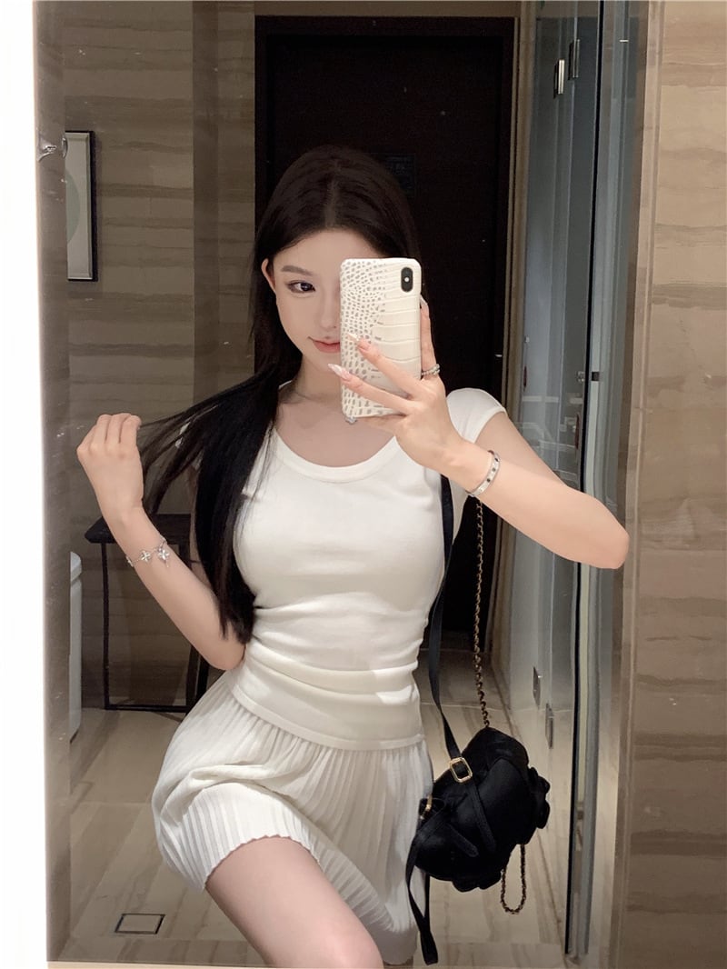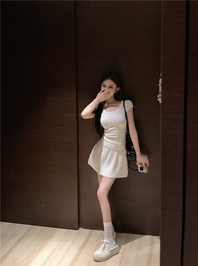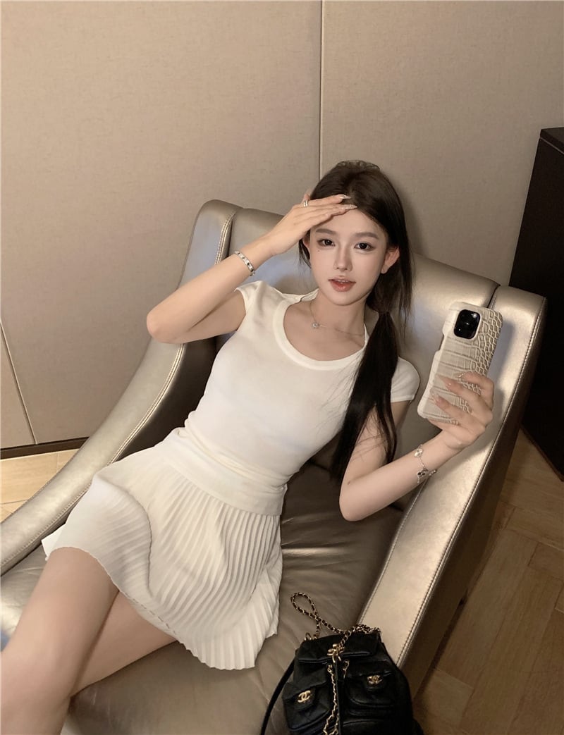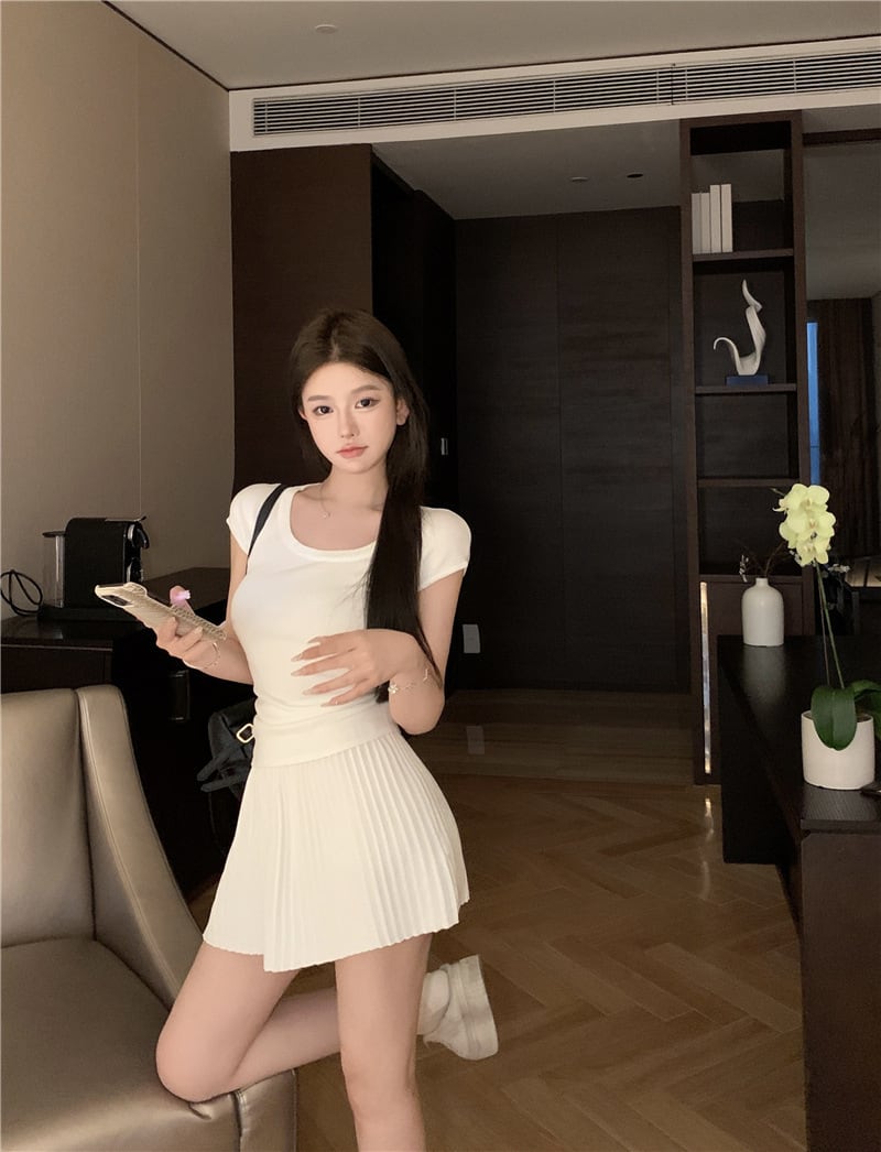 【set】Tシャツ×プリーツスカートセット M24484