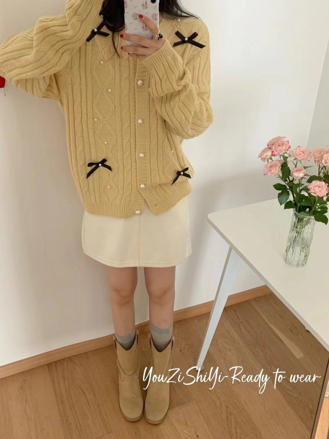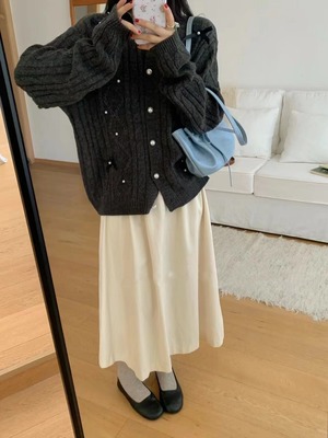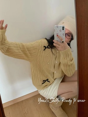 【outer】リボン付きニットカーデ M25677