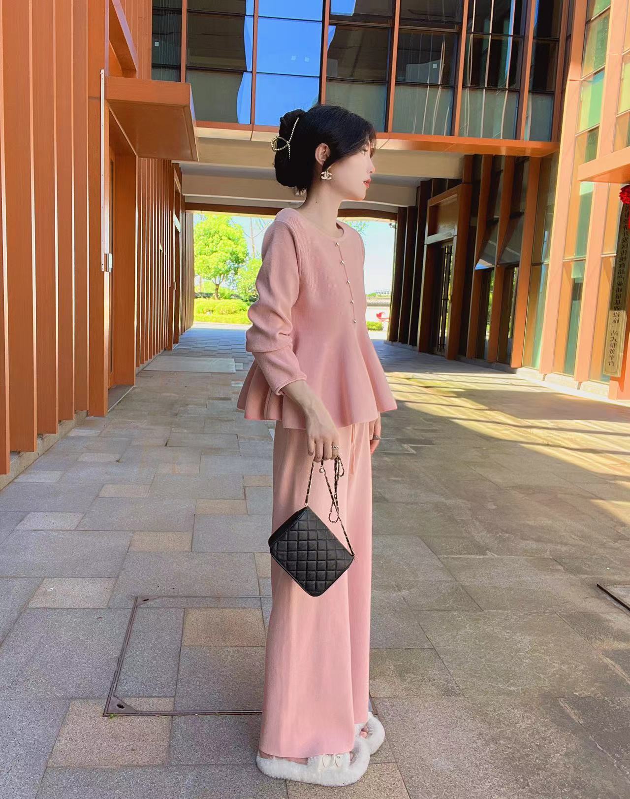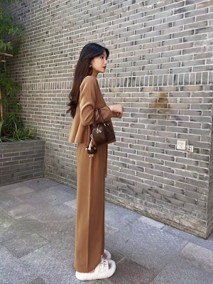 【set】ペプラムニットトップス×ワイドパンツセット M25838
