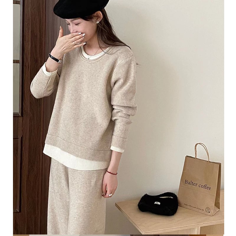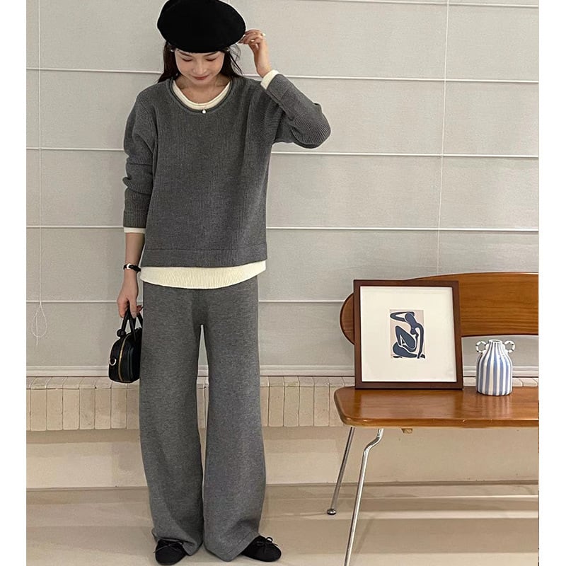 【set】切り替えニットセーター×ワイドパンツセット M25934
