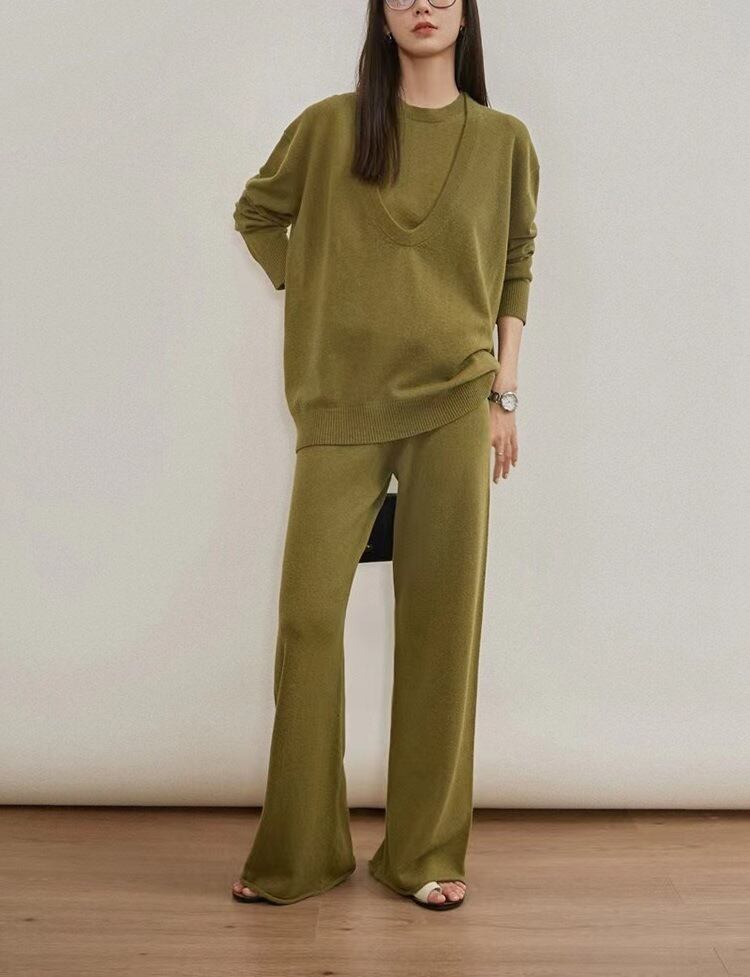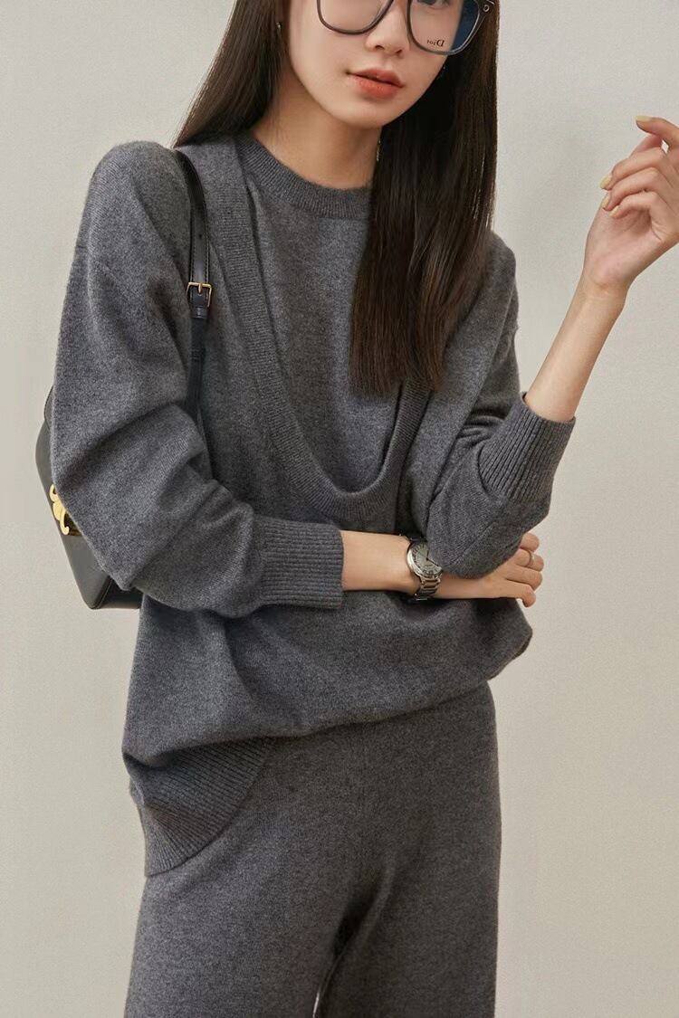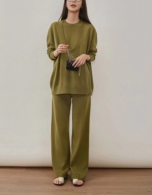 【set】ニットセーター×ニットベスト×ワイドパンツセット M25940