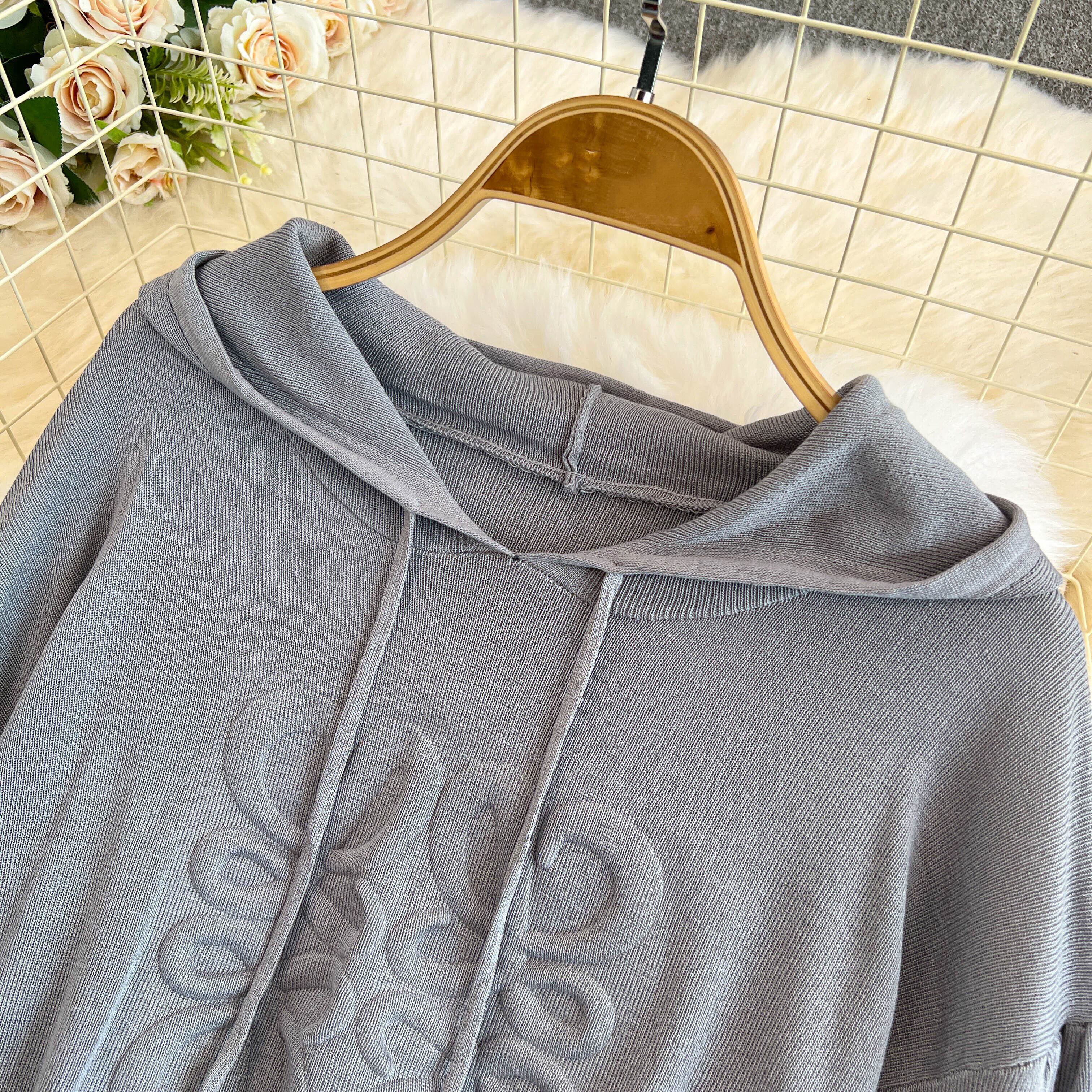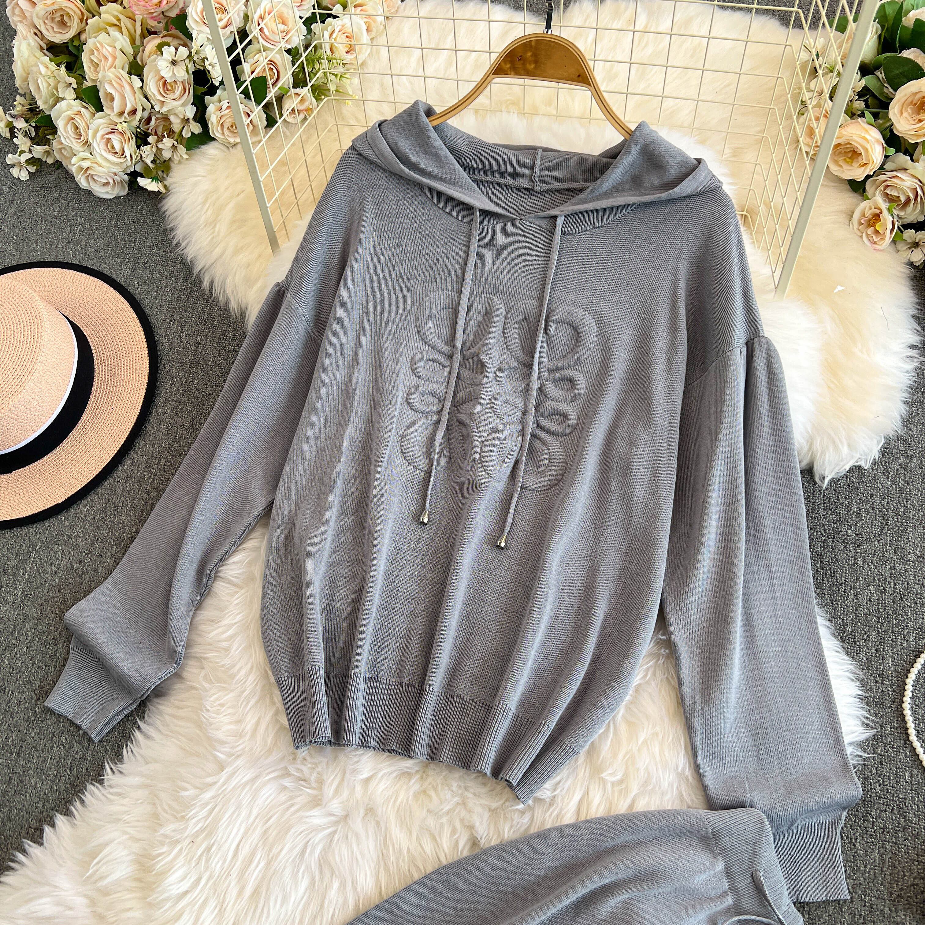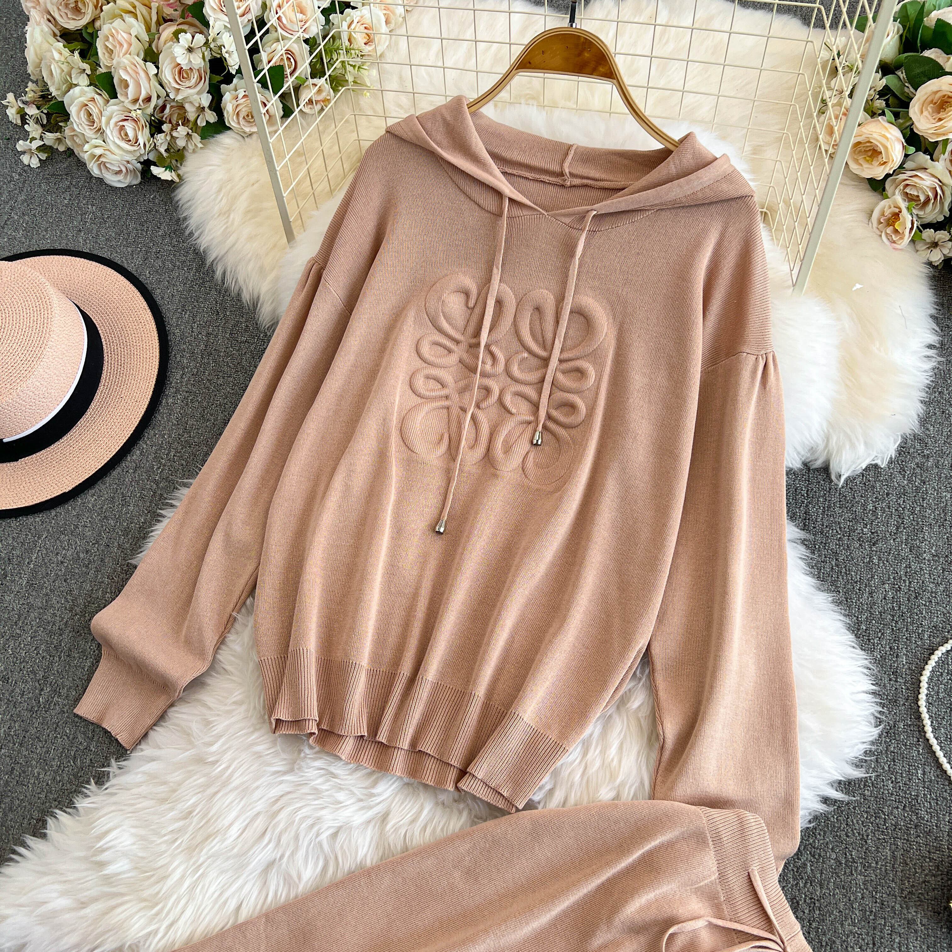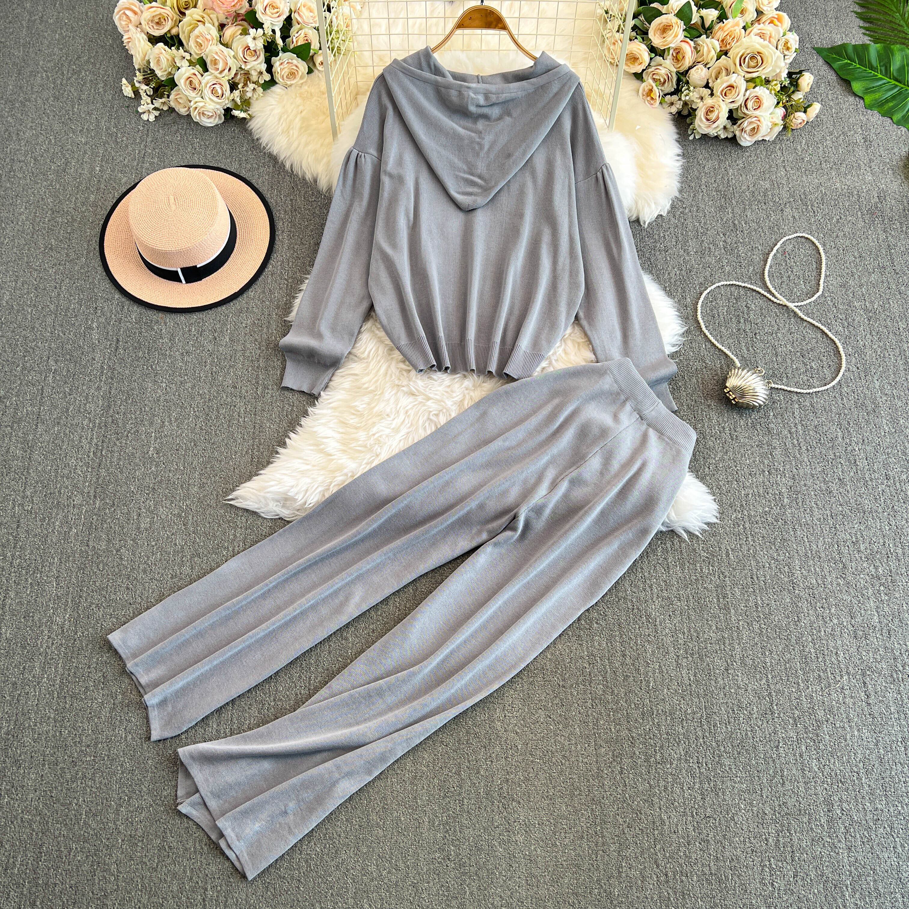 【set】フード付きニットトップス×ワイドパンツセット N2722
