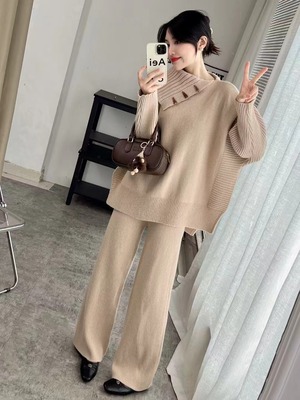 【set】ゆったりニットトップス×ワイドパンツセット N2723