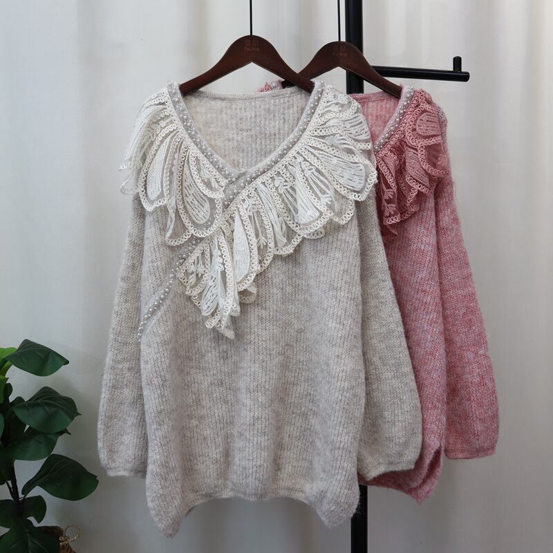 【tops】レース切り替えニットセーター M26086
