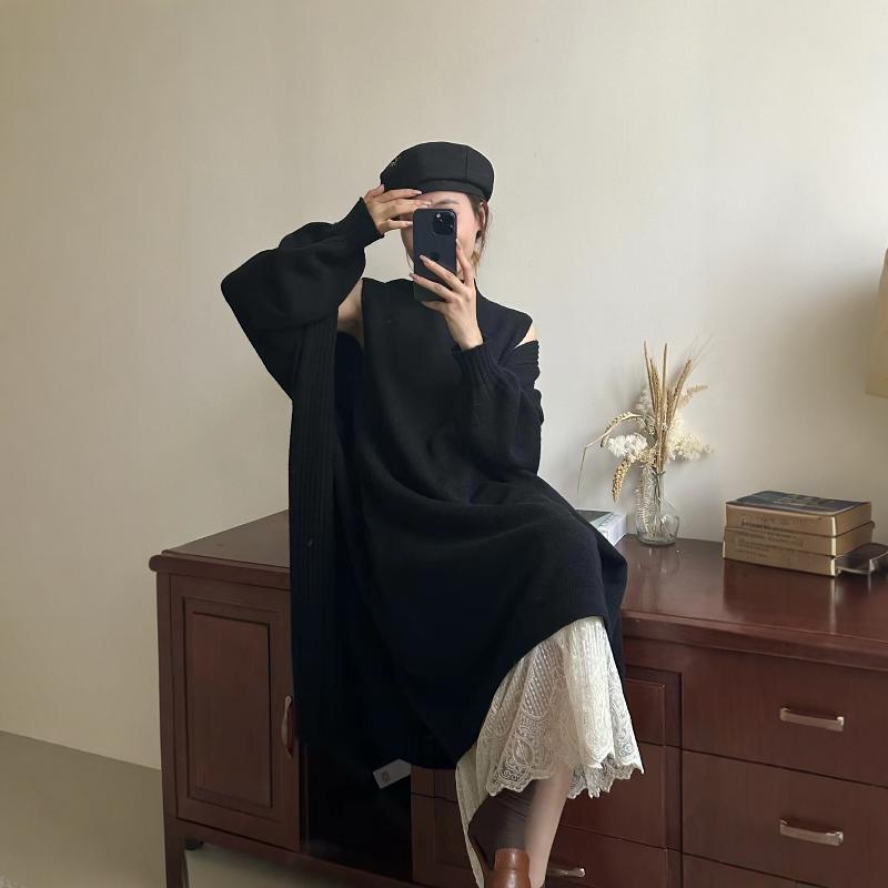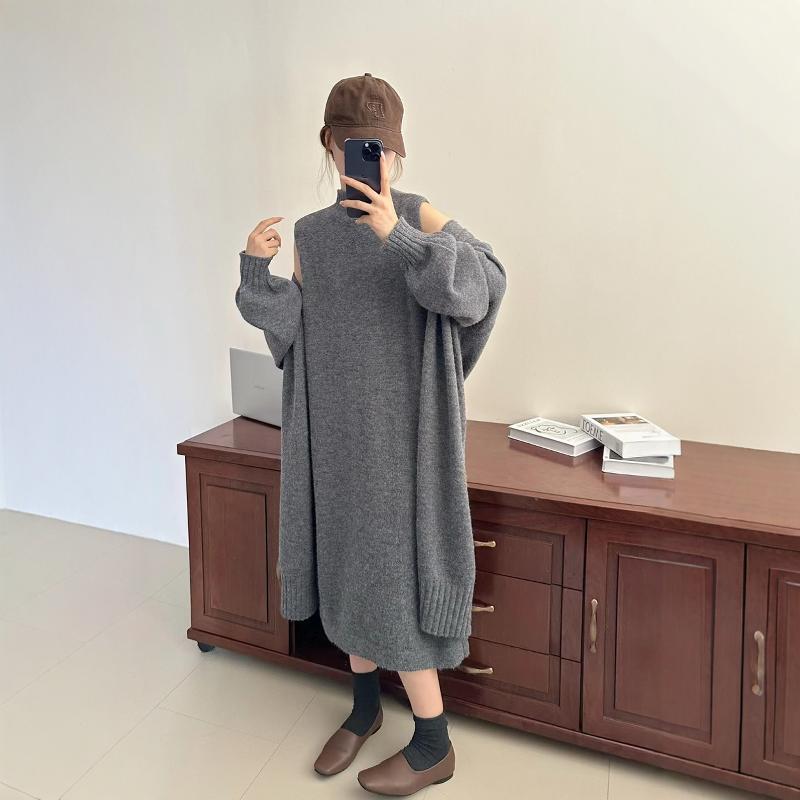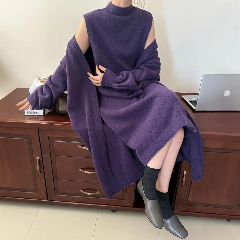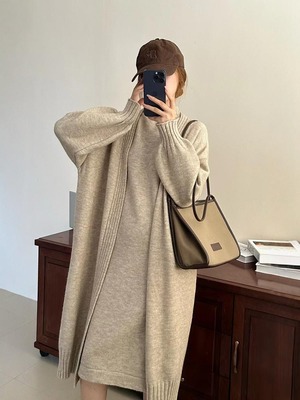 【set】ロング丈ニットカーデ×ベストワンピースセット M26378