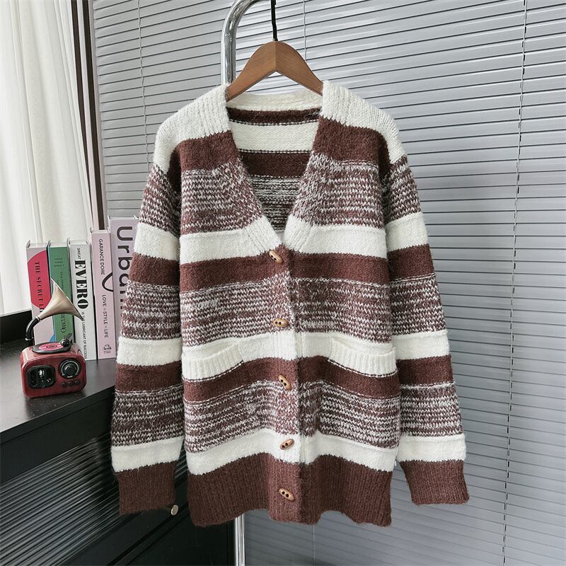 【outer】ボーダー柄ニットカーデ M26603