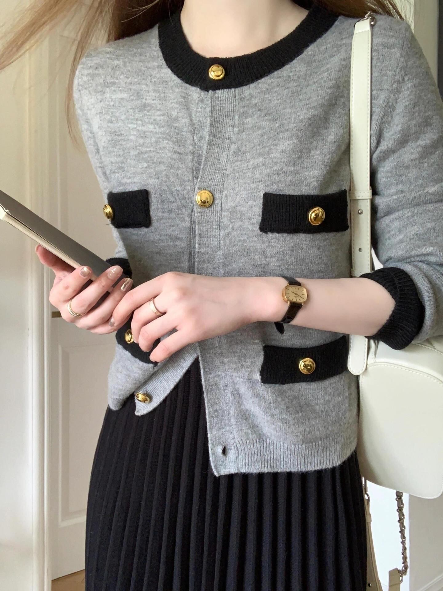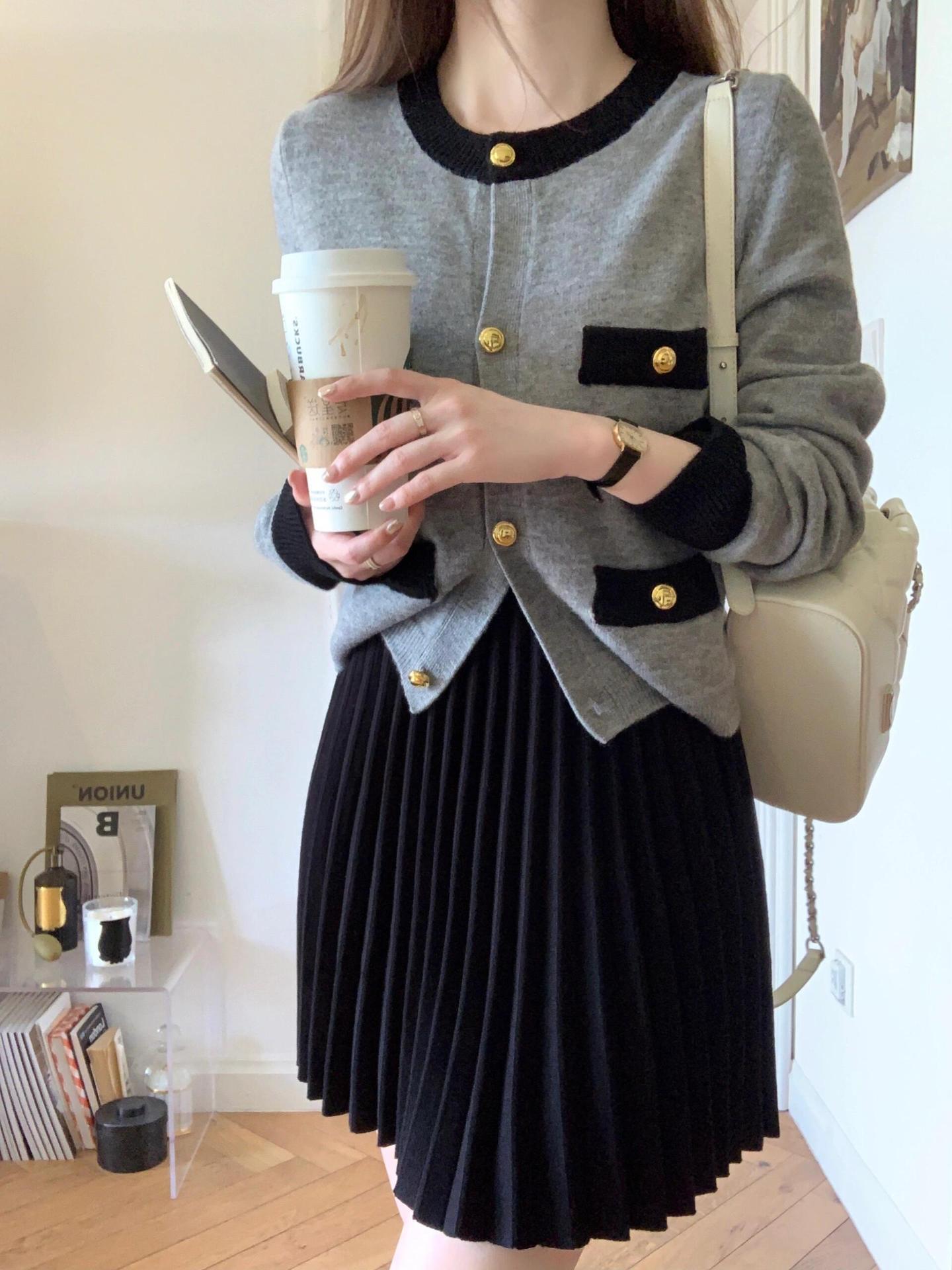 【set】ニットカーデ+プリーツスカートセット M26732