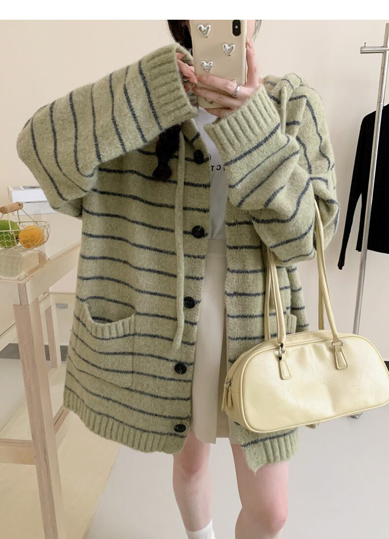 【outer】ボーダー柄ニットカーデ M26958