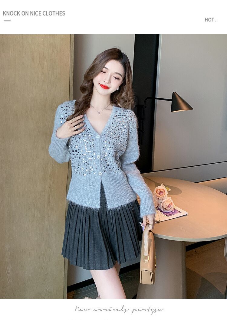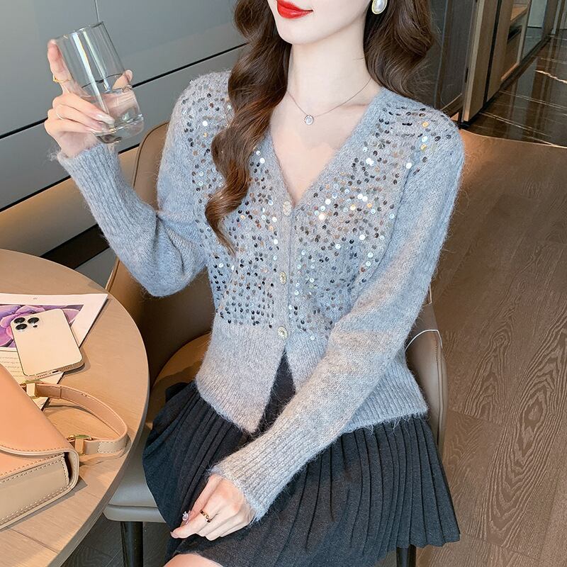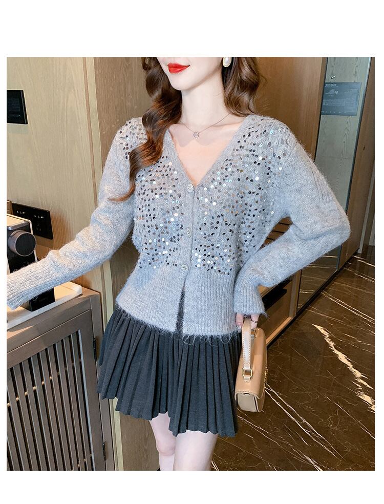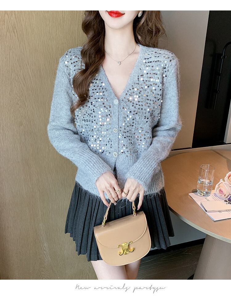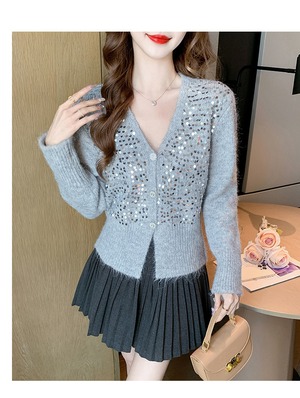 【outer】スパンコールニットカーデ M27037