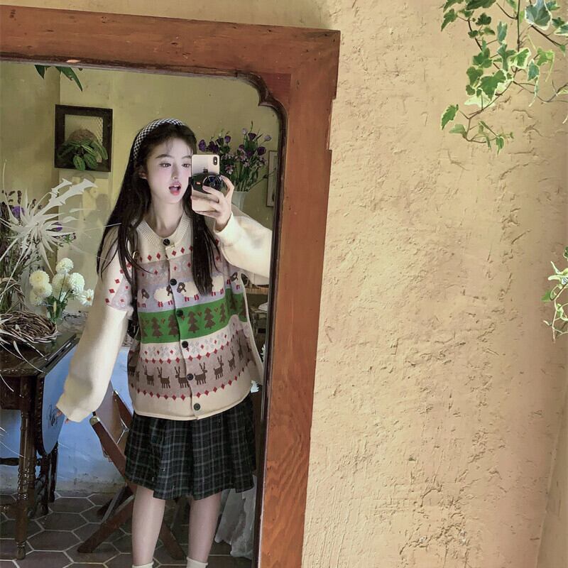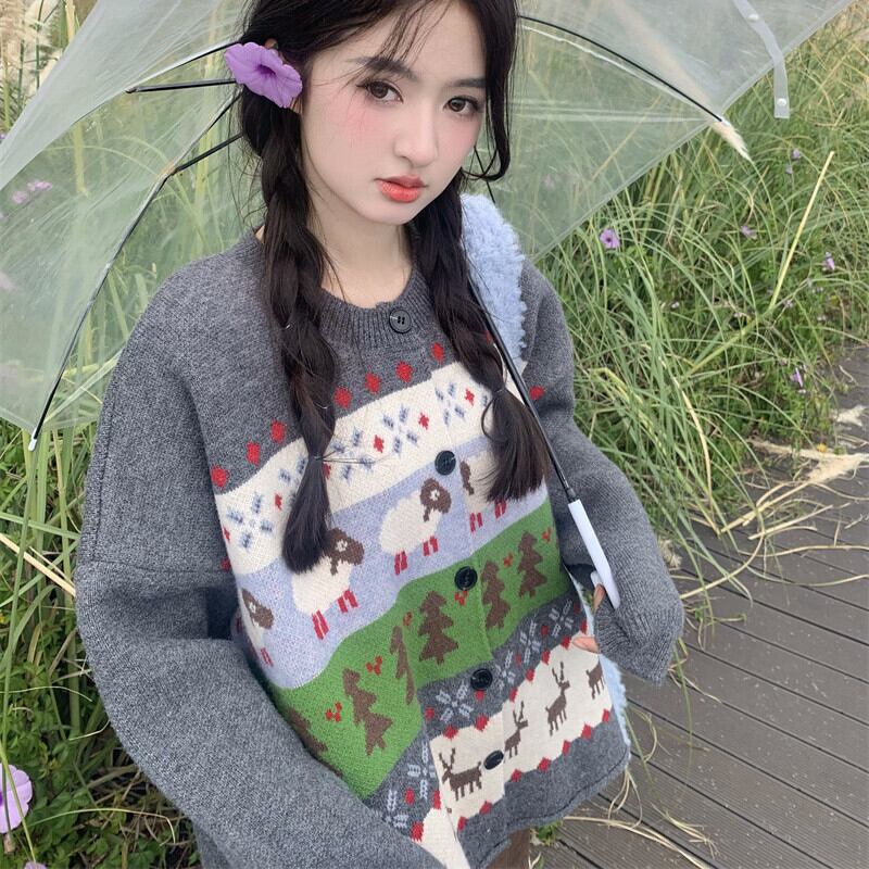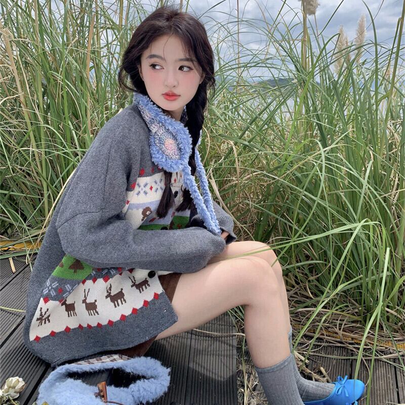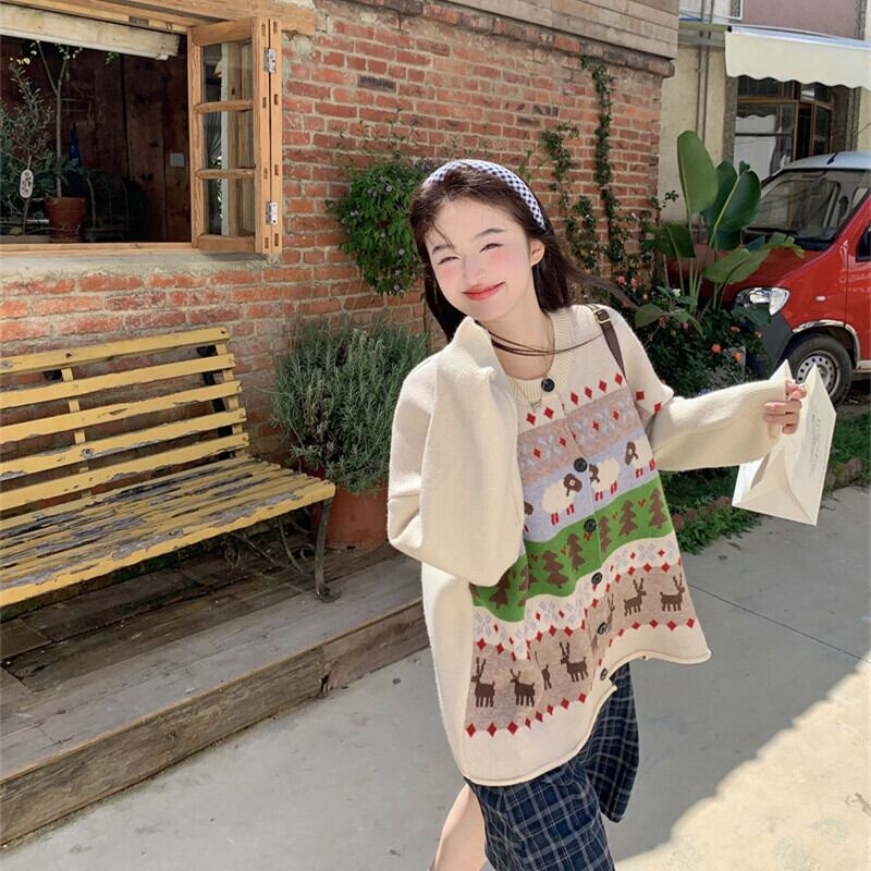 【outer】クルーネックニットカーデ M27116