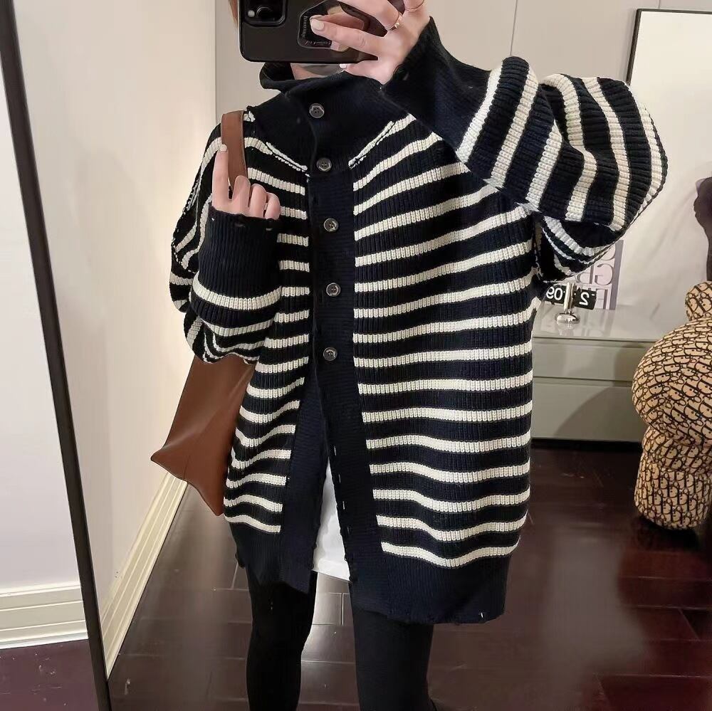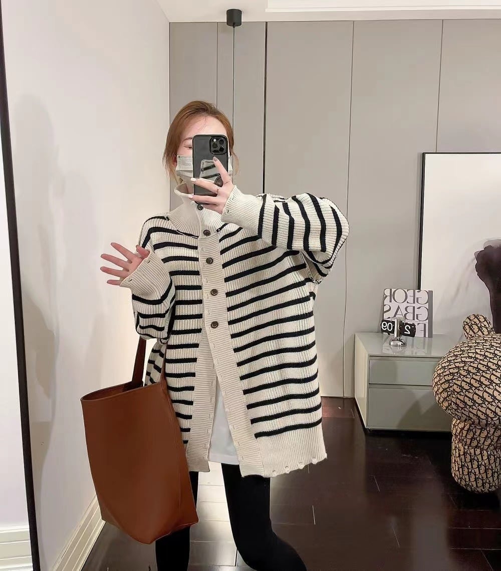 【outer】ボーダー柄ニットカーデ M27153