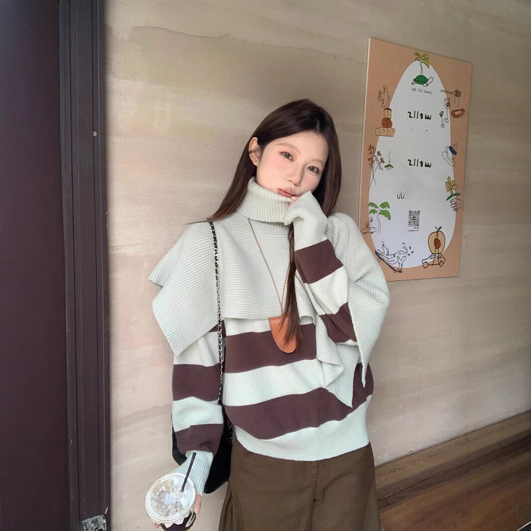 【set】ボーダー柄ニットセーター×ハイネックニットセット M27461