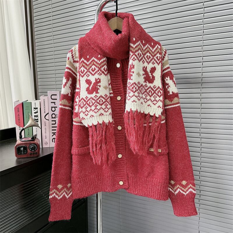 【outer】ニットカーデマフラー付き M27562