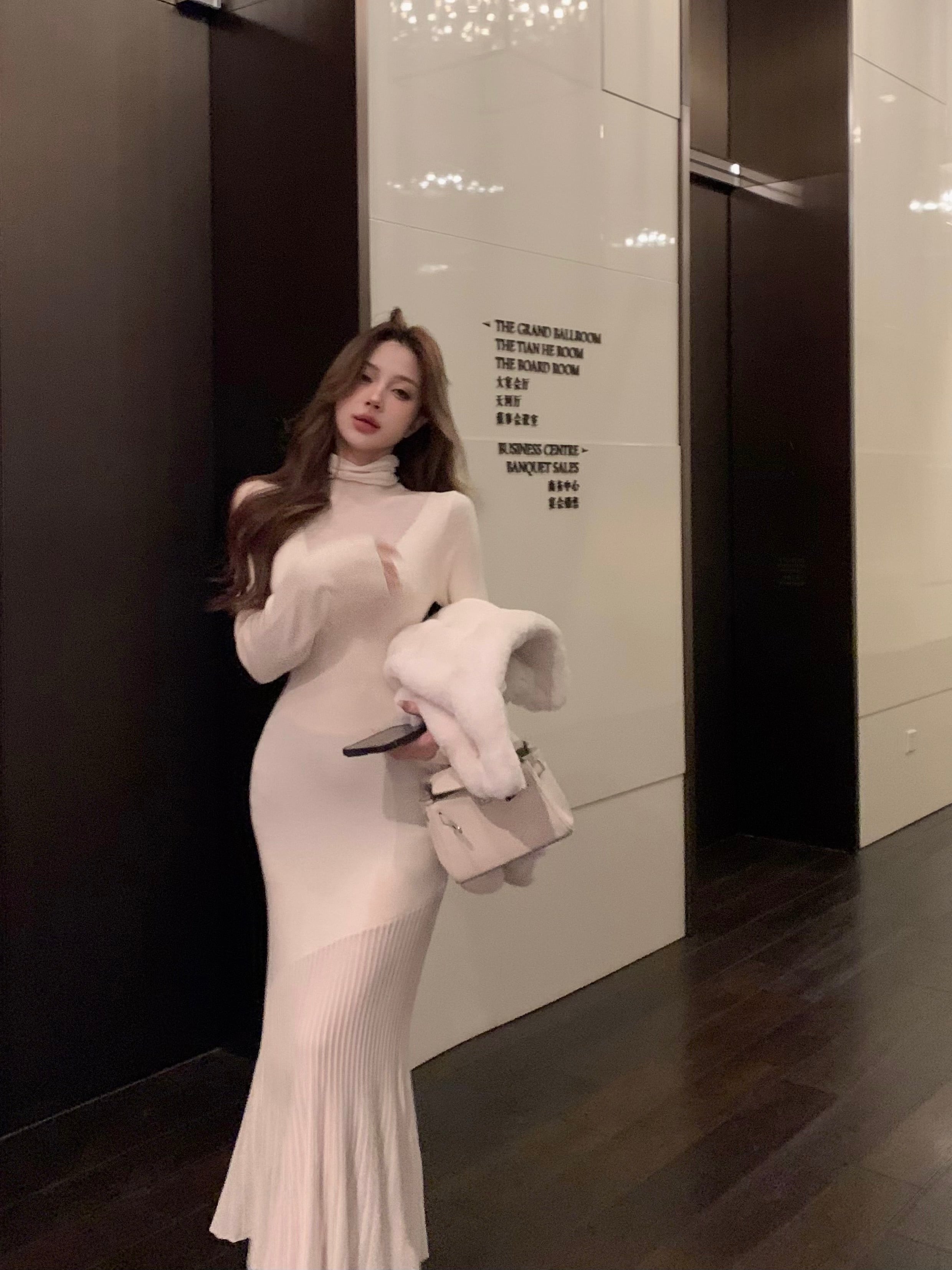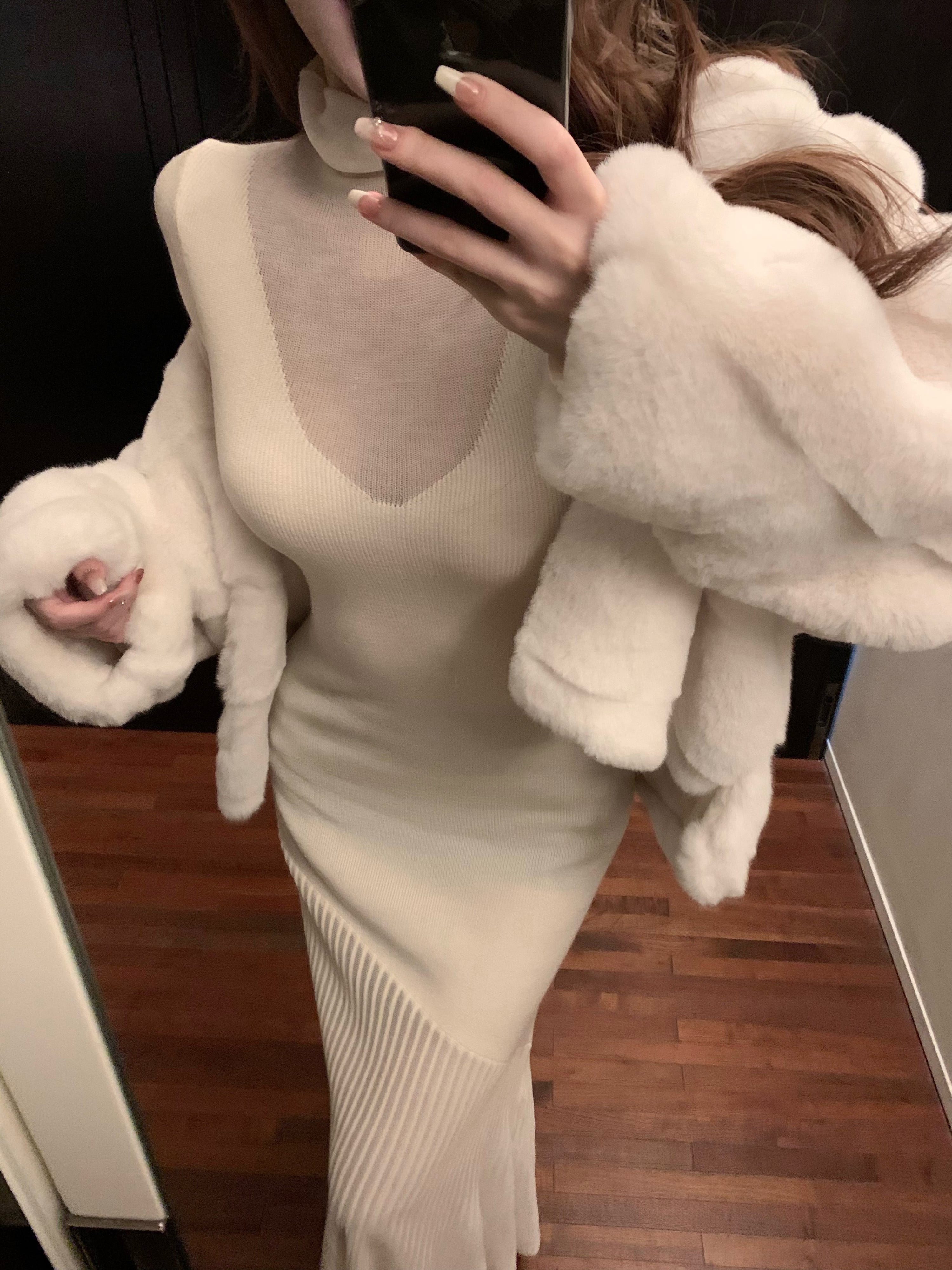 【set】マーメイドニットワンピース×ファーショートコートセット M27605