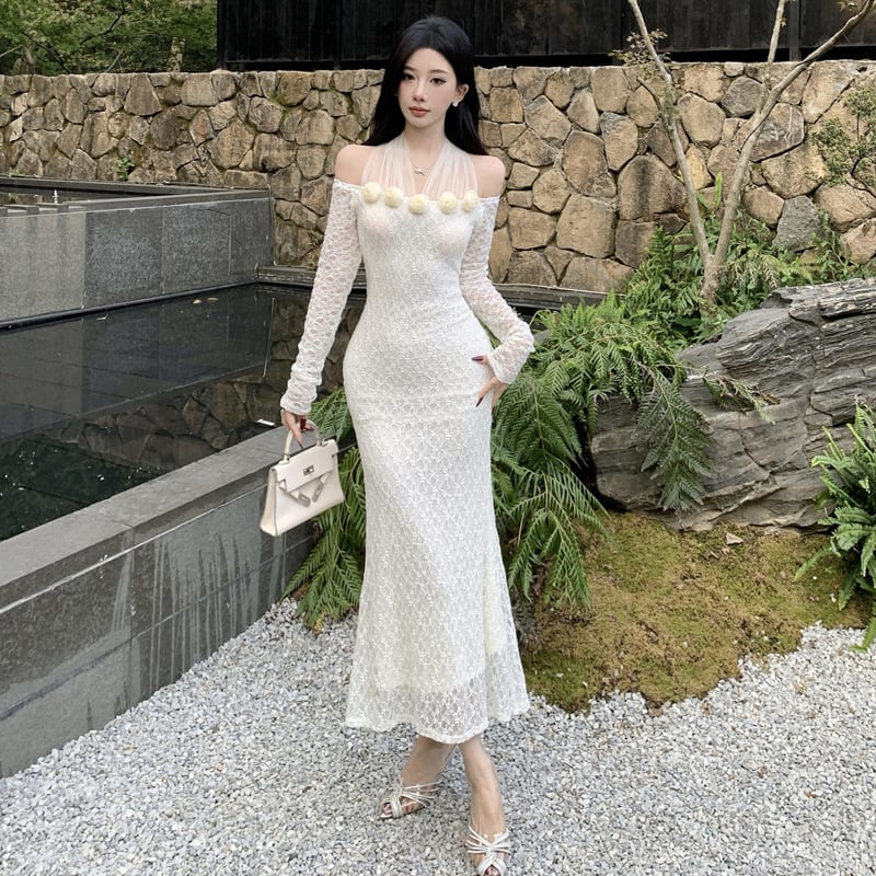 【dress】レースチュールドッキングワンピース M27960