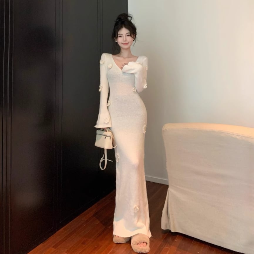 【dress】Vネックニットワンピース M27999