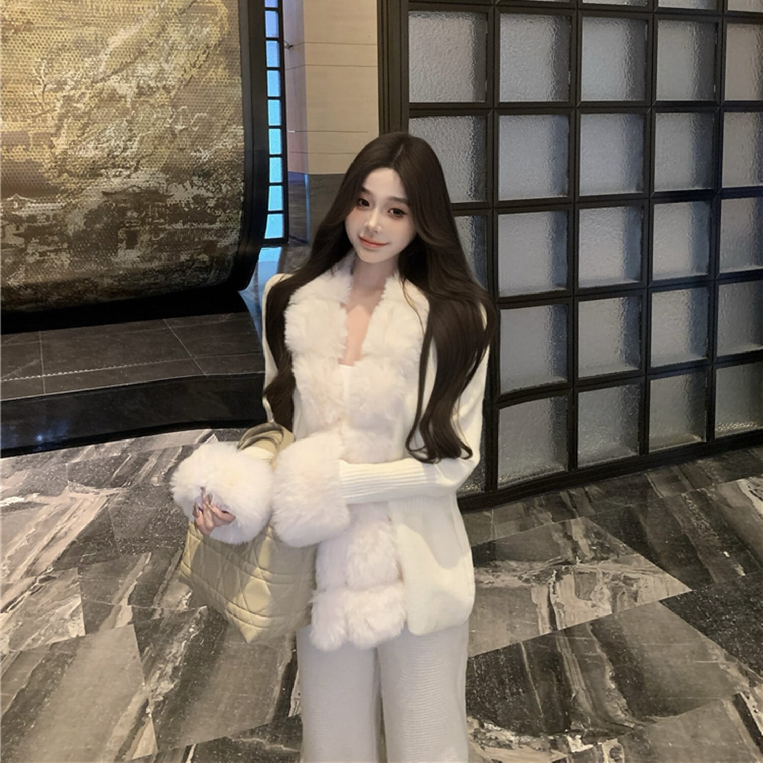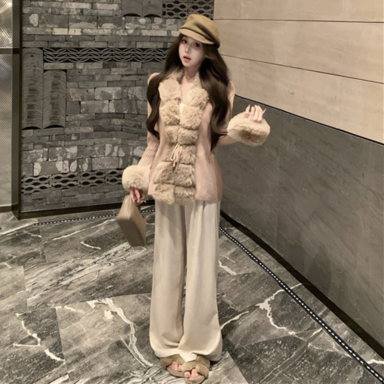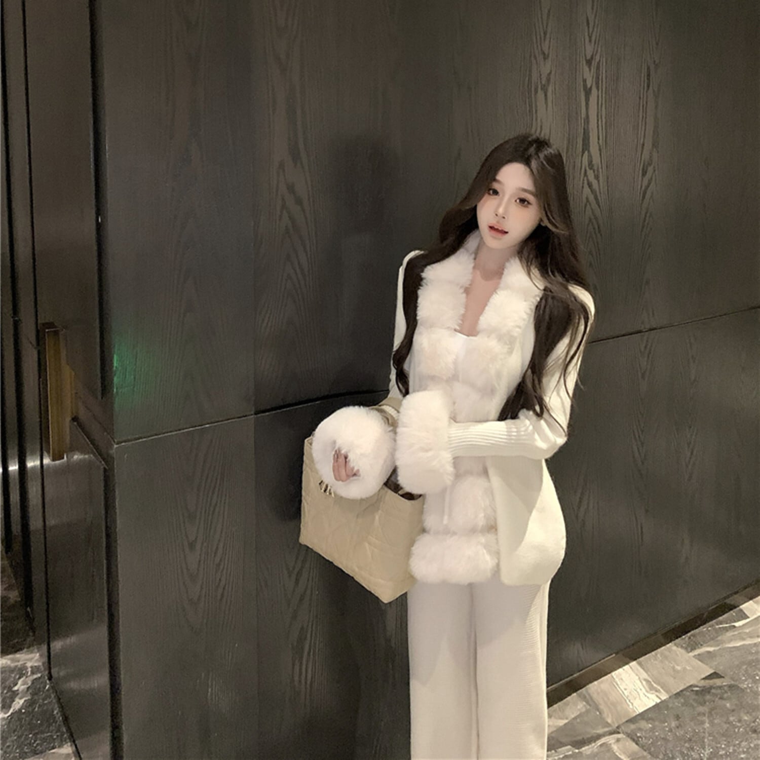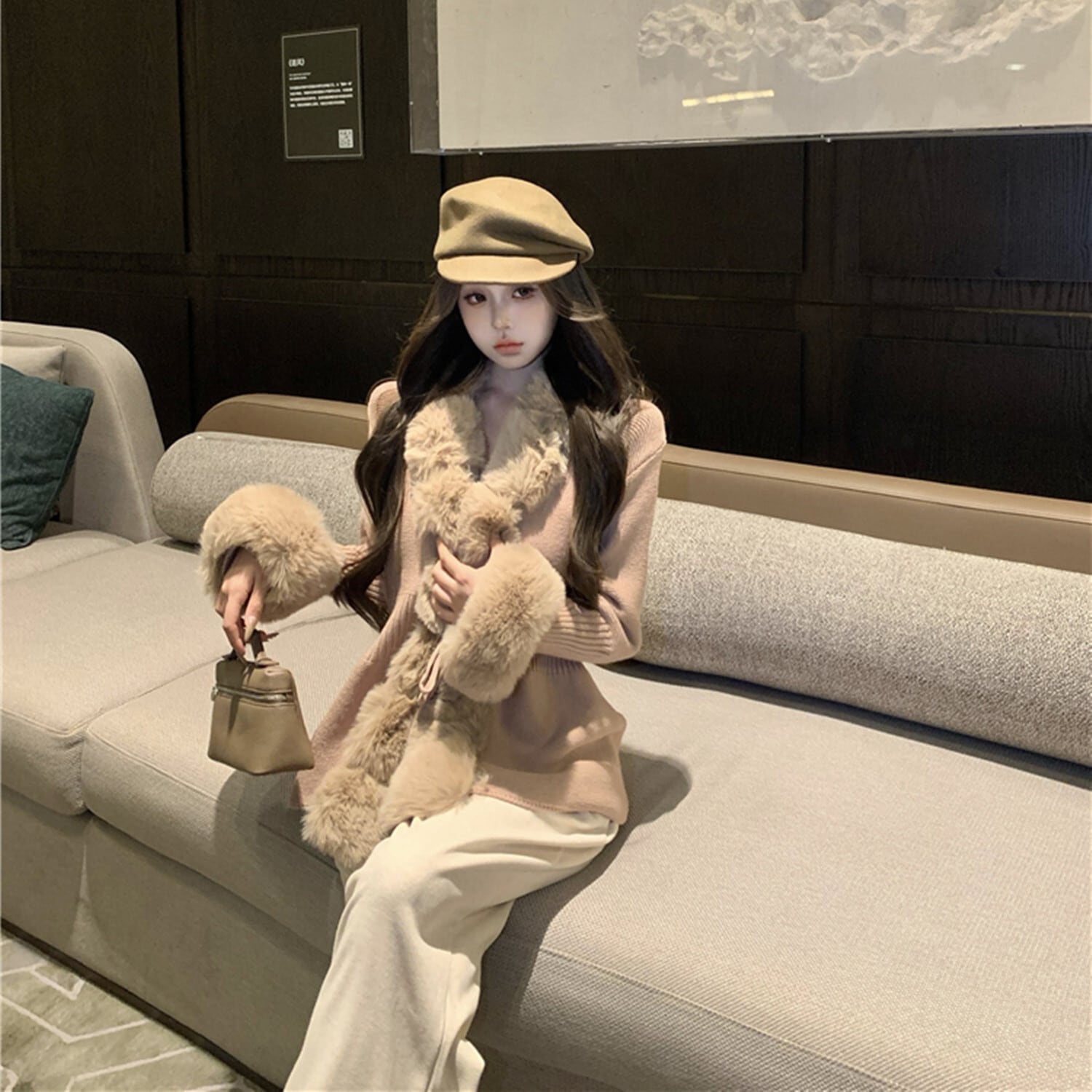 【outer】ファー付きニットアウター N2914