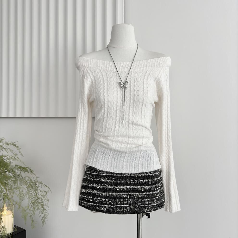 【tops】オフショルダーニットセーター M28070