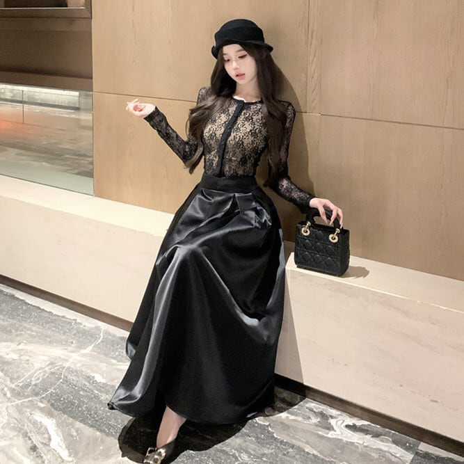 【set】レーストップスベアトップ付き×スカートセット M28149