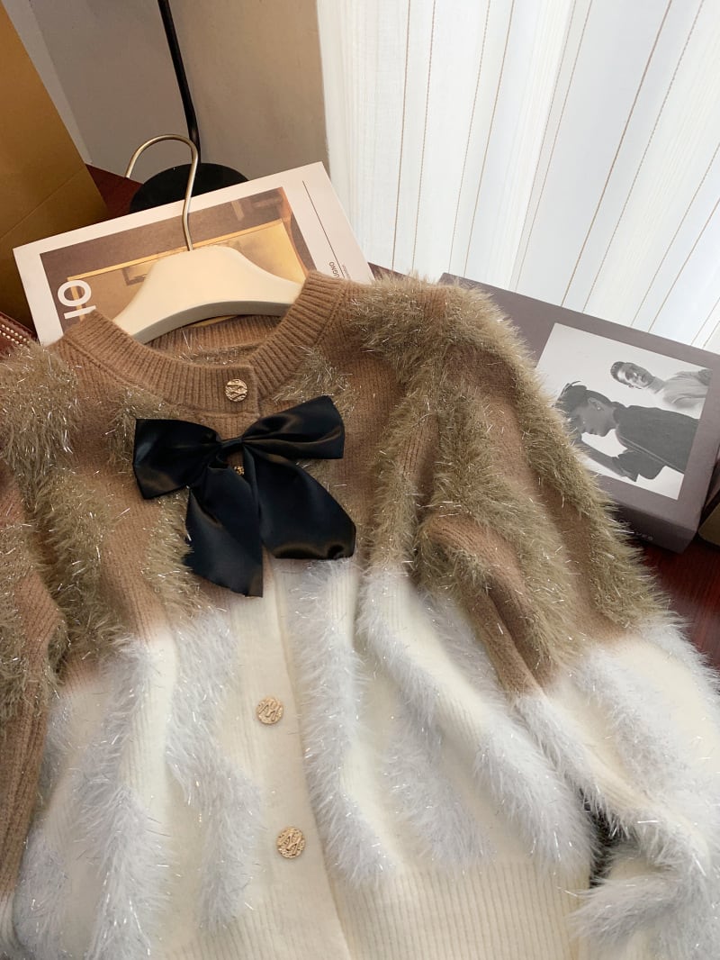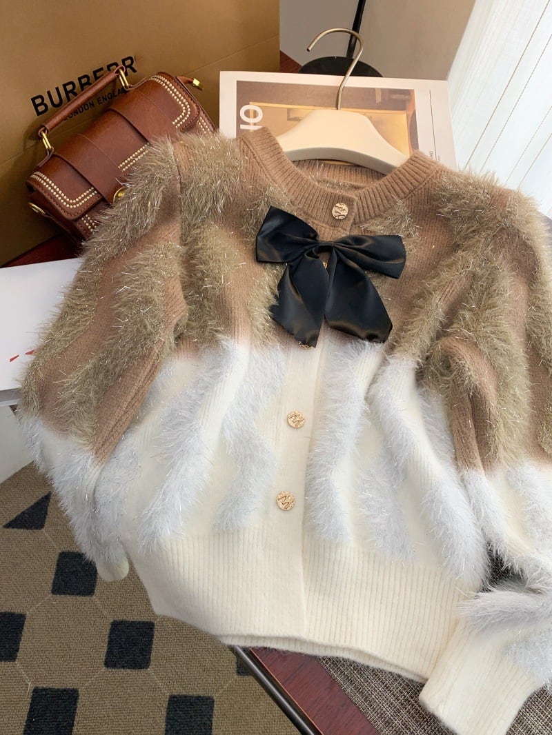 【outer】リボン付きニットカーデ M28234