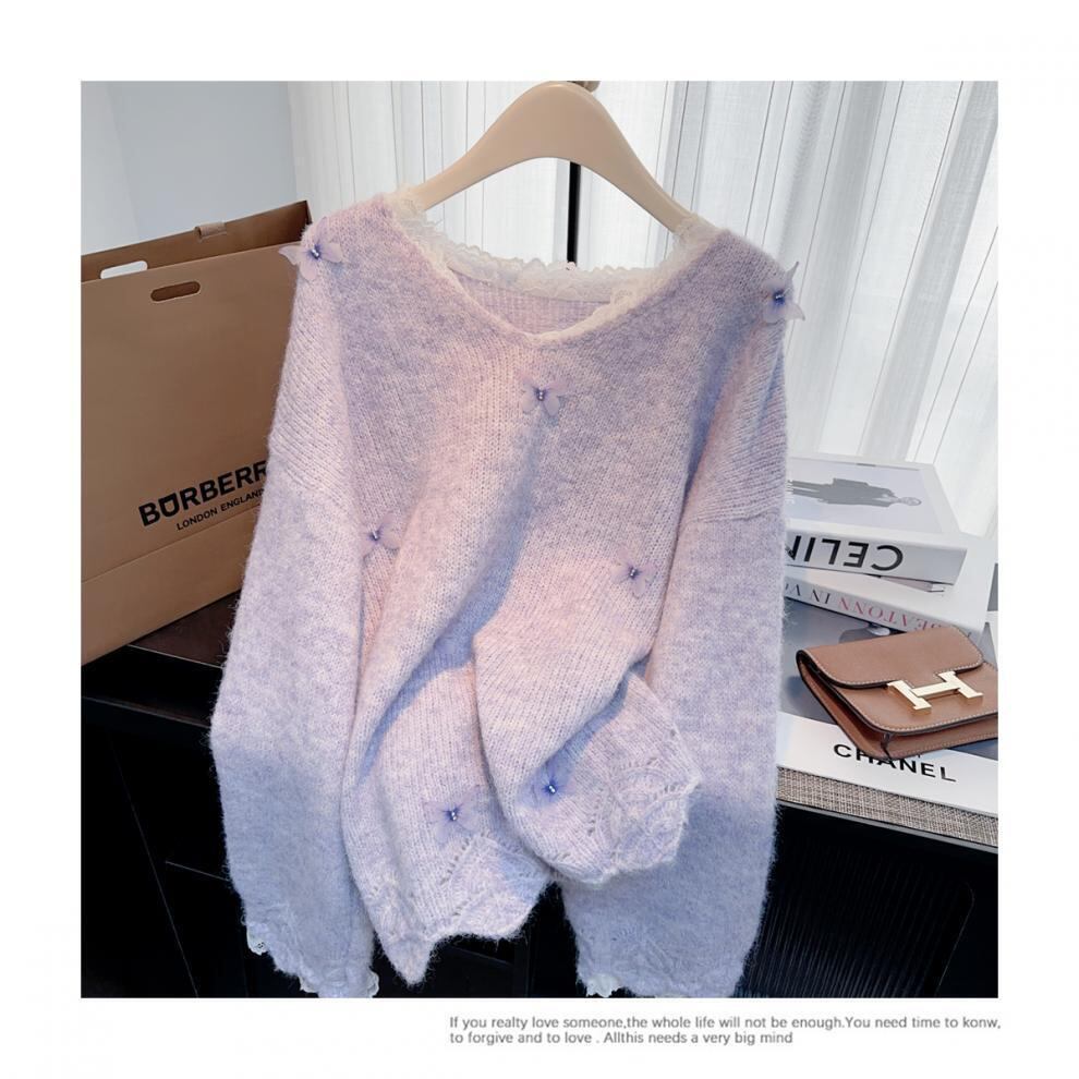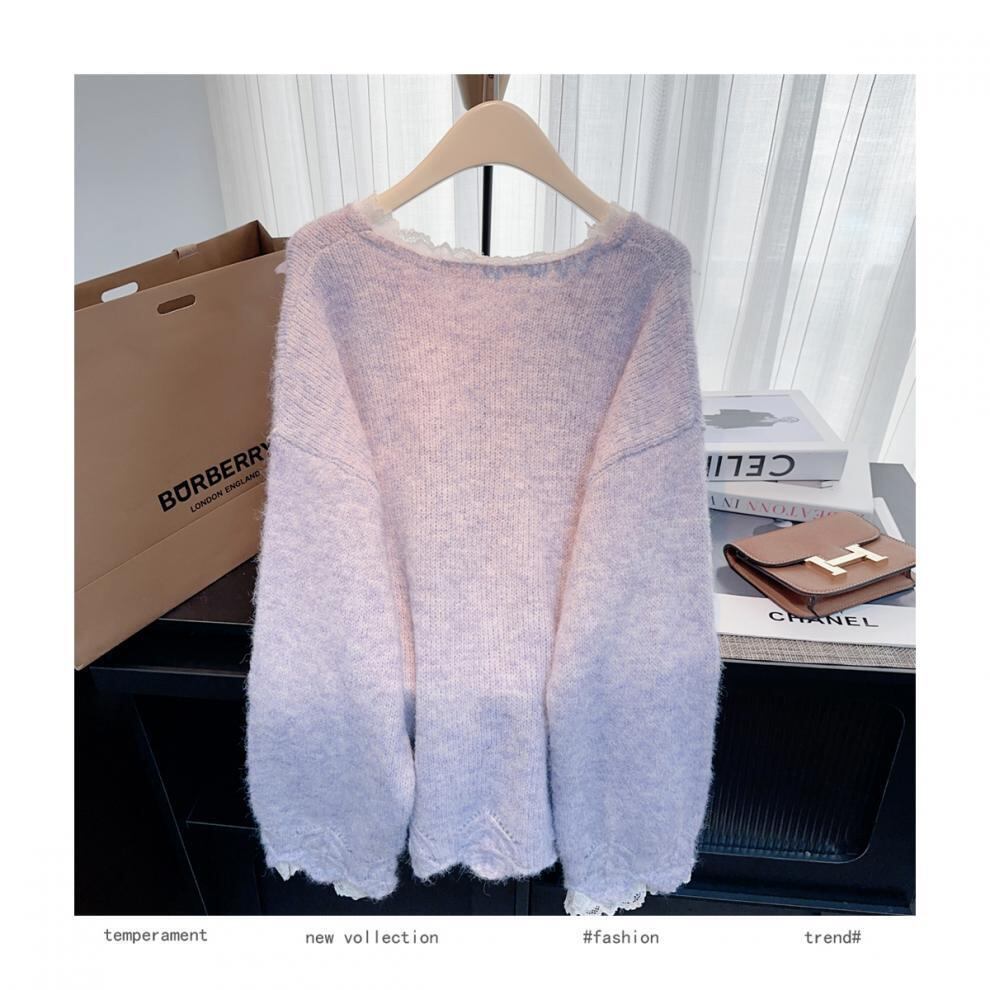 【tops】レース切り替えニットセーター M28244