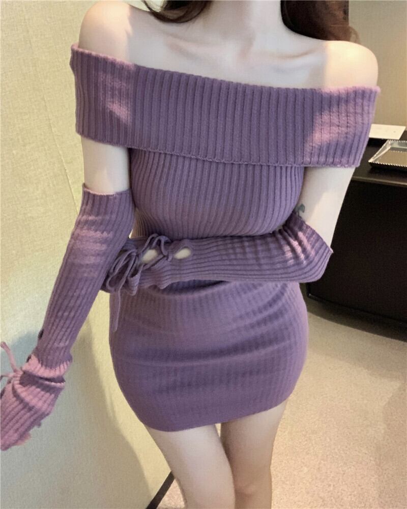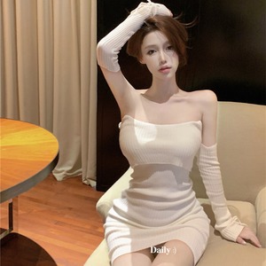【dress】アームカバー付きニットワンピース M28327