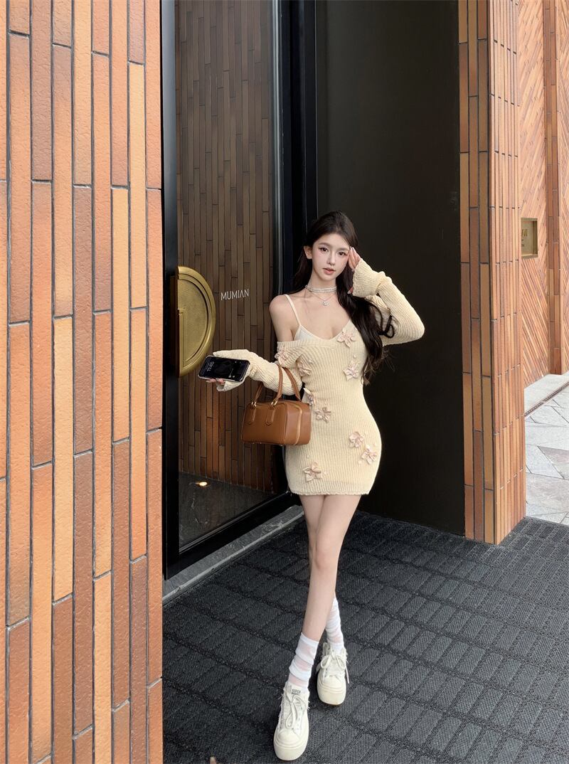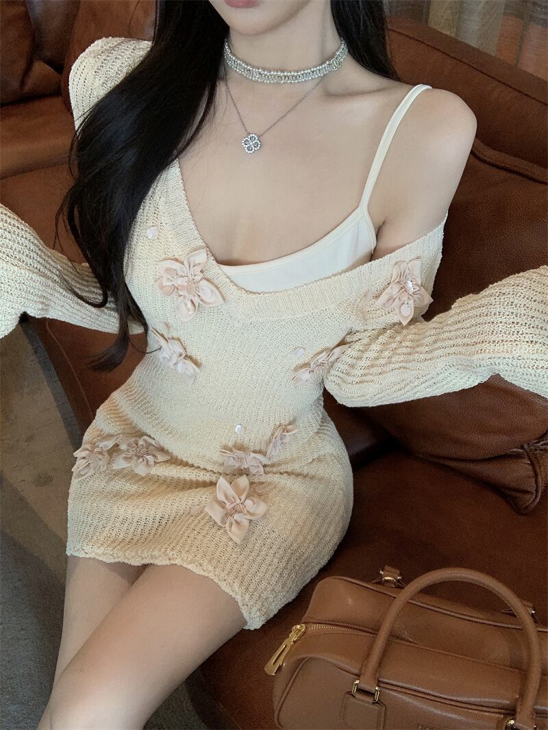 【dress】立体フラワーニットワンピースキャミソール付き M28428