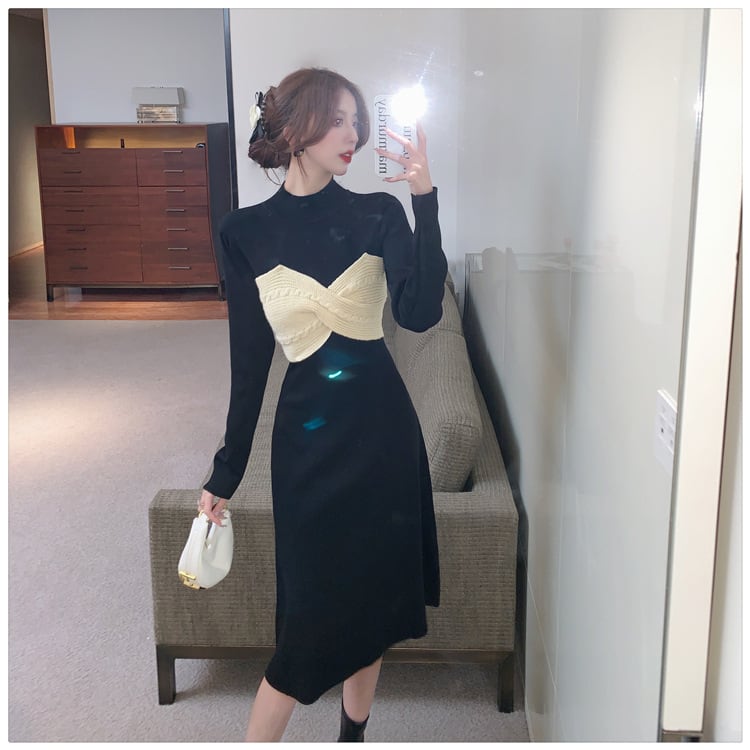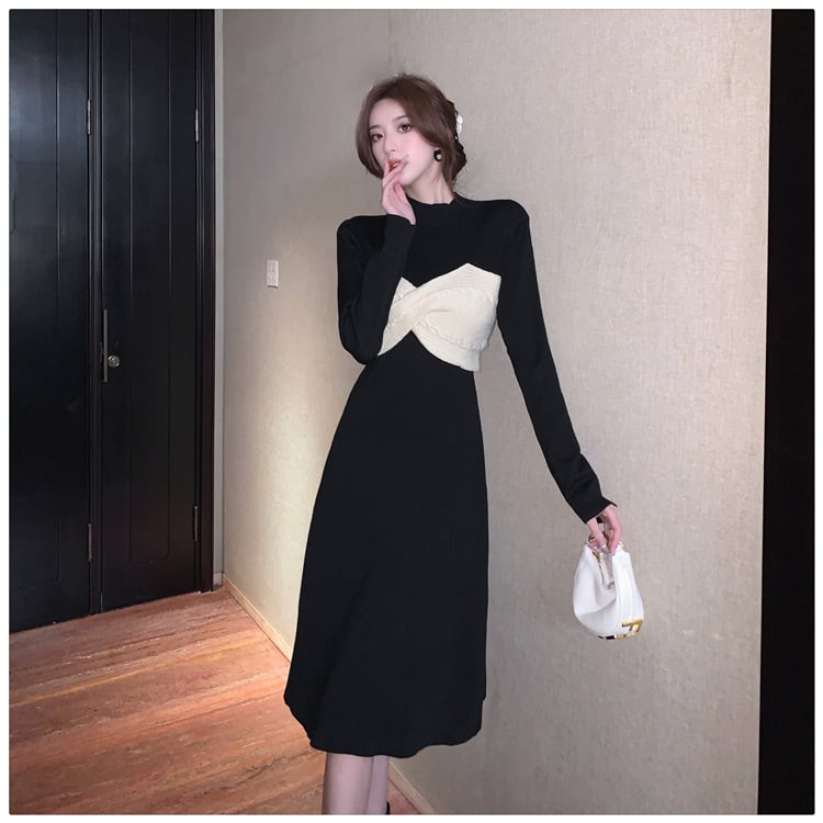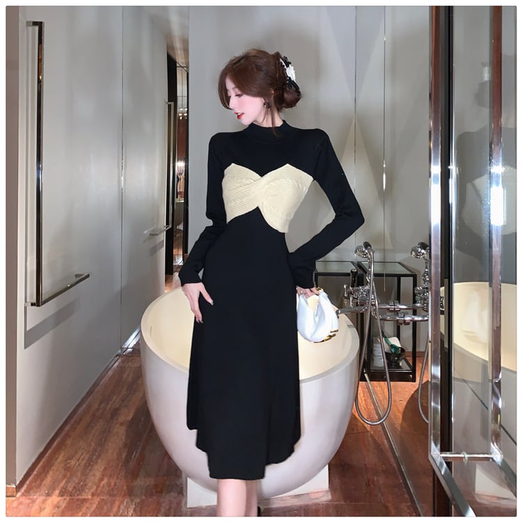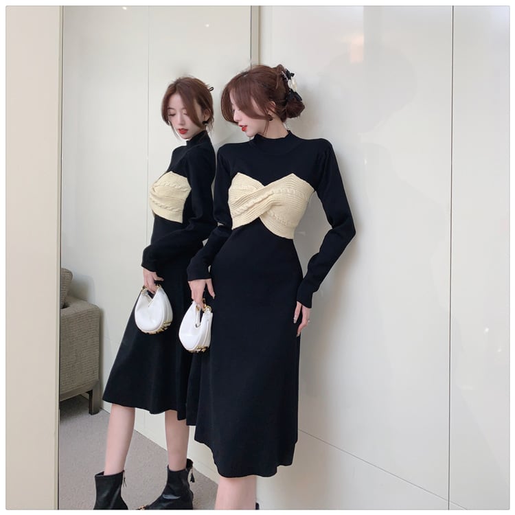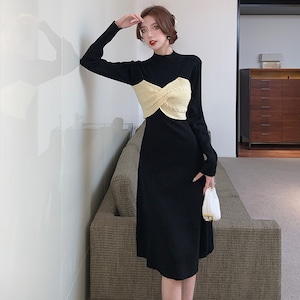 【dress】リボン切り替えニットワンピース M28579