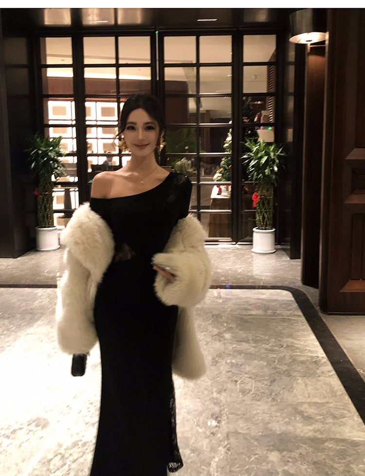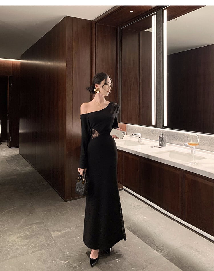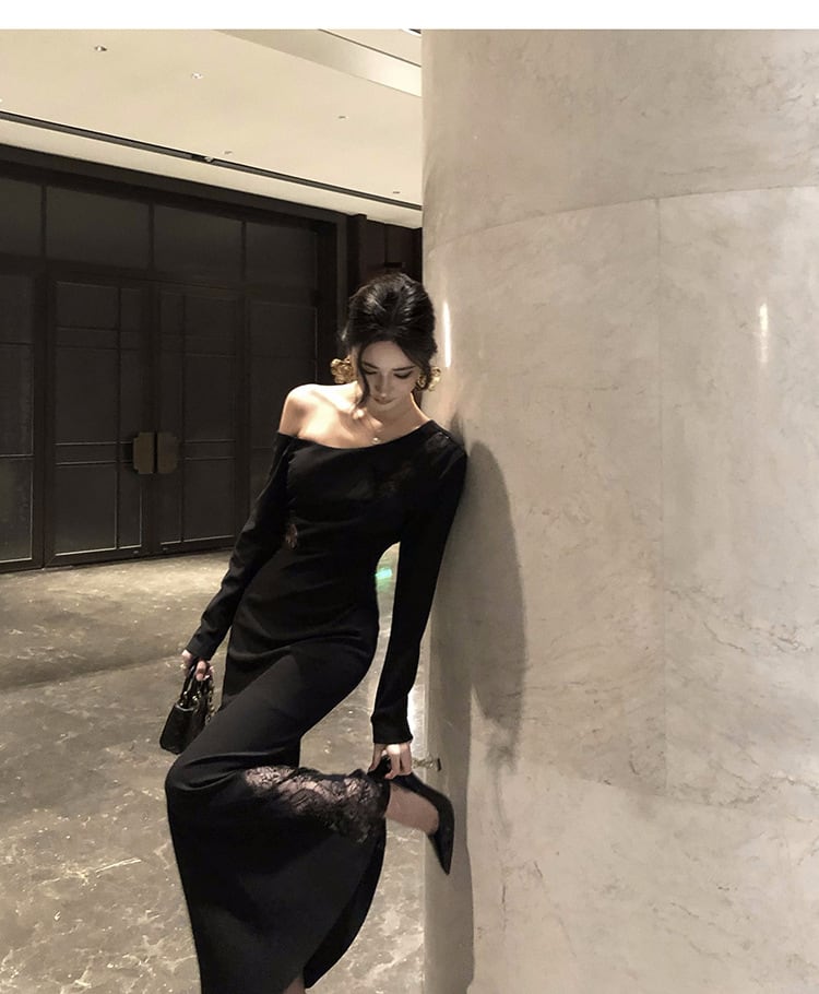 【dress】オフショルダーレース切り替えワンピース M28707
